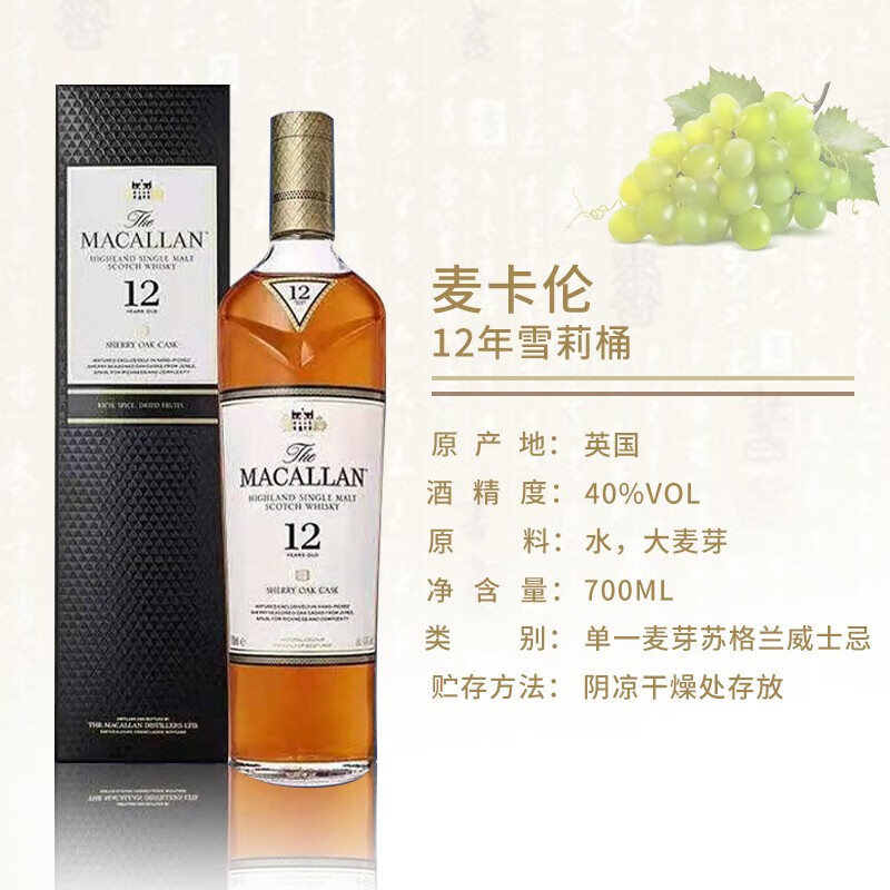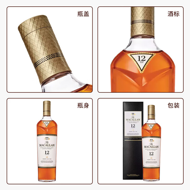 麦卡伦单一麦芽苏格兰威士忌斯佩塞产区蓝钻双桶/雪莉桶700ml洋酒 麦卡伦蓝钻双桶12年