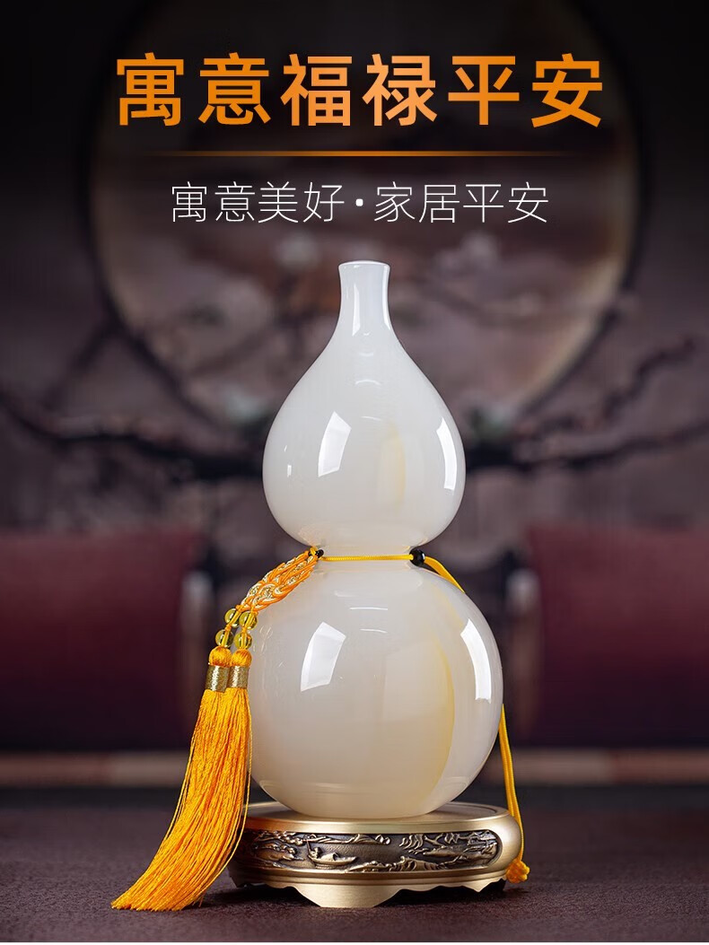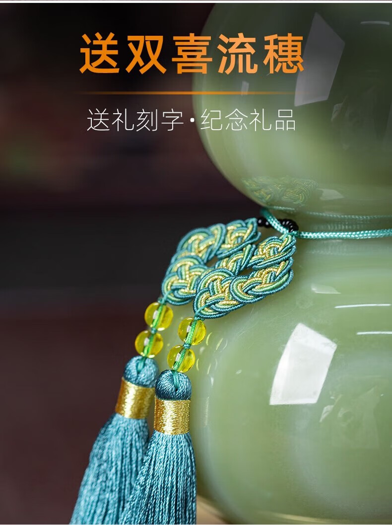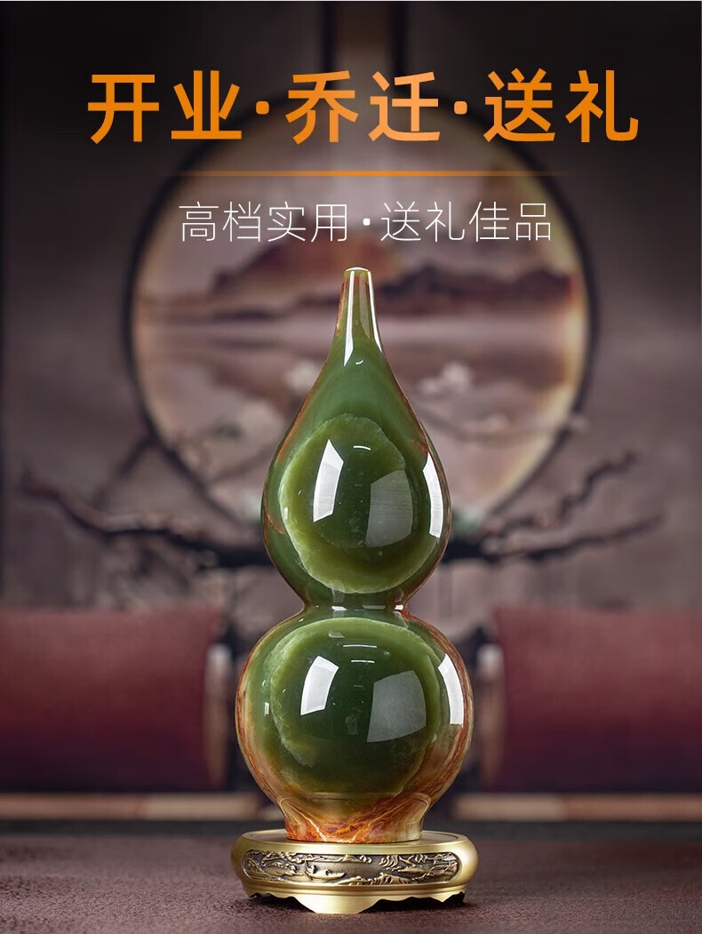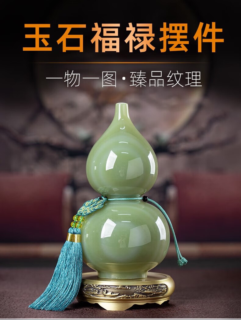 Ma Simi Fat Donglai quality jade gourd ornaments Fulu Ping An home decoration new home moving living room opening gift ready stock-sapphire gourd F15810 with brass bottom