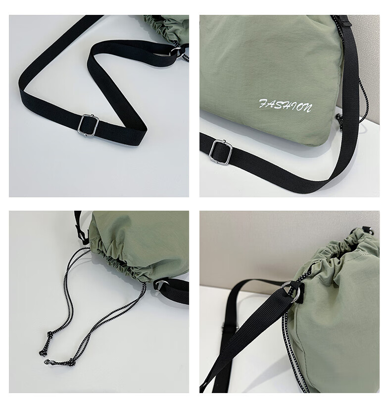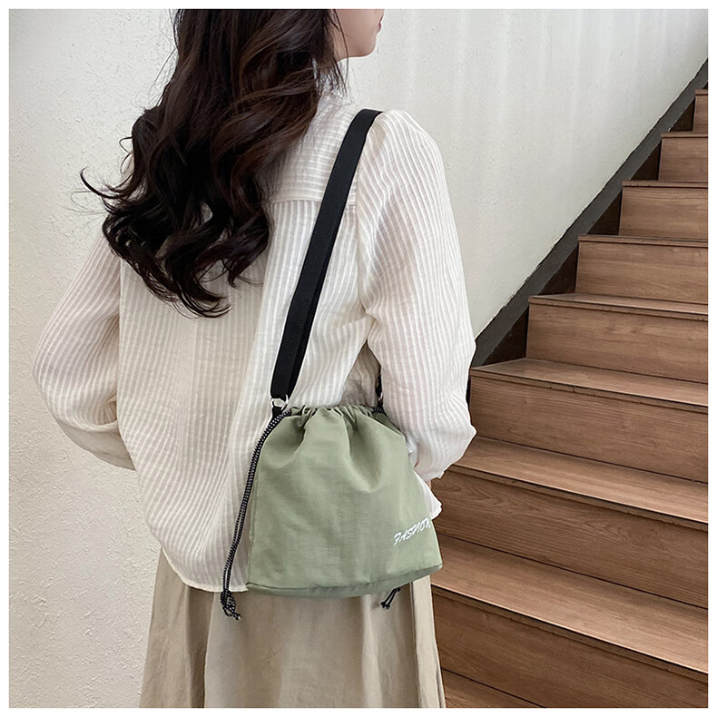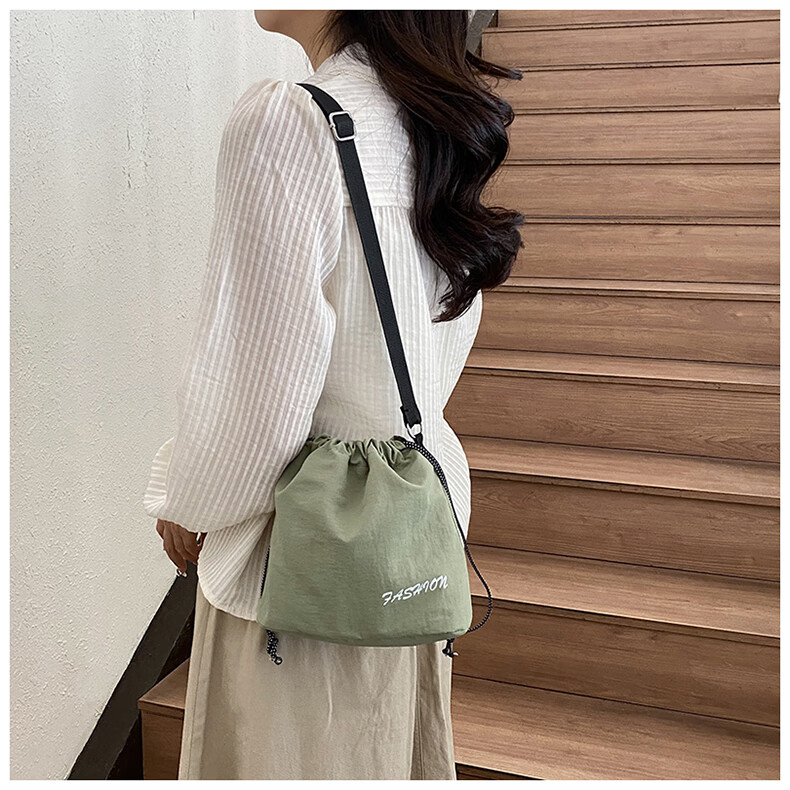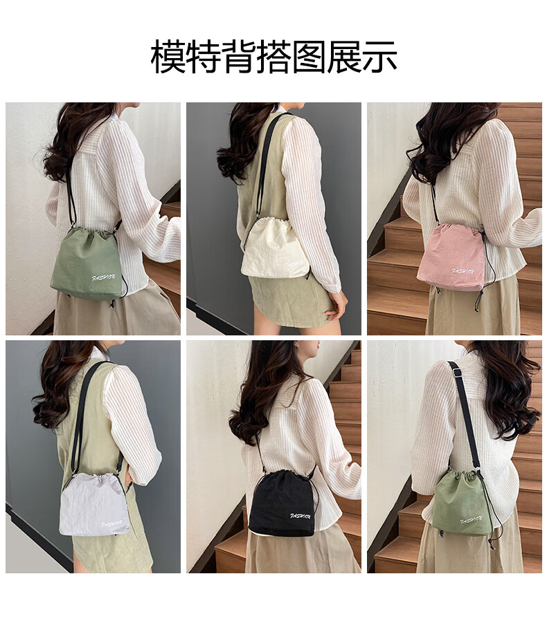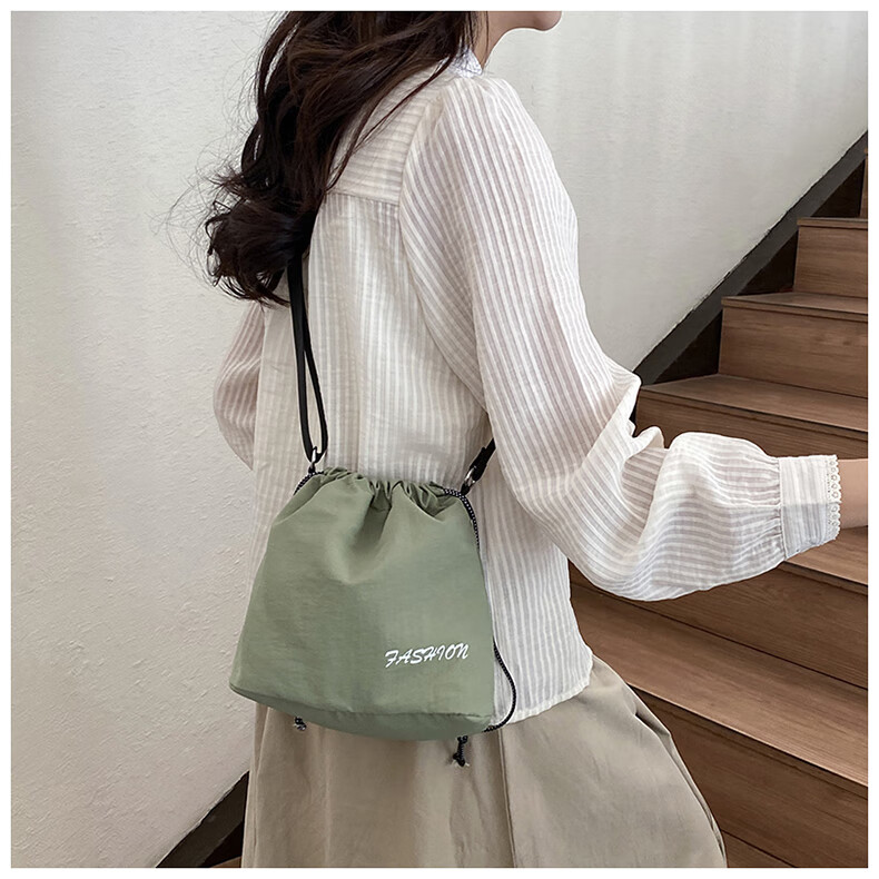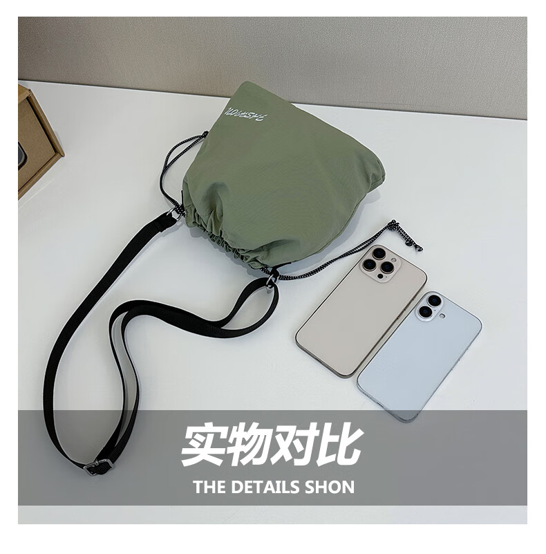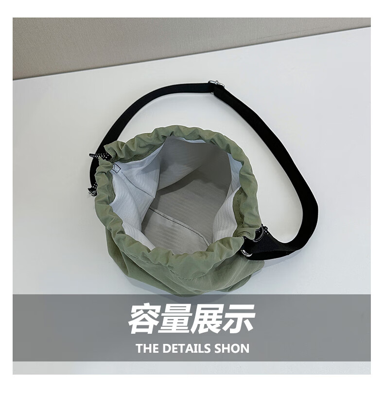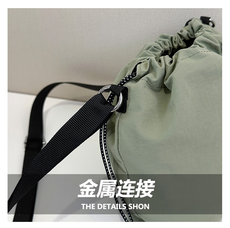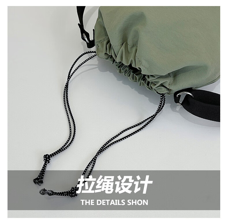 双肩包男抽绳超薄新款时尚潮流可折叠斜跨背包情侣个性纯色小书包 绿色