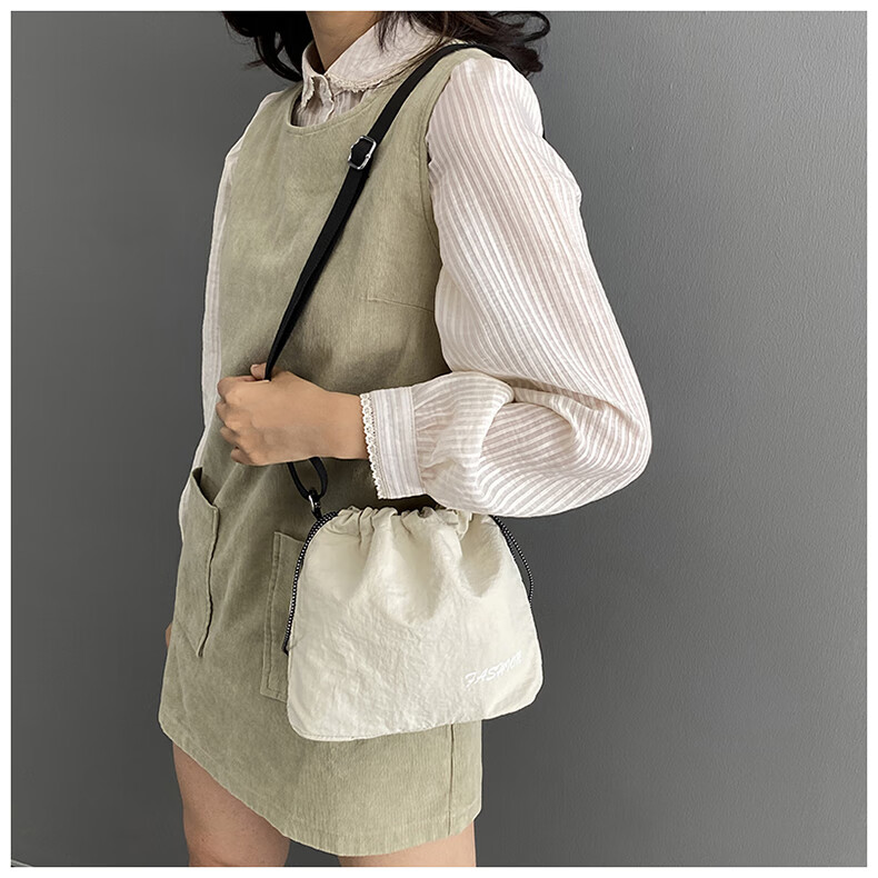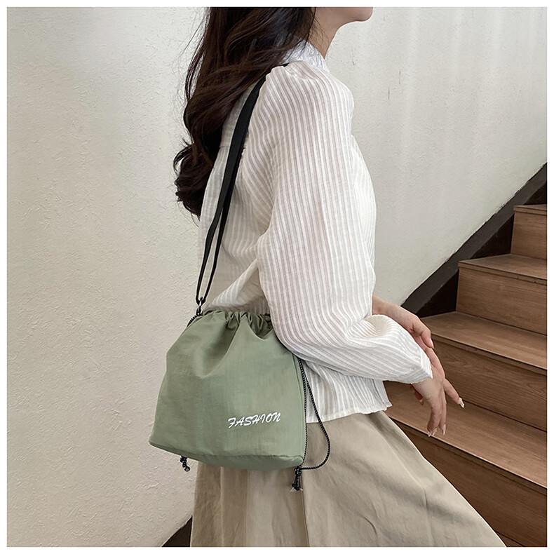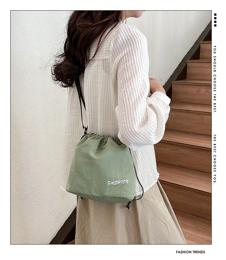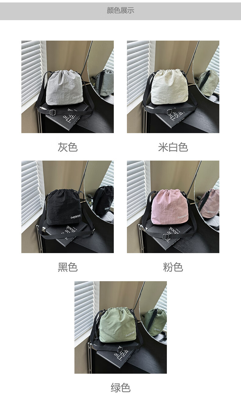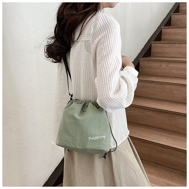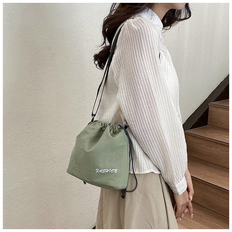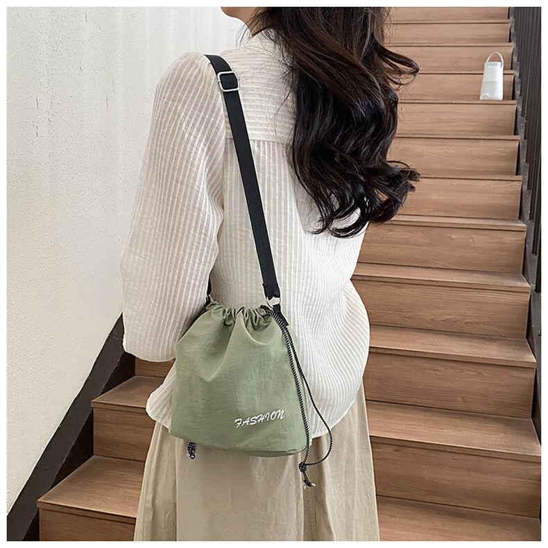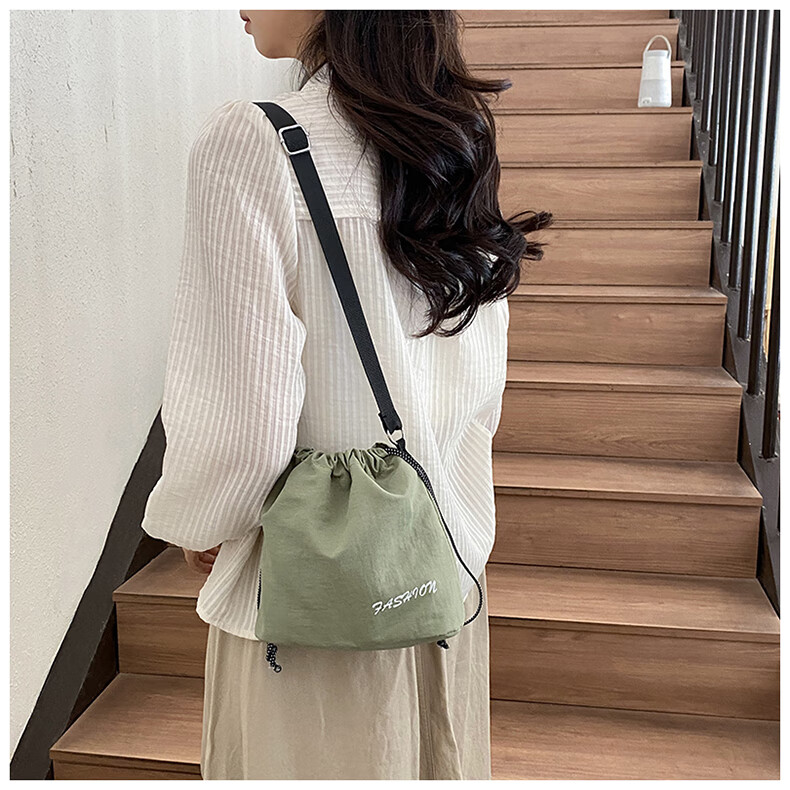 双肩包男抽绳超薄新款时尚潮流可折叠斜跨背包情侣个性纯色小书包 绿色