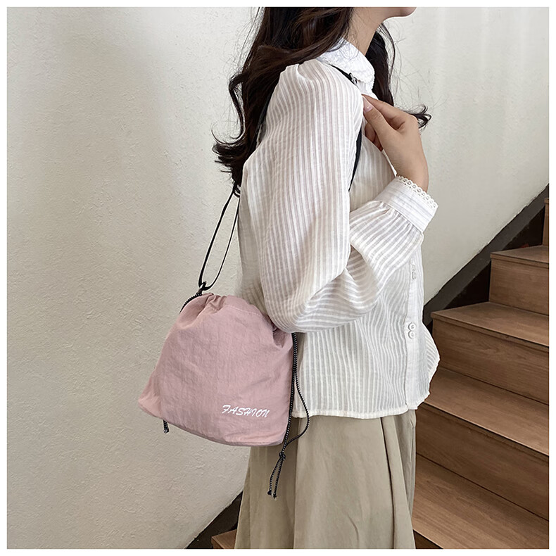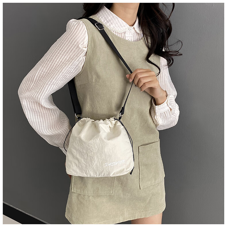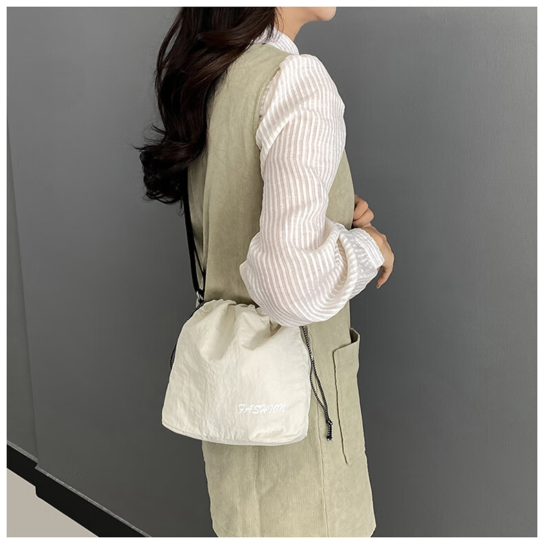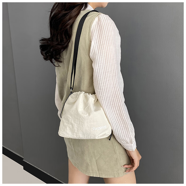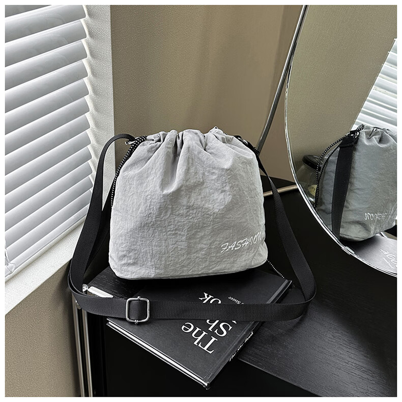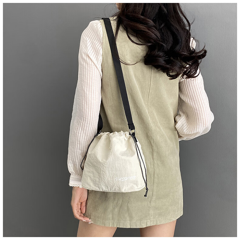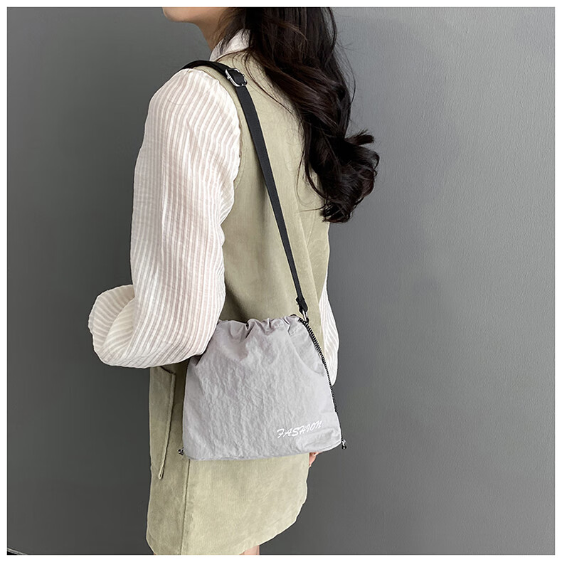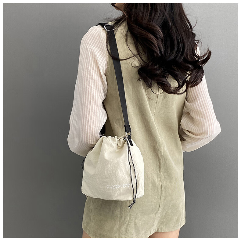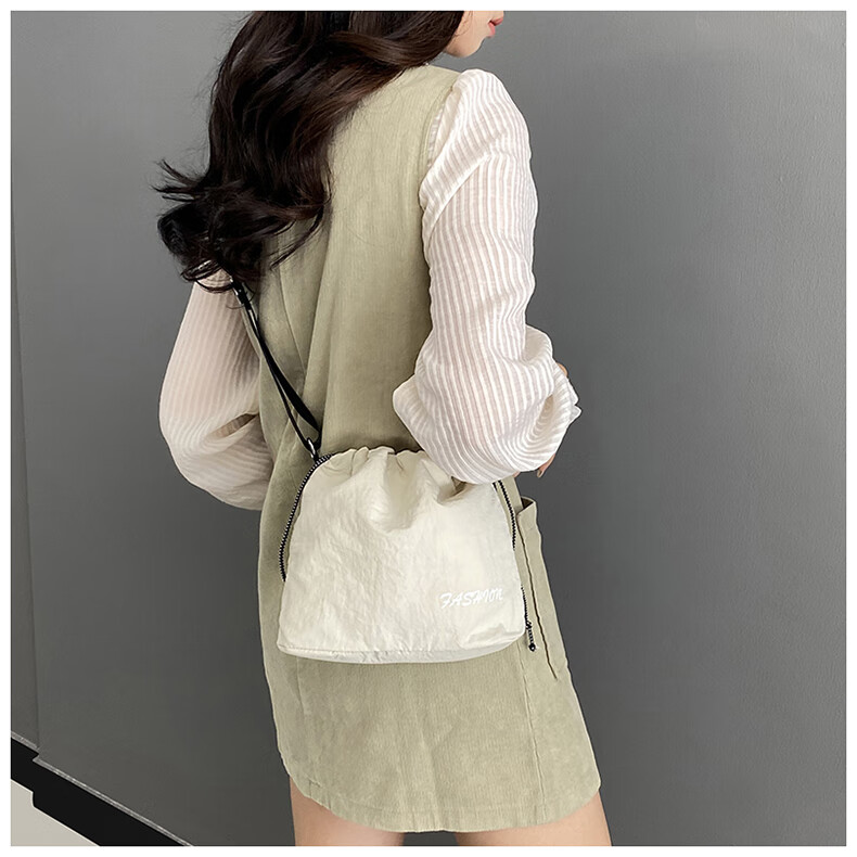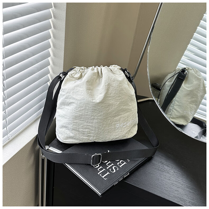 双肩包男抽绳超薄新款时尚潮流可折叠斜跨背包情侣个性纯色小书包 绿色