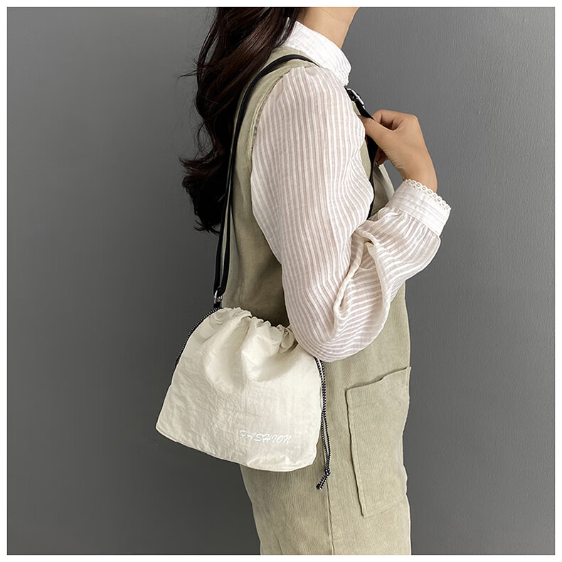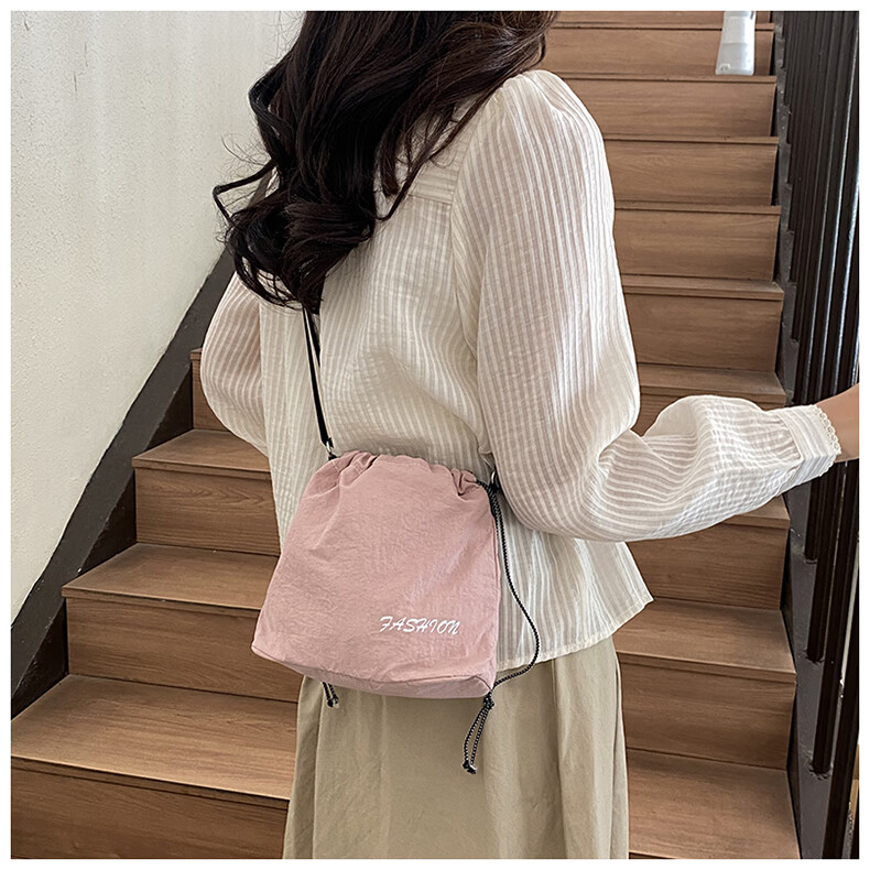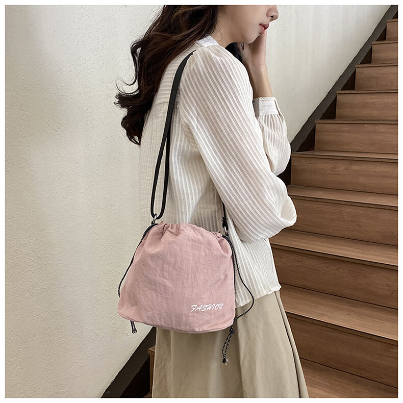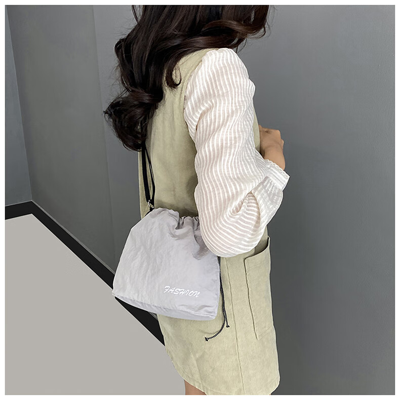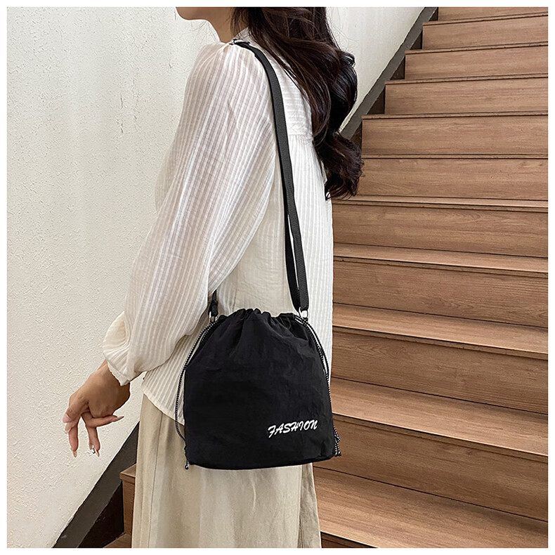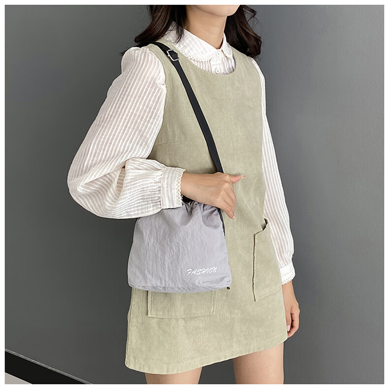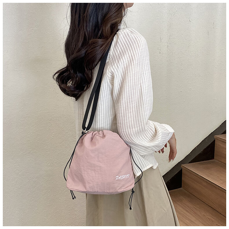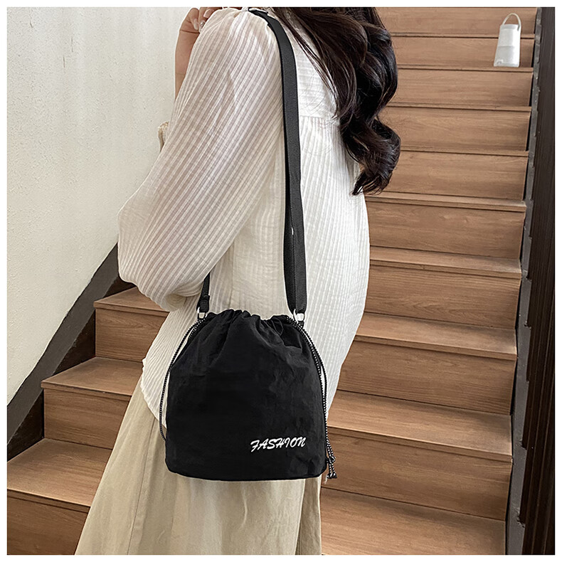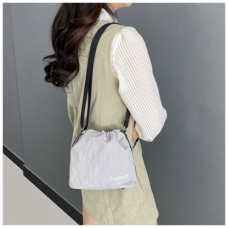 双肩包男抽绳超薄新款时尚潮流可折叠斜跨背包情侣个性纯色小书包 绿色