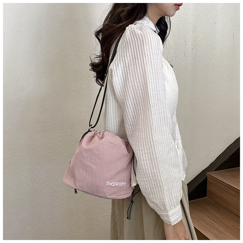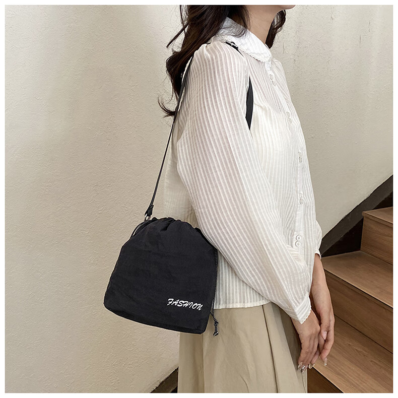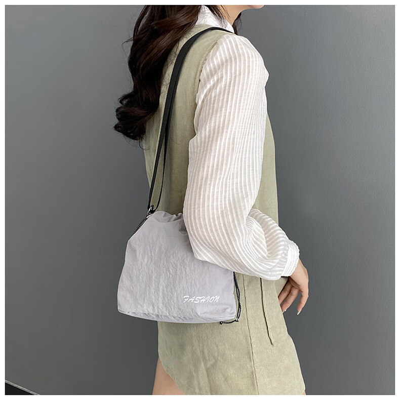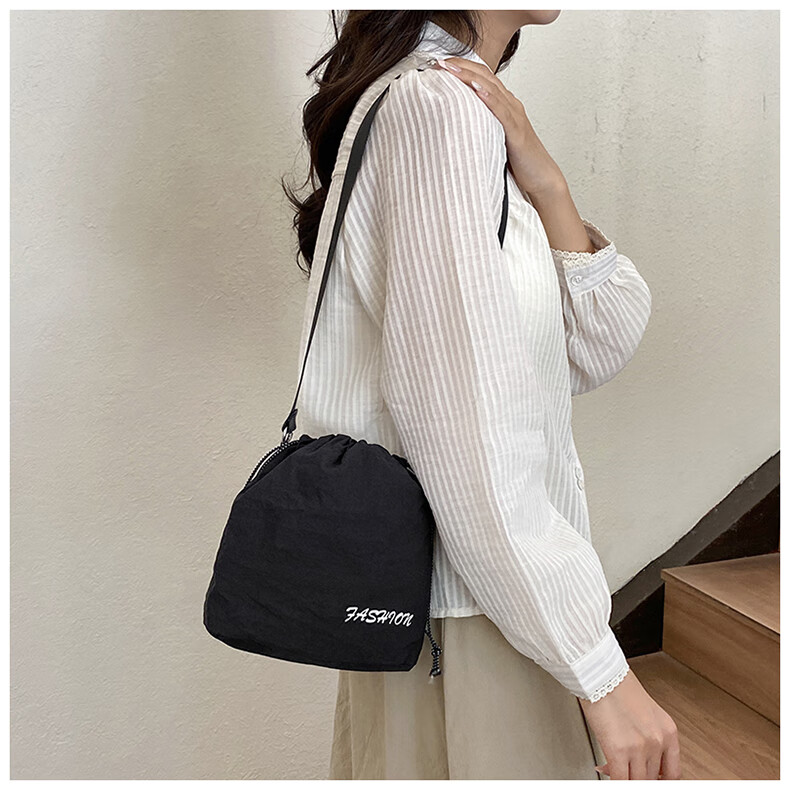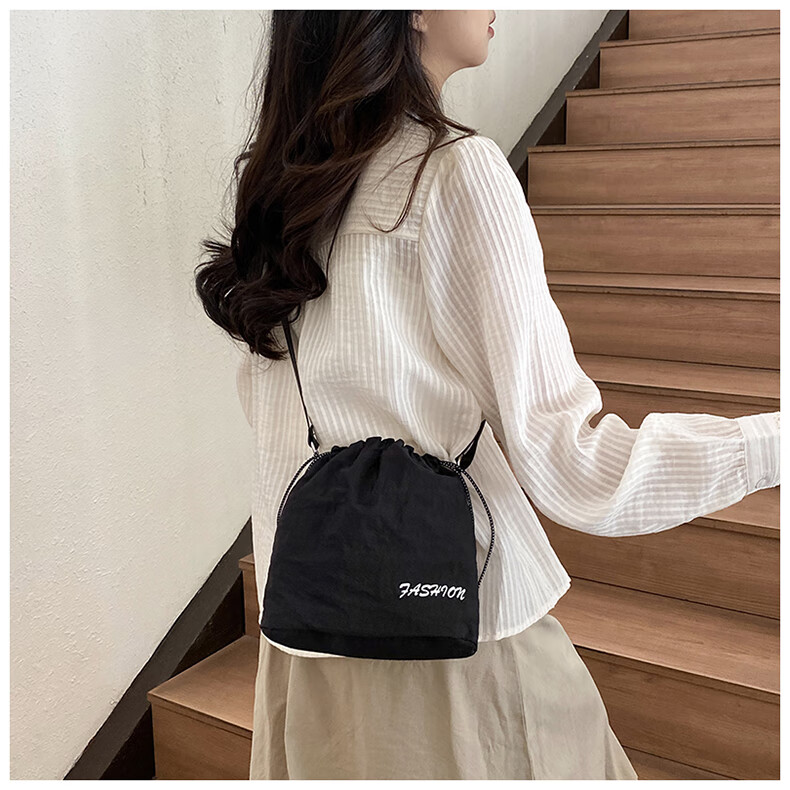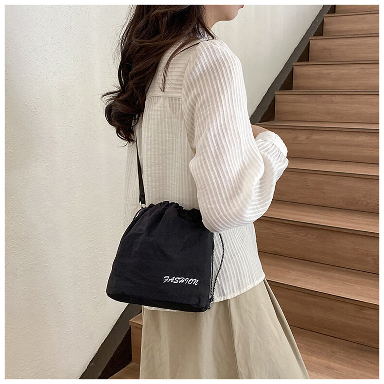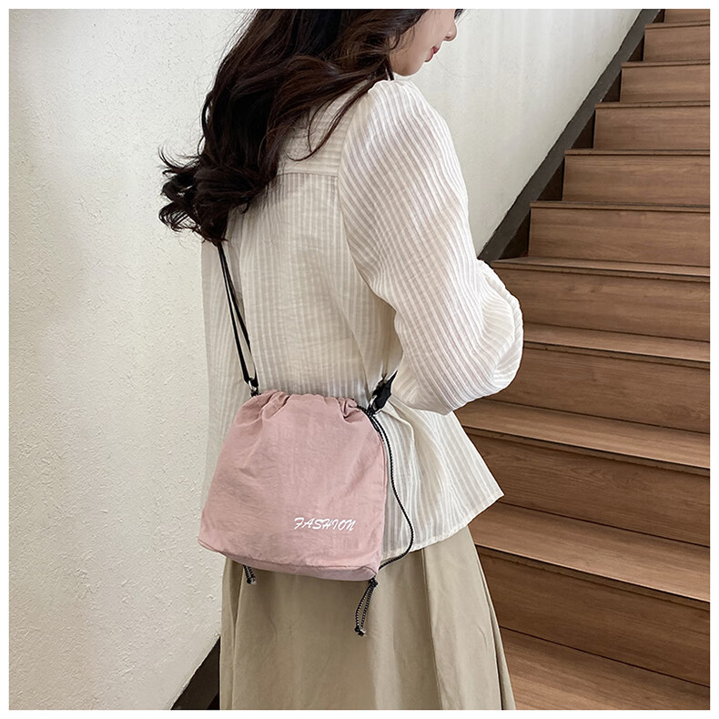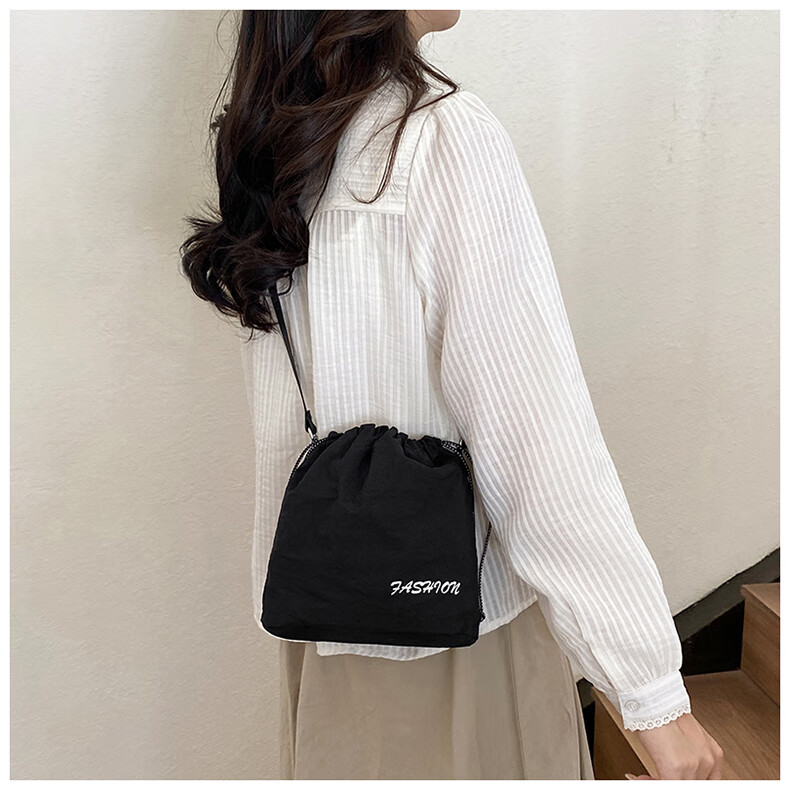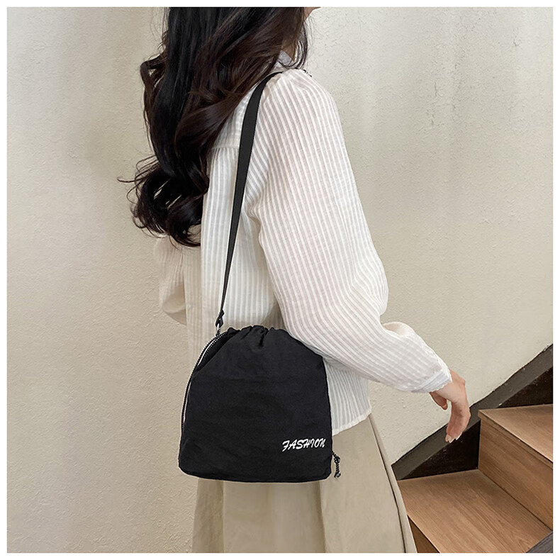 双肩包男抽绳超薄新款时尚潮流可折叠斜跨背包情侣个性纯色小书包 绿色