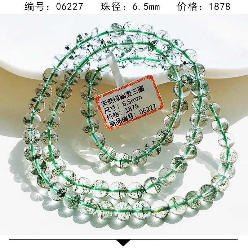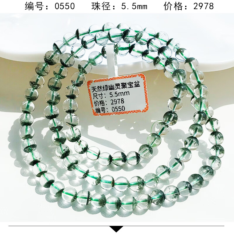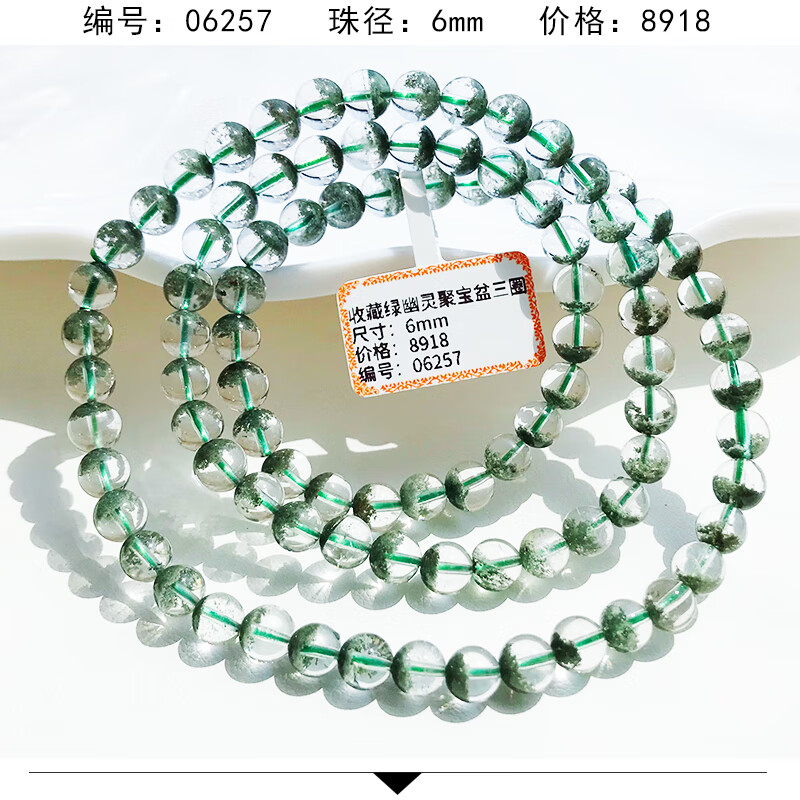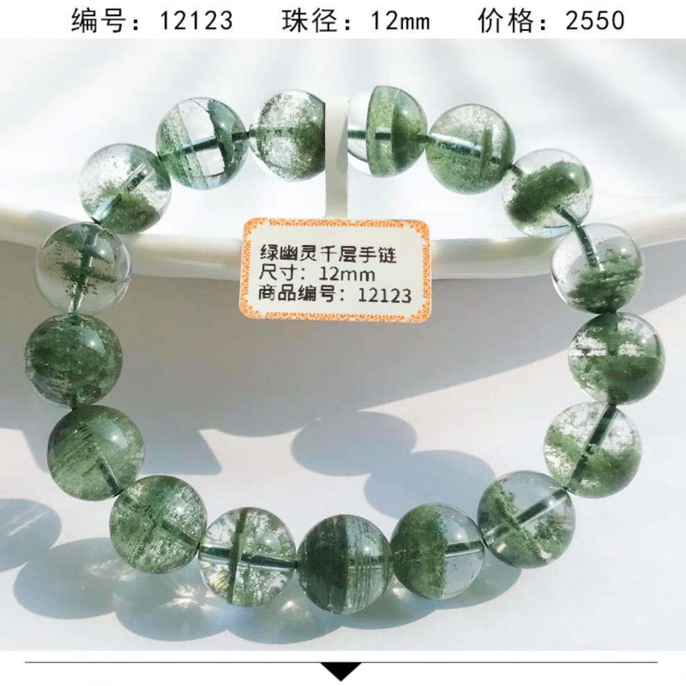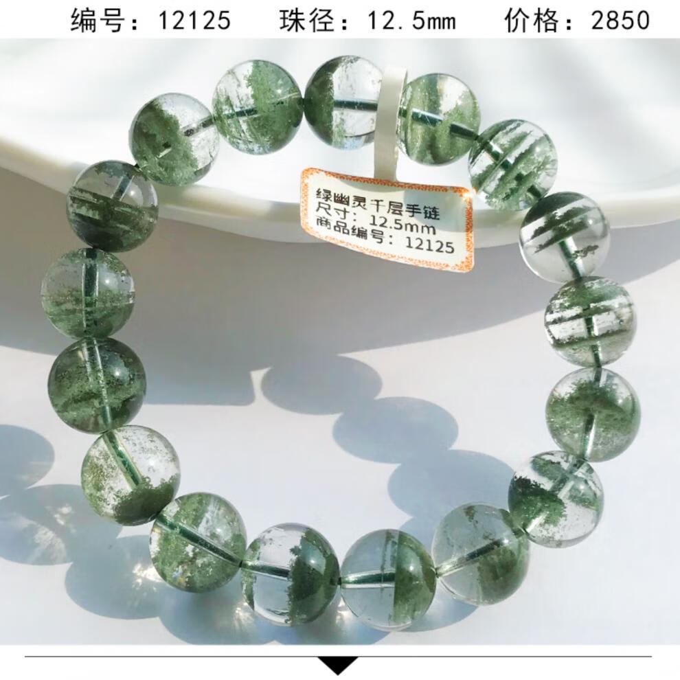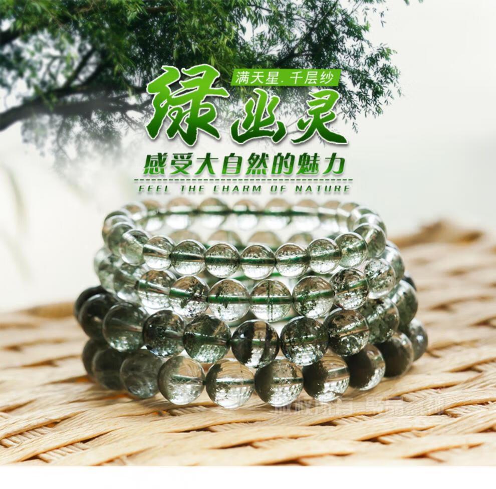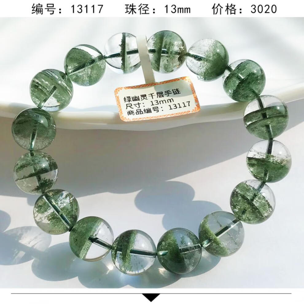 DL 1998 Fat Donglai même style bracelet fantôme vert bracelet corne d'abondance vert foncé pour hommes et femmes gypsophile mille couches cristal transparent trois fantôme vert 12131 12 mm