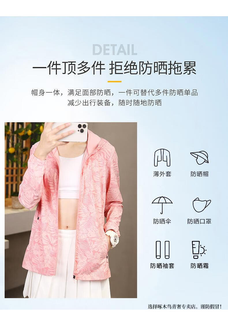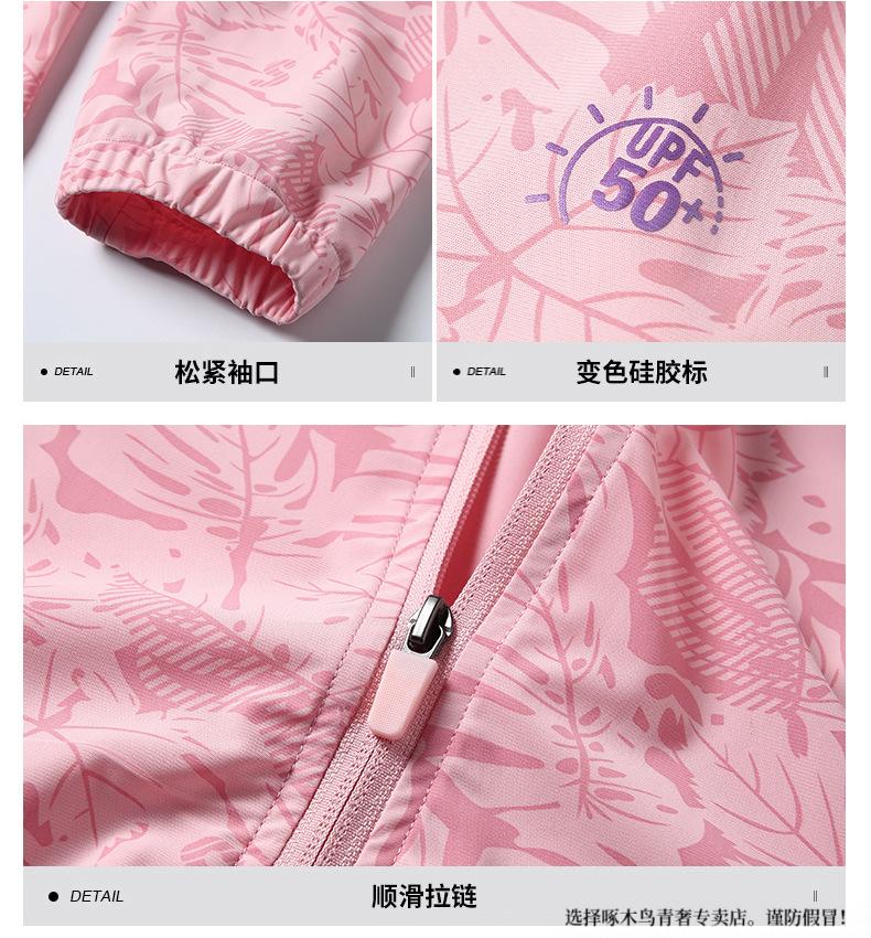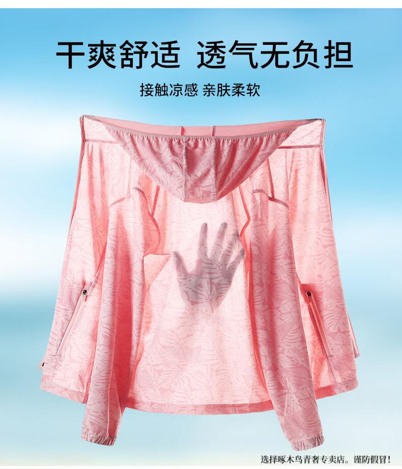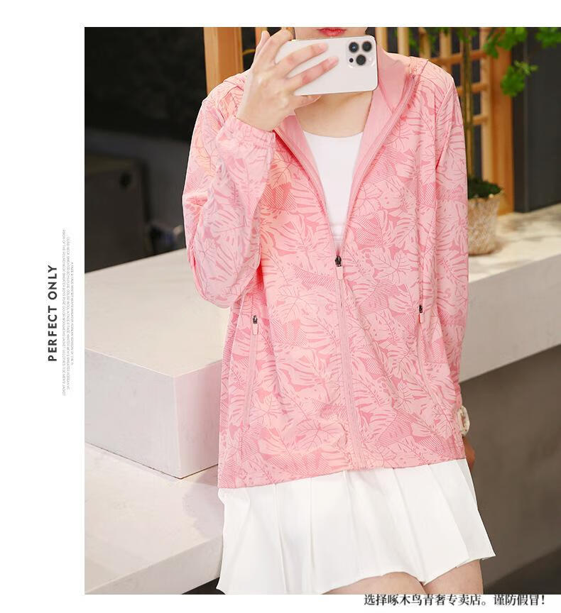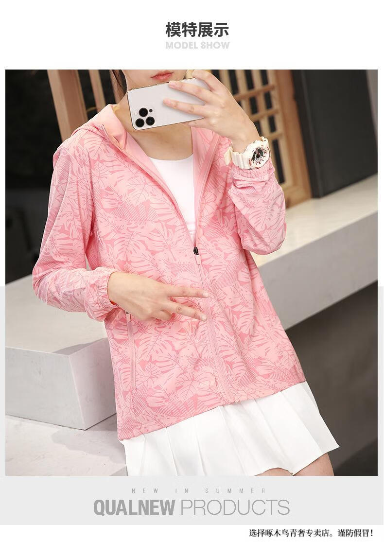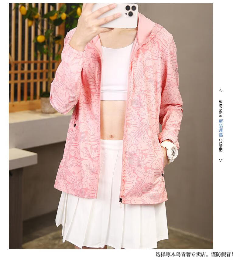 Woodpecker Women's Sun Protection Clothing Outdoor UV Breathable Zipper Hooded Cardigan Spring and Summer Sports Jacket Women-Pink M