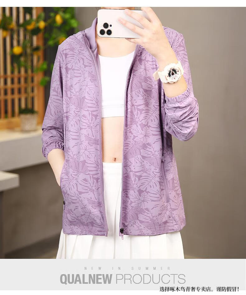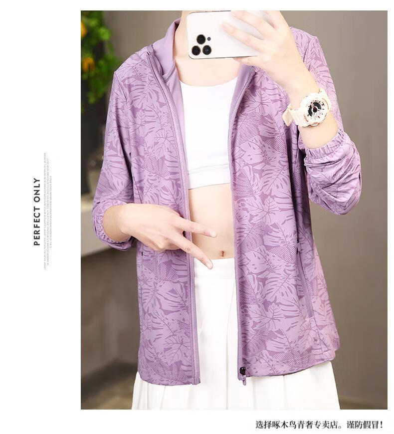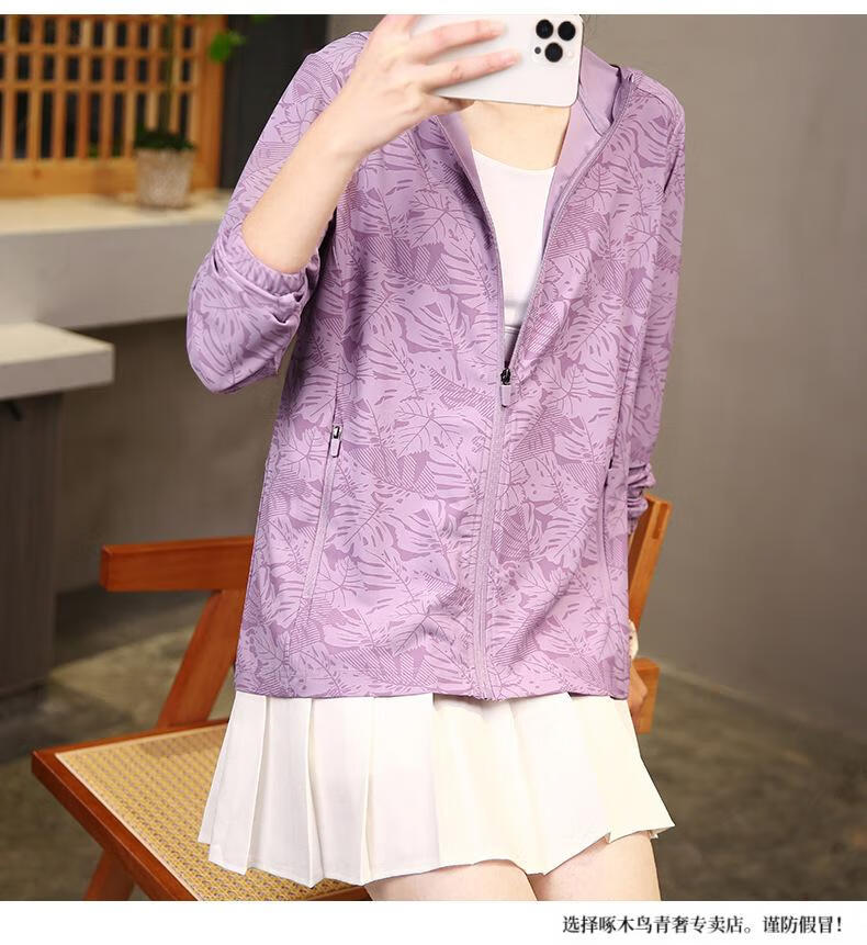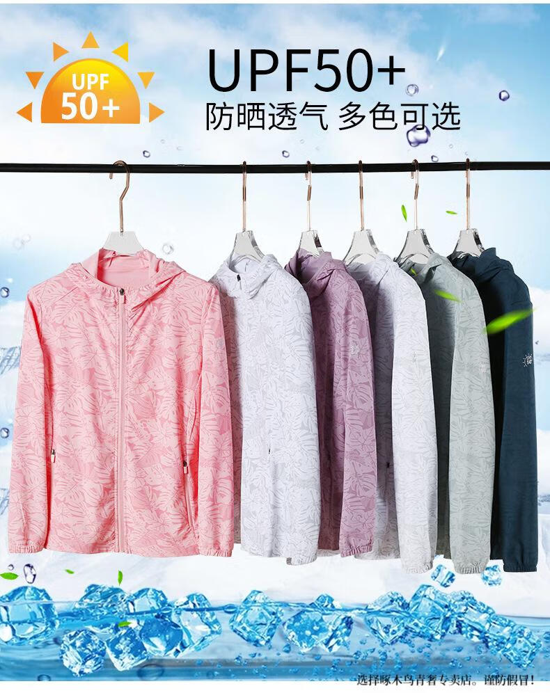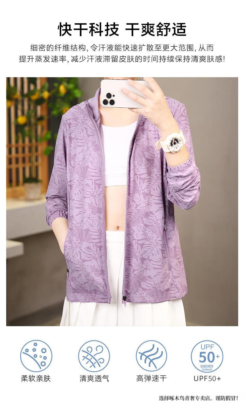 Woodpecker Women's Sun Protection Clothing Outdoor UV Breathable Zipper Hooded Cardigan Spring and Summer Sports Jacket Women-Pink M