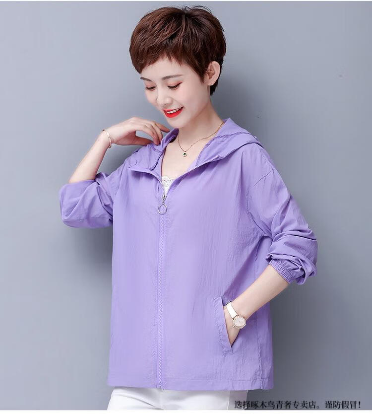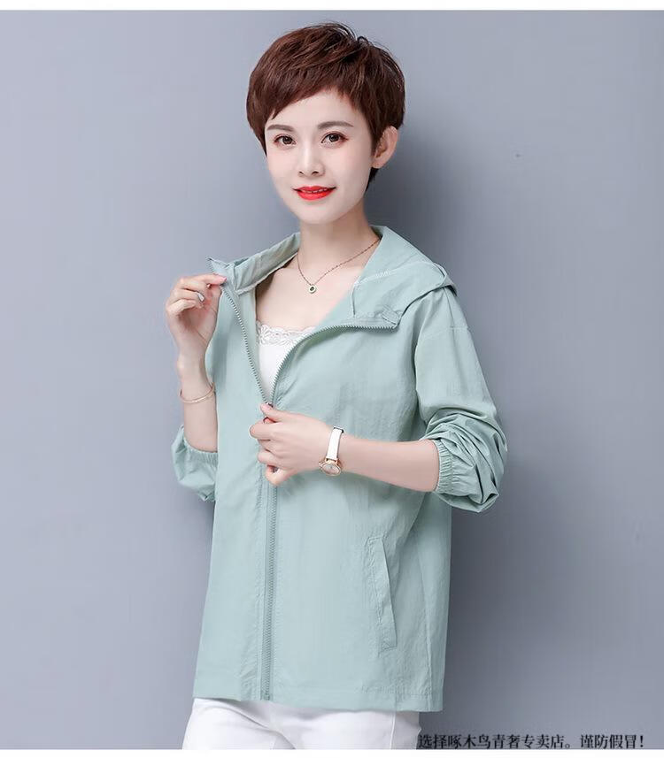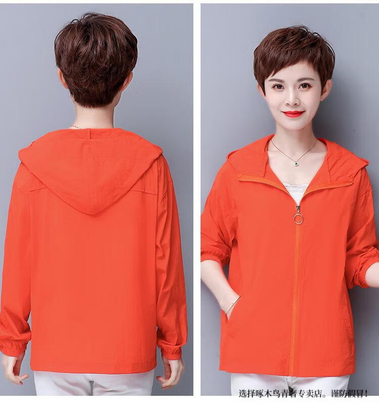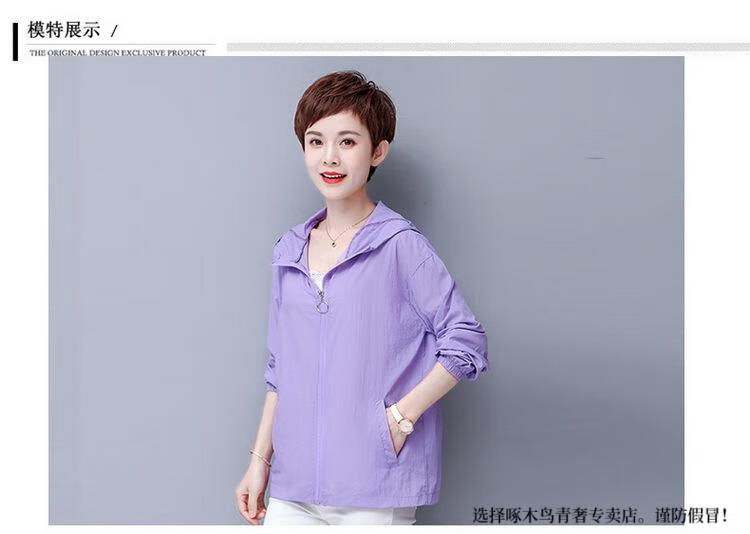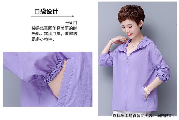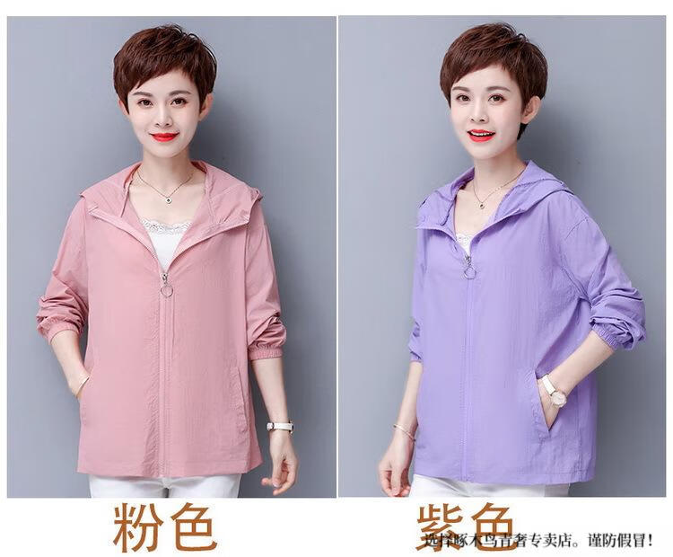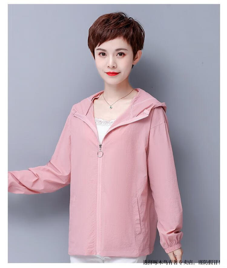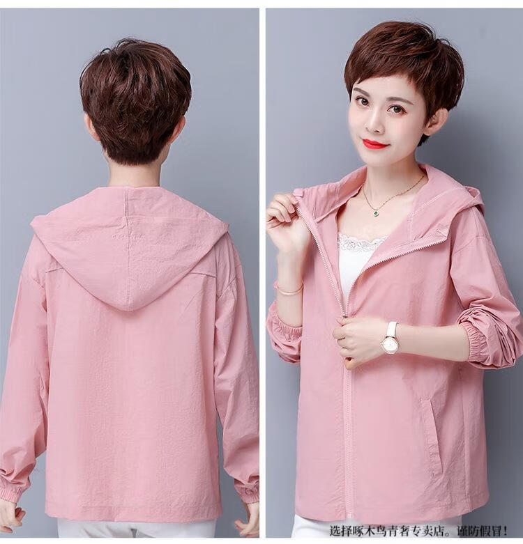 Woodpecker summer sun protection clothing for women, loose long-sleeved, thin, anti-UV, hooded design suitable for mothers, 2101 hooded style, pink 2XL (recommended weight 110-125Jin Jin equals 0.5kg)