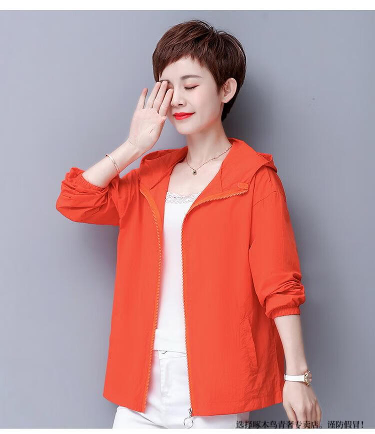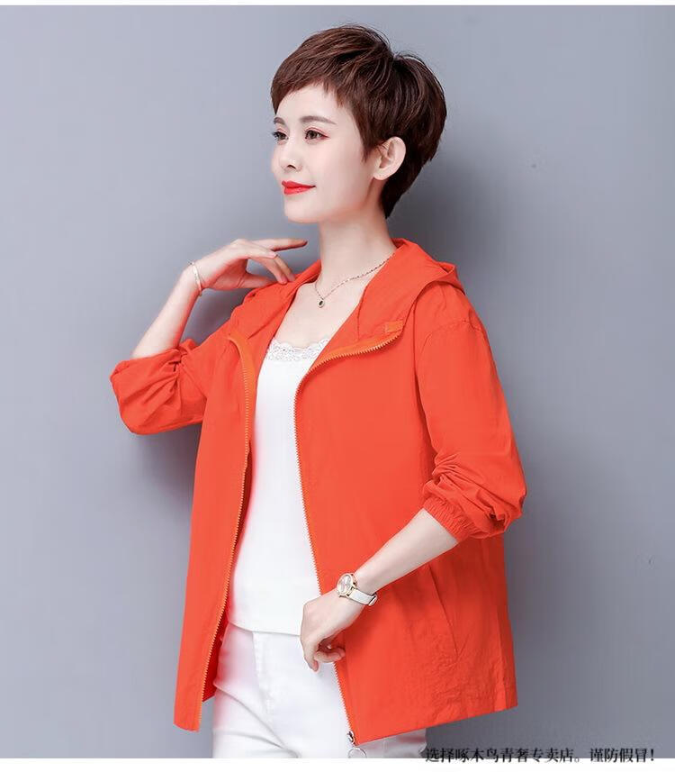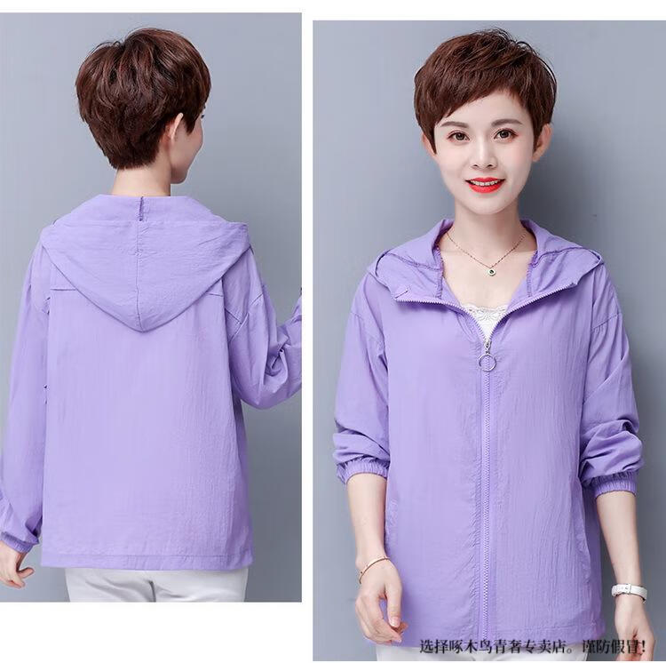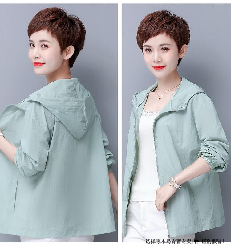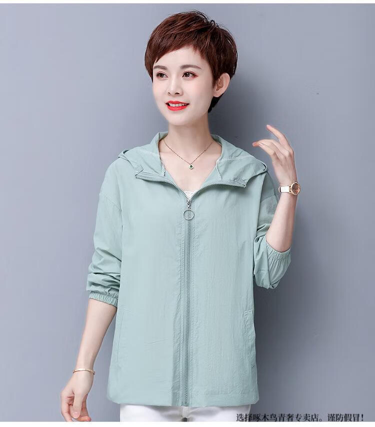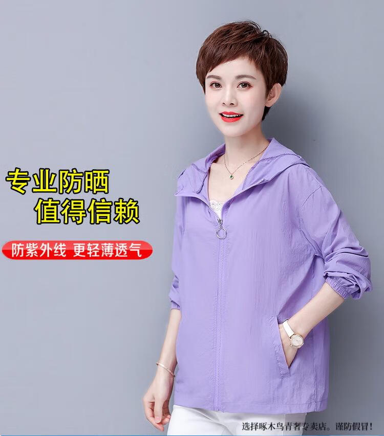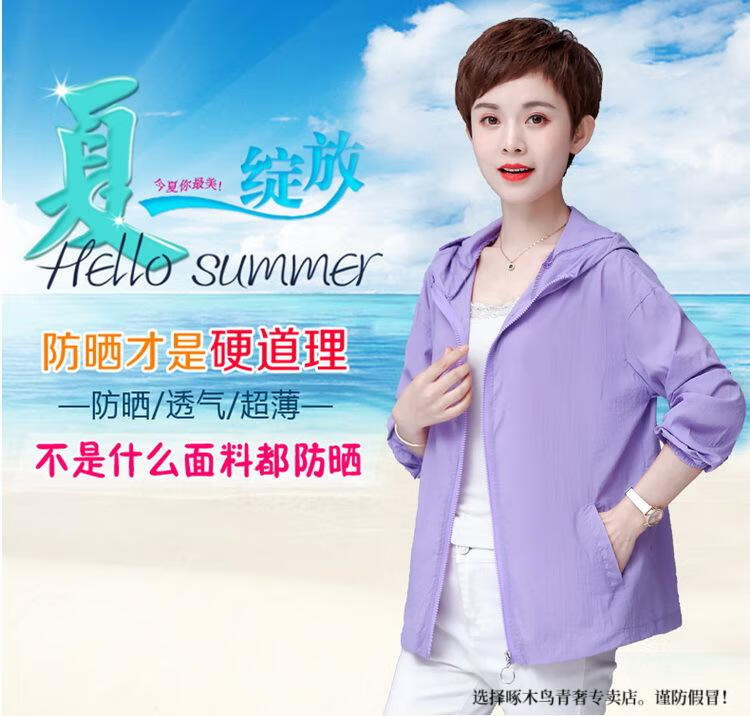 Woodpecker summer sun protection clothing for women, loose long-sleeved, thin, anti-UV, hooded design suitable for mothers, 2101 hooded style, pink 2XL (recommended weight 110-125Jin Jin equals 0.5kg)
