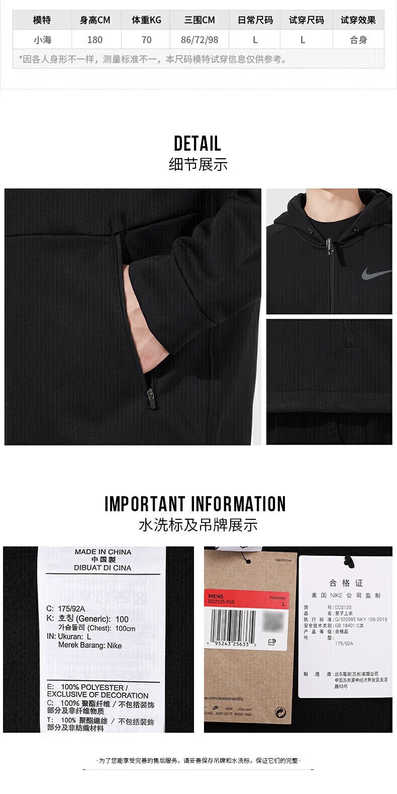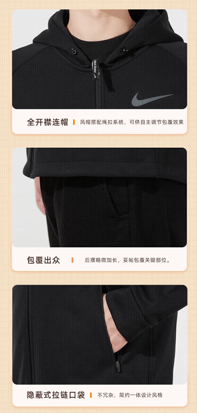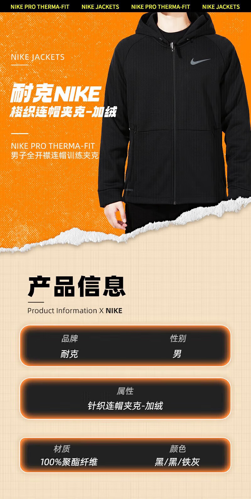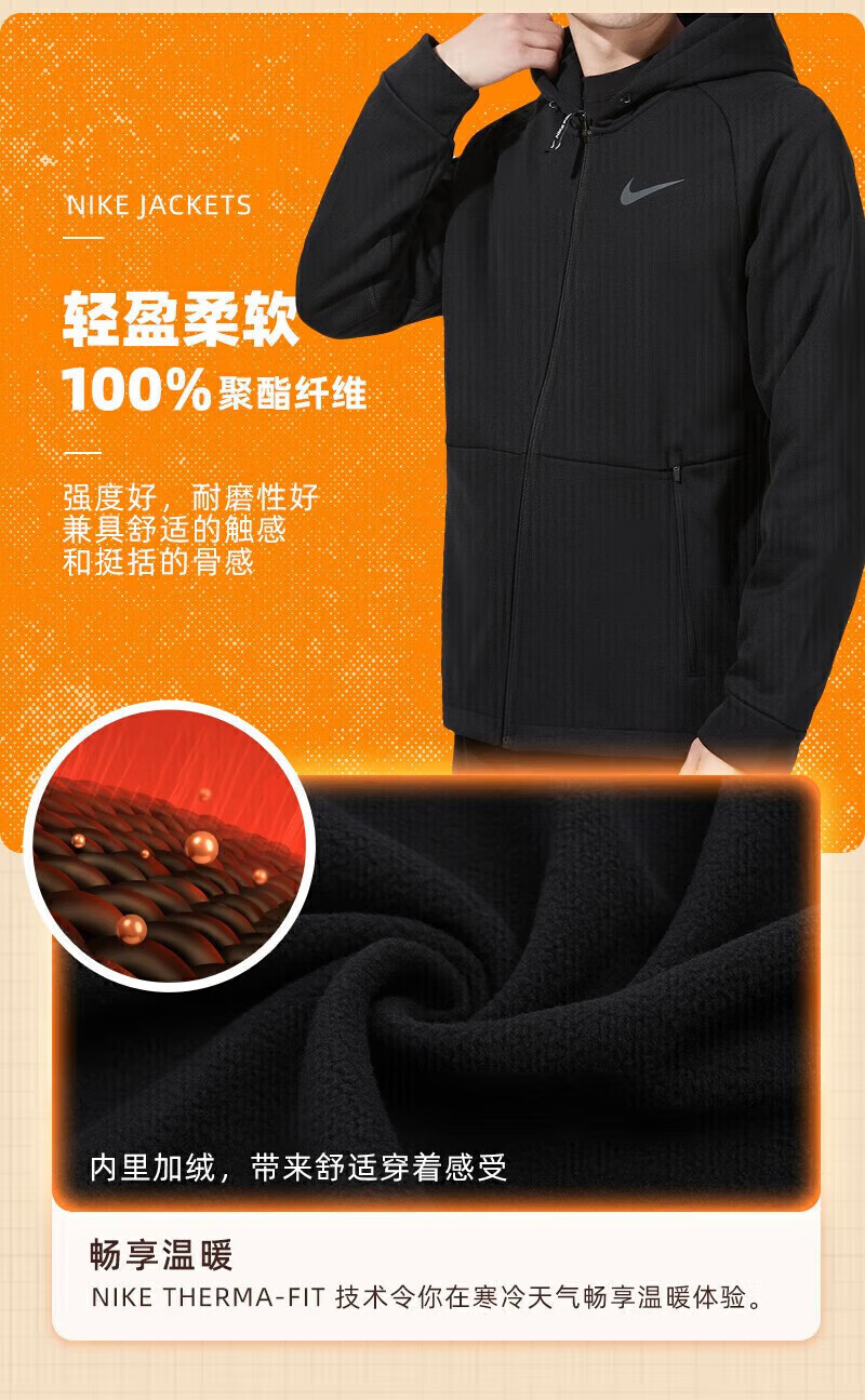 耐克(NIKE)官方舰店外套男装女装 新款情侣跑步运动服连帽针织加绒保暖夹克 010-黑色-加绒-现货速发 M (170/88A)