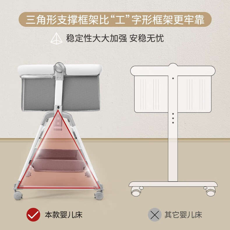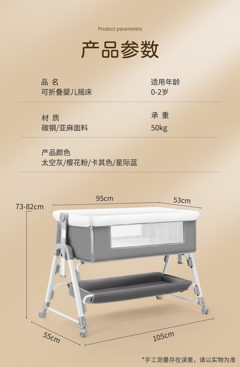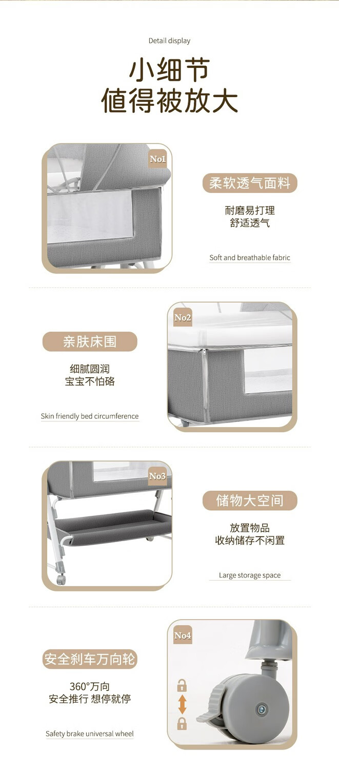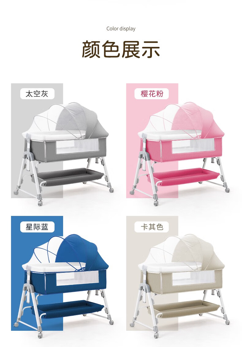 多功能可折叠婴儿床可移动便携式新生儿摇篮床欧式宝宝床拼接大床 灰色+蚊帐+床垫+尿布台