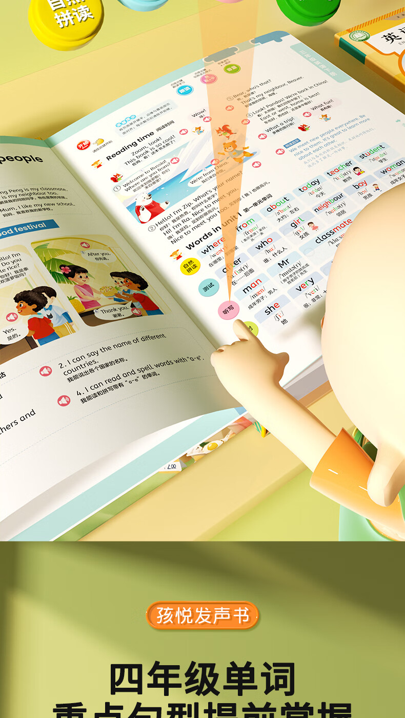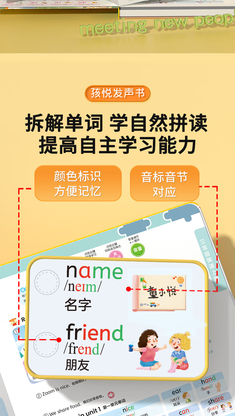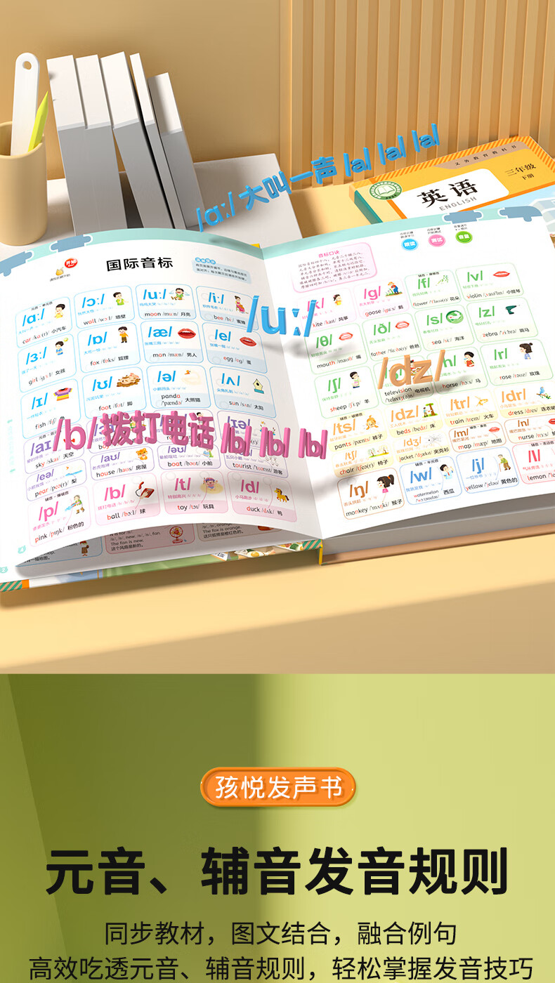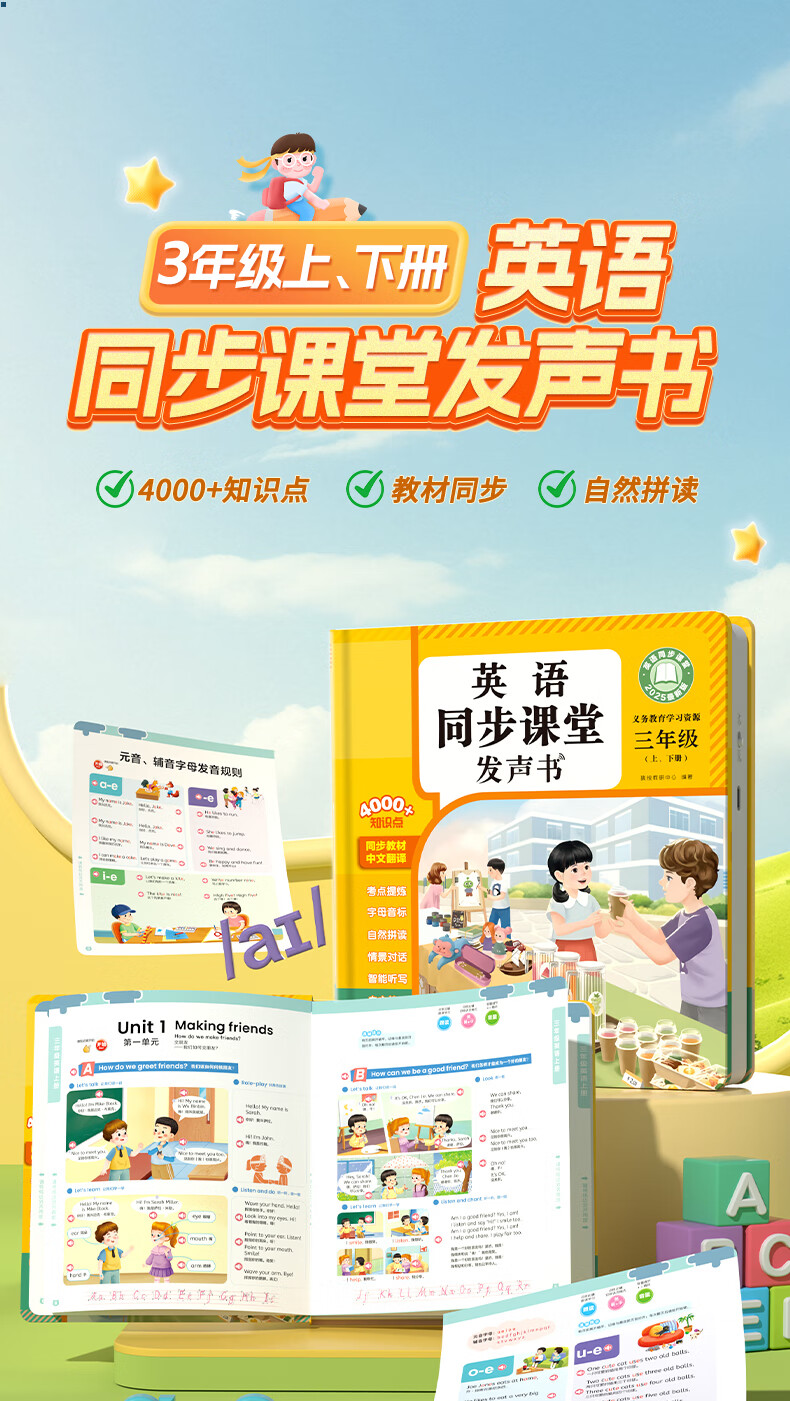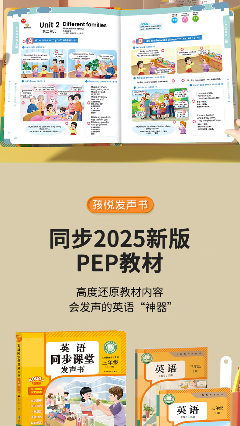 人教版三年级英语同步课堂发声书幼儿英文零基础入门学习神器单词音标字母3-6年级小学生听读记背日常情景对话儿童启蒙有声学习机会说话的早教点读中英文双语绘本 英语同步课堂书+3-6年级英语单词+英语自然拼