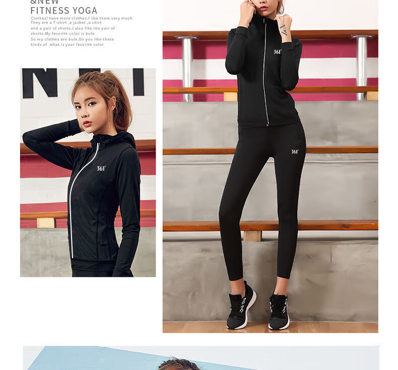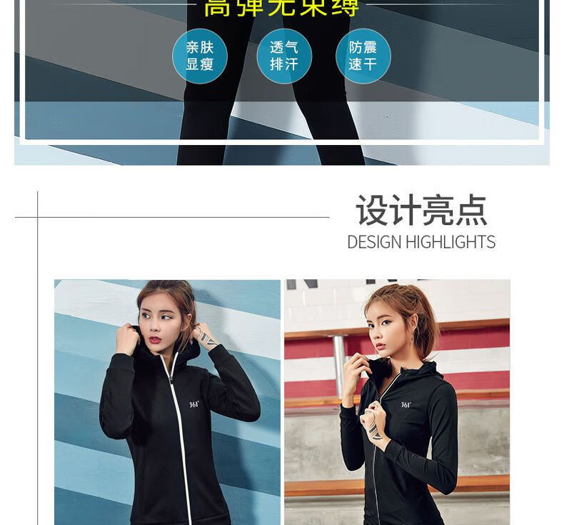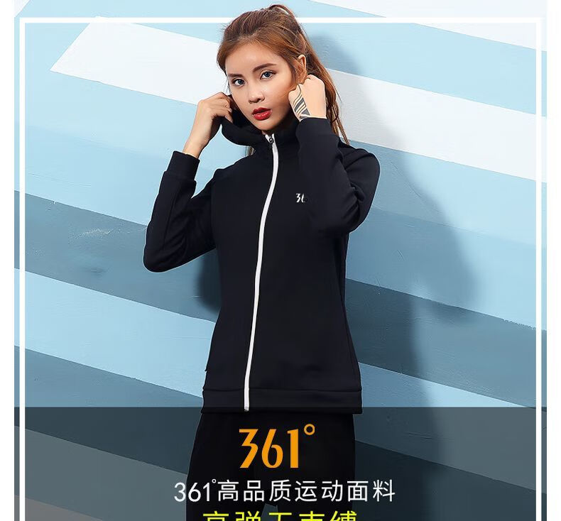 361 Sports Jacket Women's Yoga Wear Quick-Drying Long-Sleeved Top Zippered Autumn Running Fitness Suit Training Clothes Dynamic Technology-Quick Open Zipper Black S