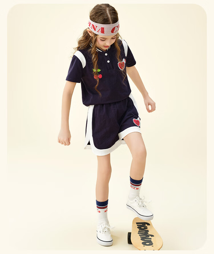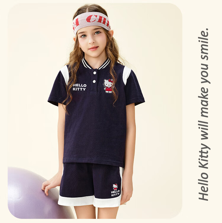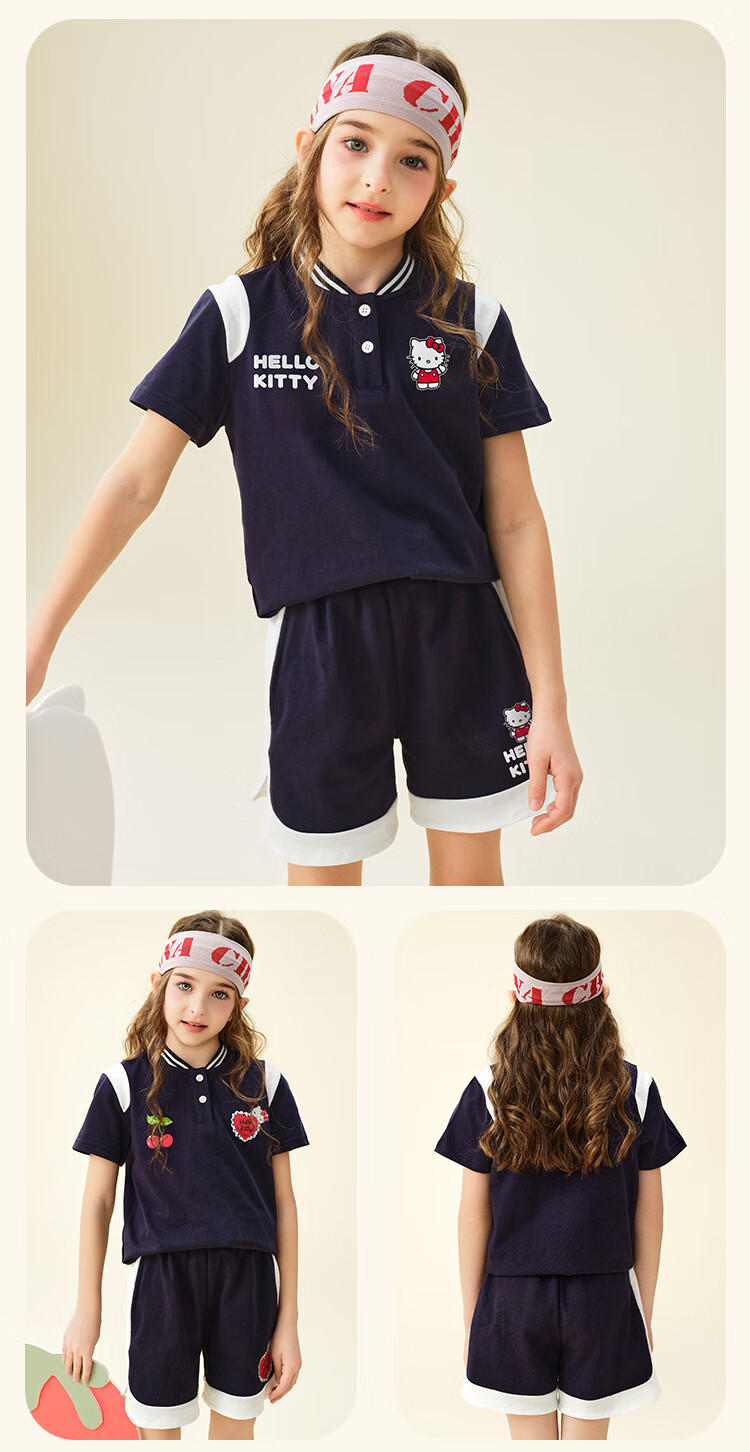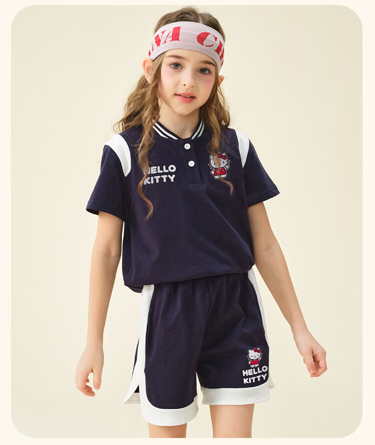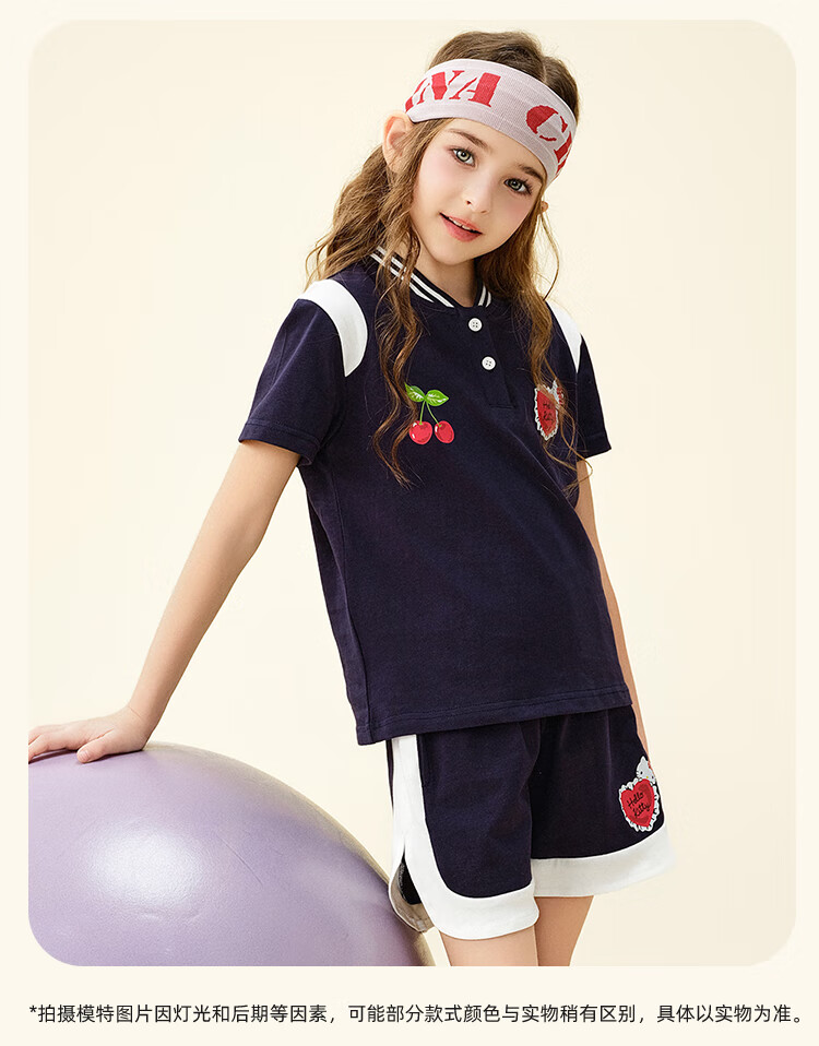 KT girls summer new style casual middle and large children's sports two-piece suit navy blue 753 110 110 size
