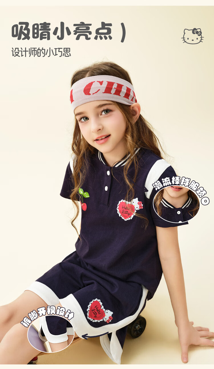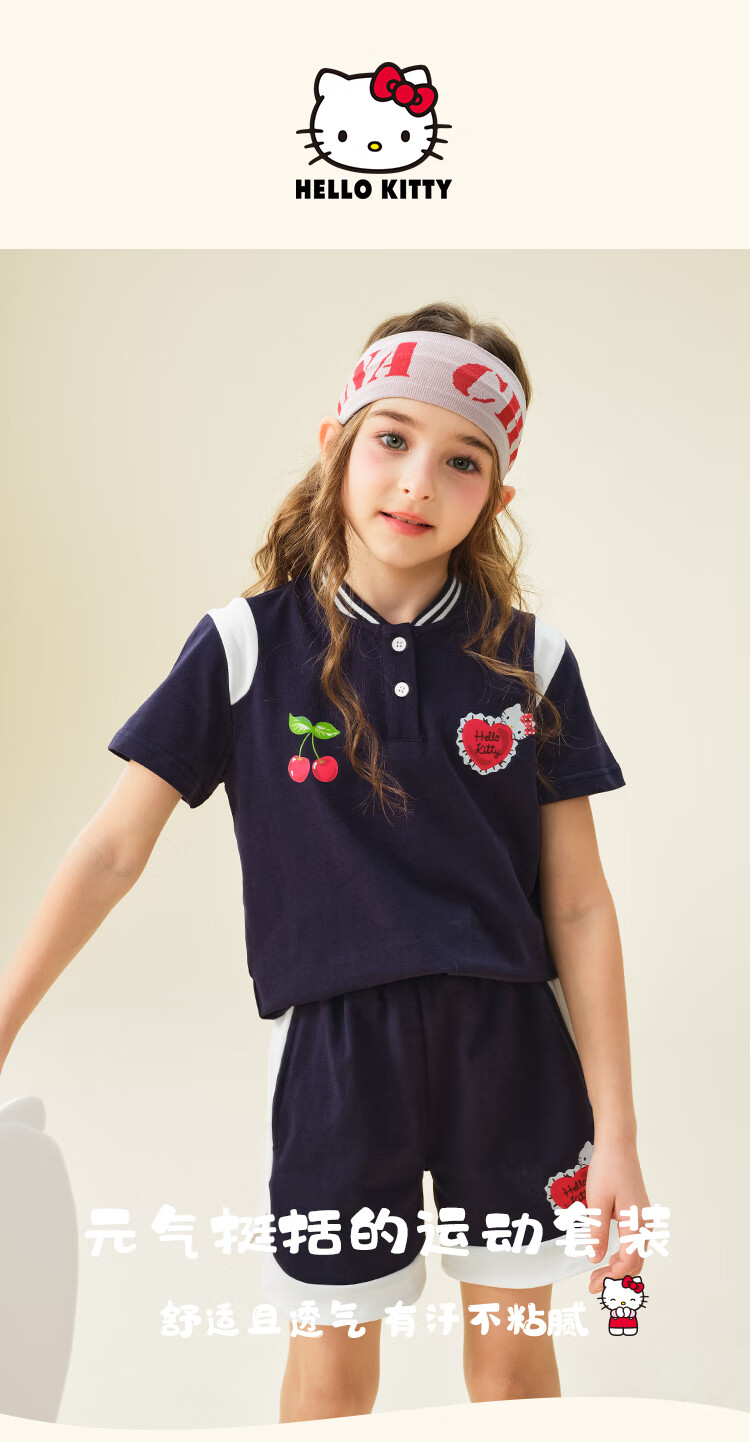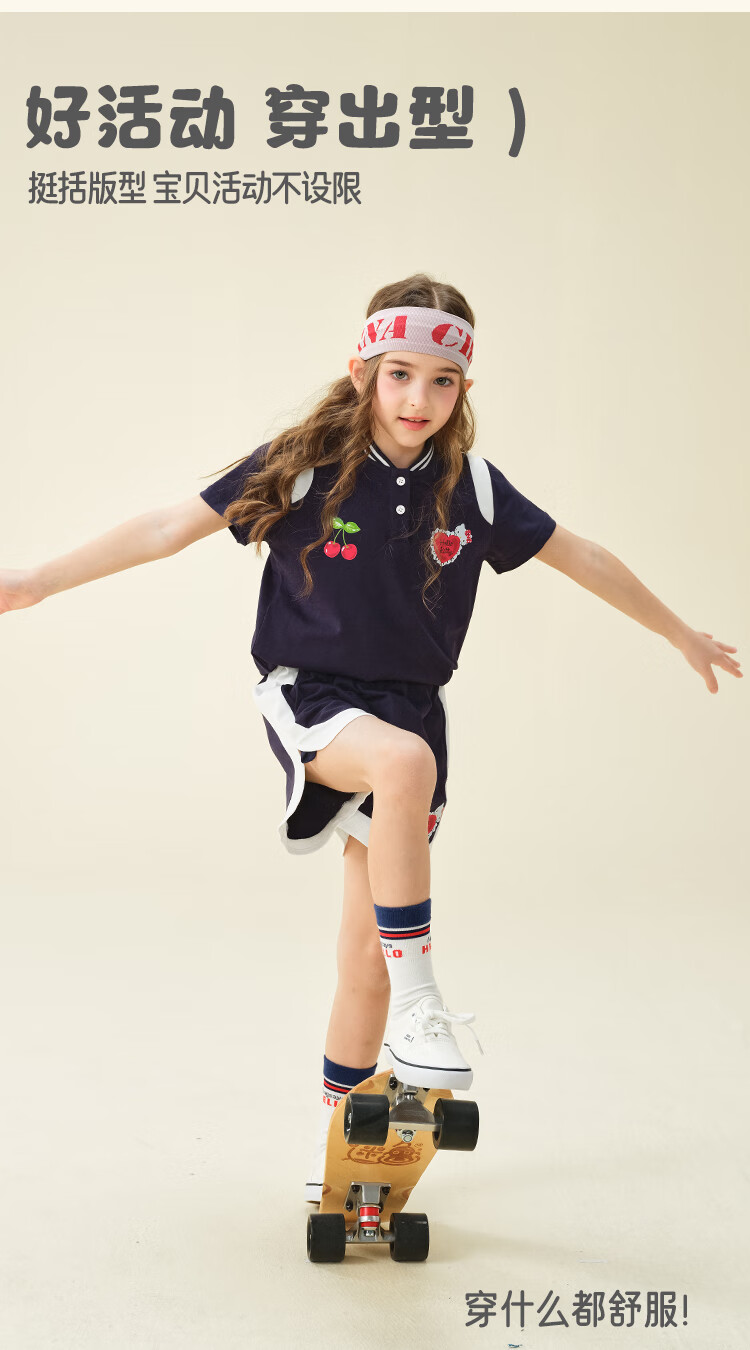 KT girls summer new style casual middle and large children's sports two-piece suit navy blue 753 110 110 size