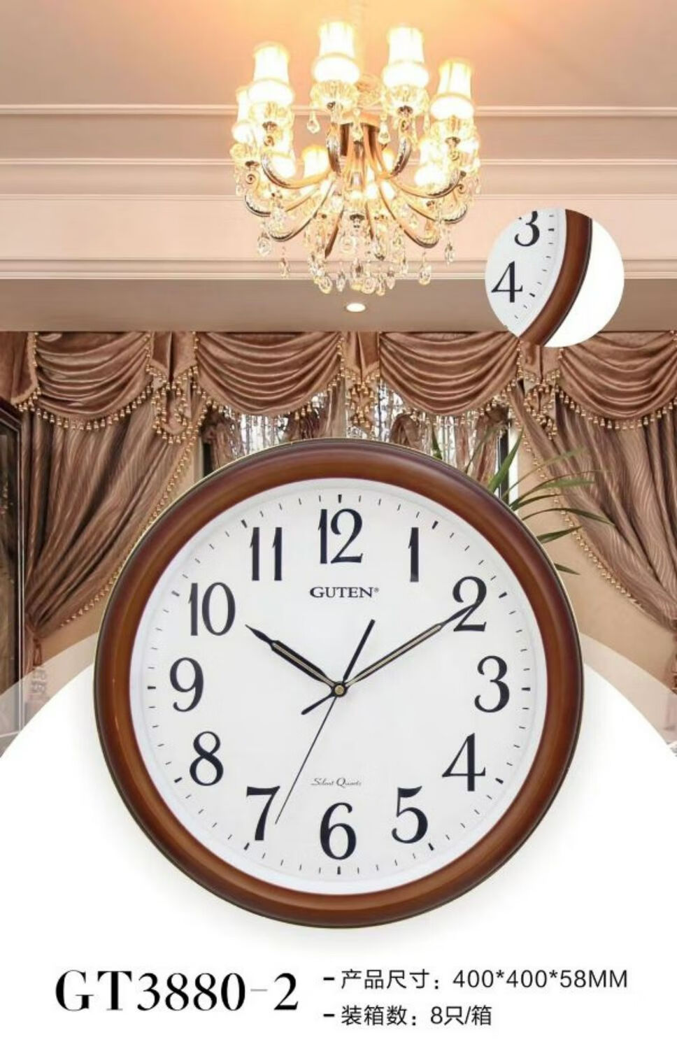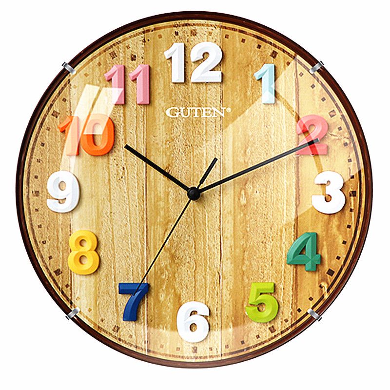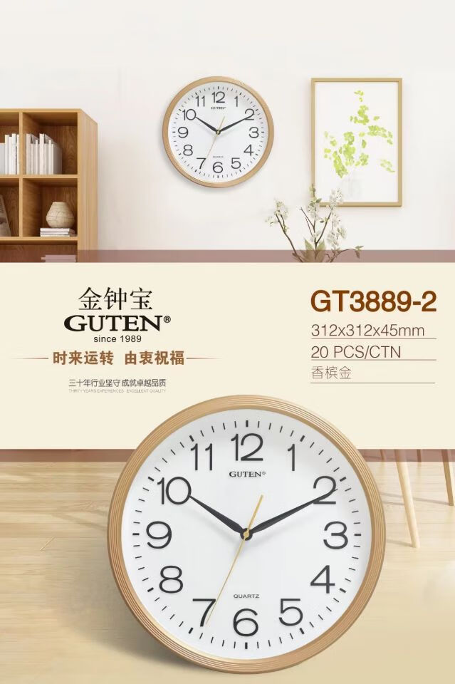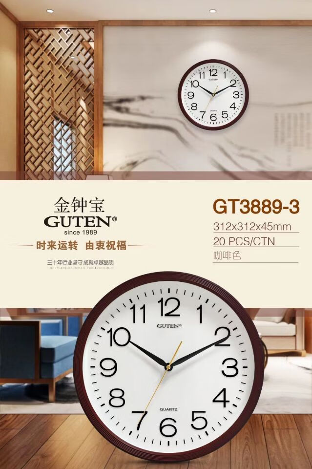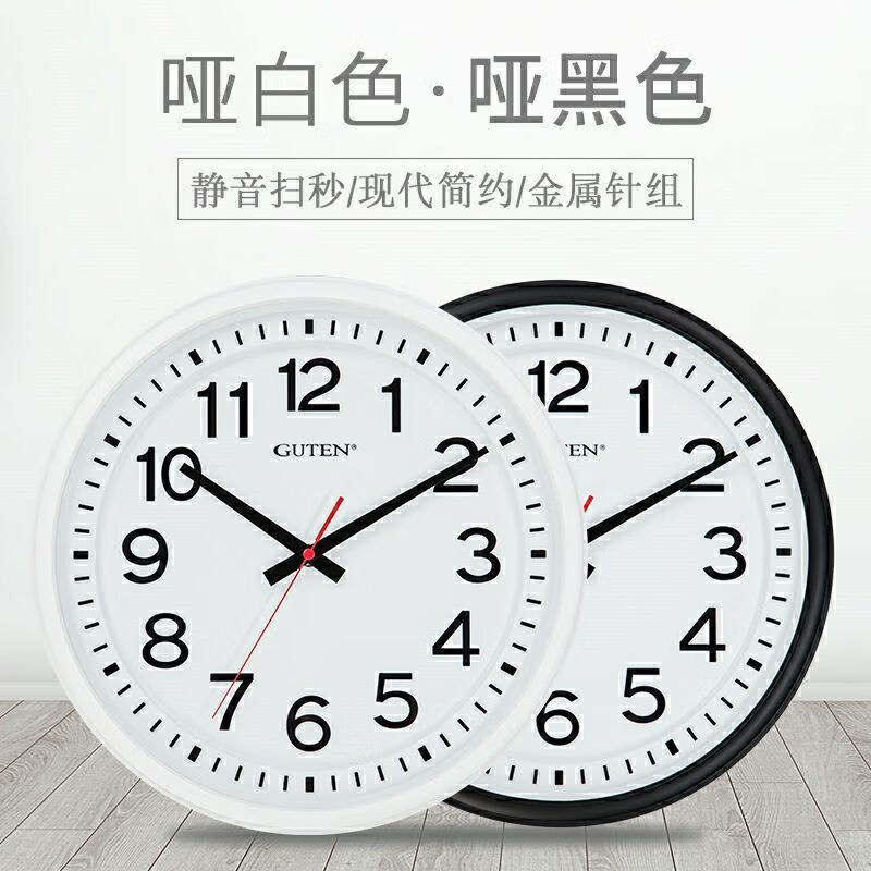 维榕金钟宝挂钟大客厅学校简约圆石英墙钟显眼大字体挂壁钟 3883哑黑色    直径34厘米 1英寸