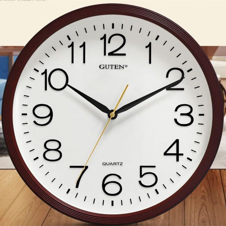 维榕金钟宝挂钟大客厅学校简约圆石英墙钟显眼大字体挂壁钟 3883哑黑色 直径34厘米 1英寸