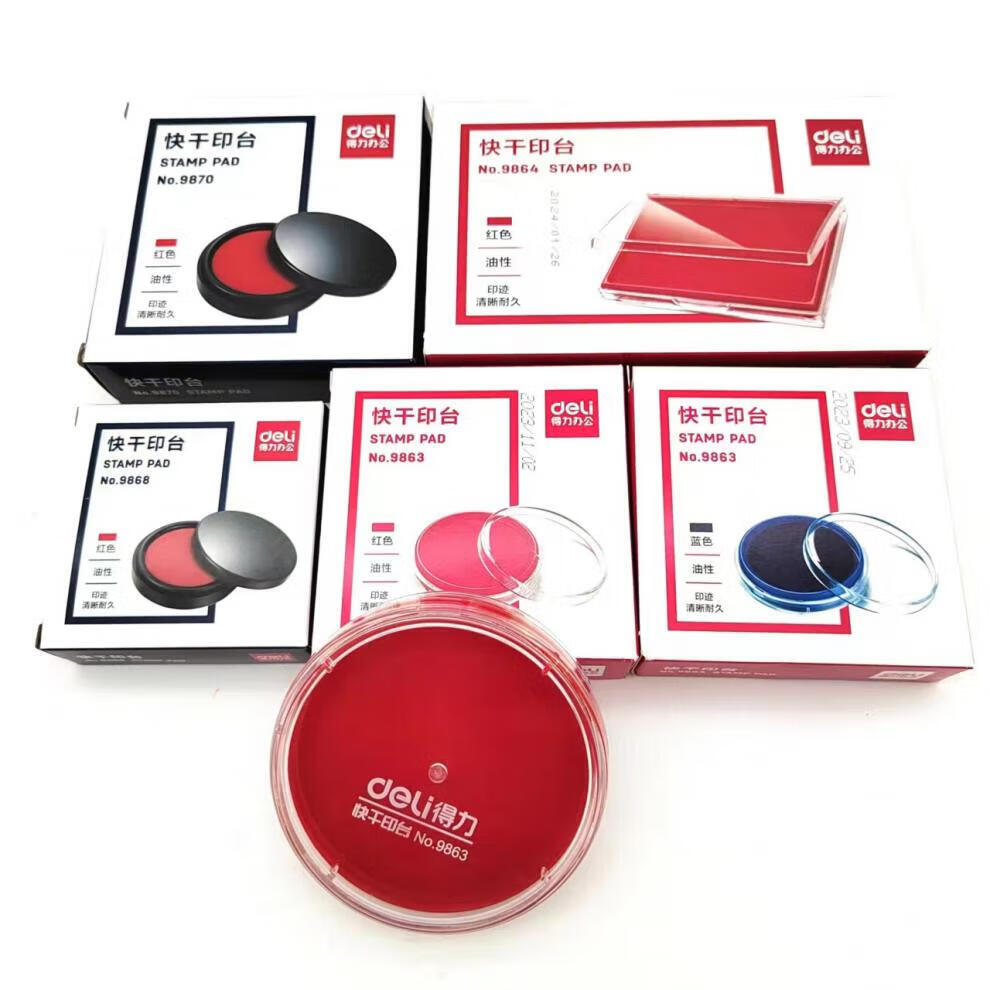 Deli round quick-drying ink pad red quick-drying ink pad financial office hard sponge second-dry stamp 9864 ink pad (red) 1 piece