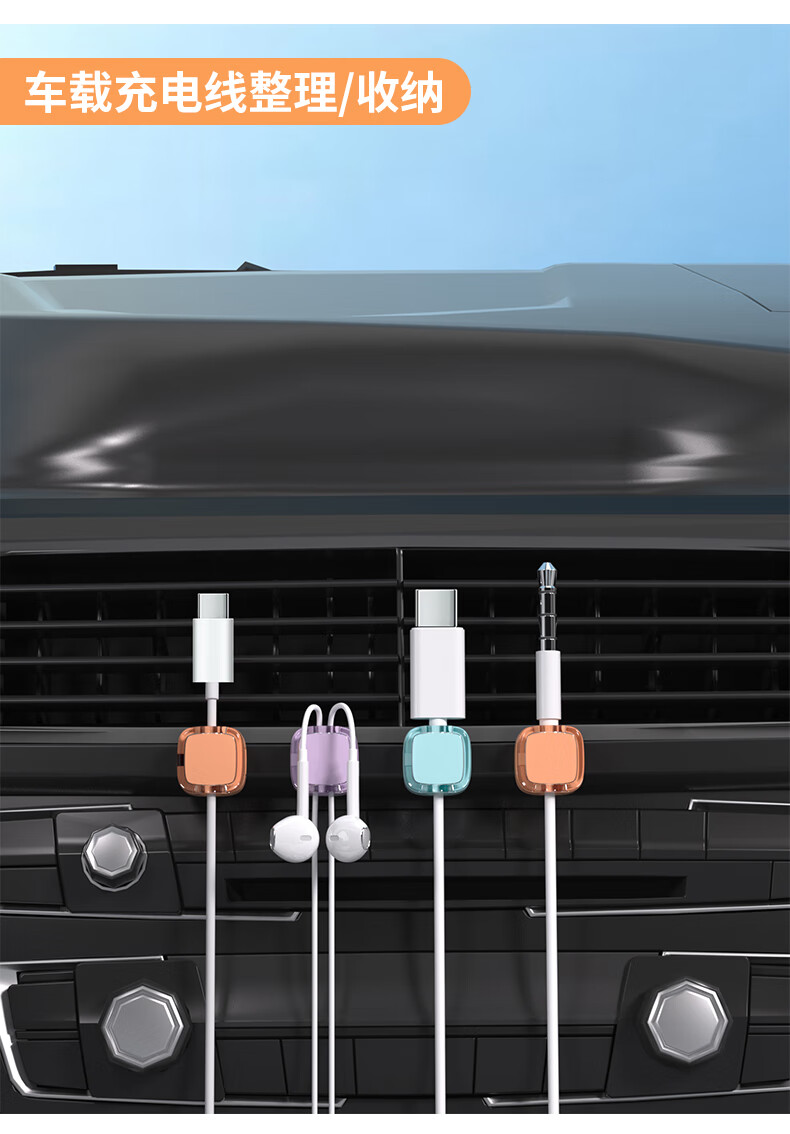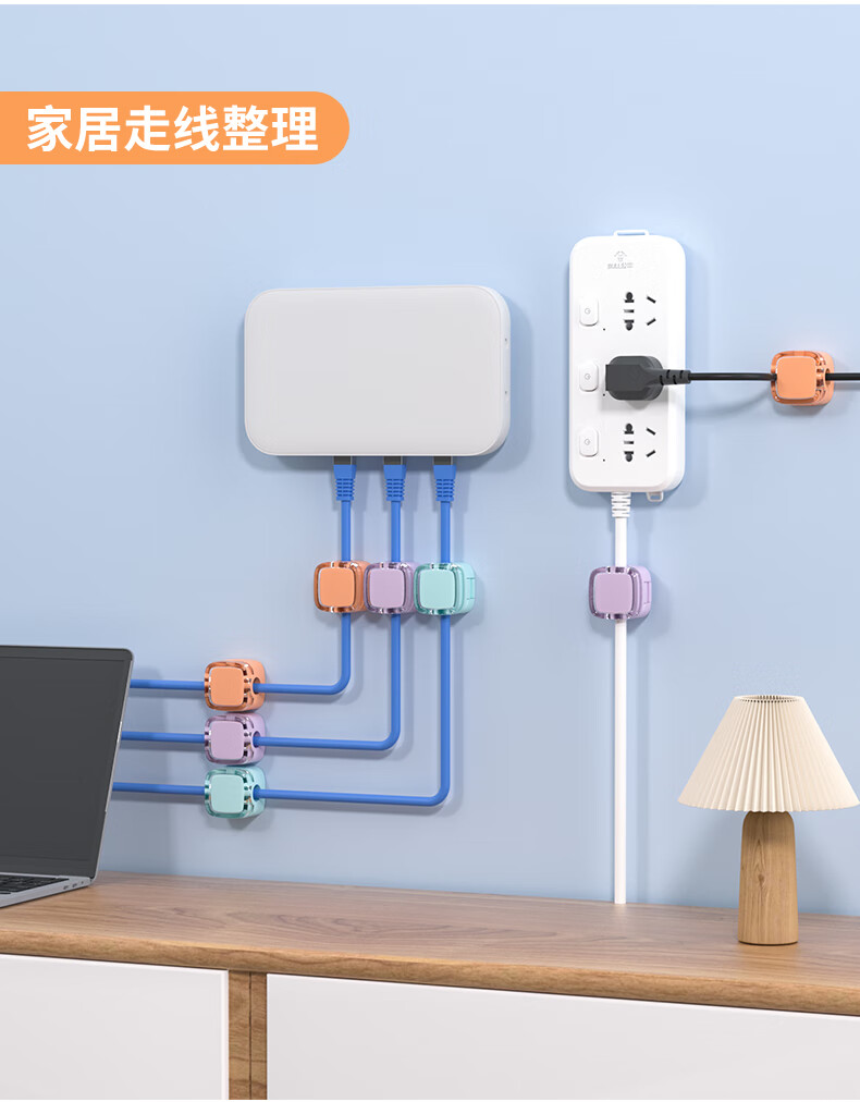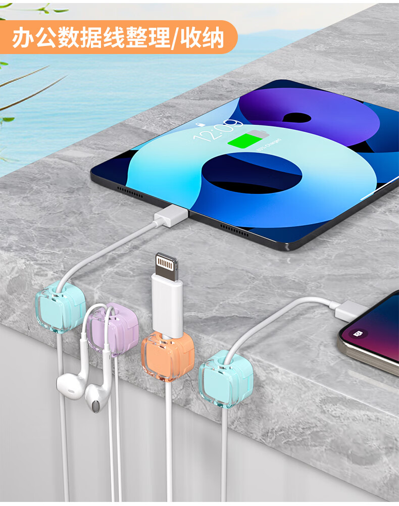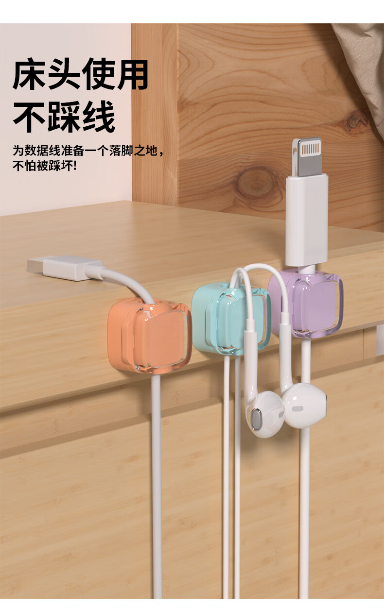 床头柜磁吸理线器数据线固定器桌面手机充电线收纳夹挂钩整理神器 透明彩色【6个装】