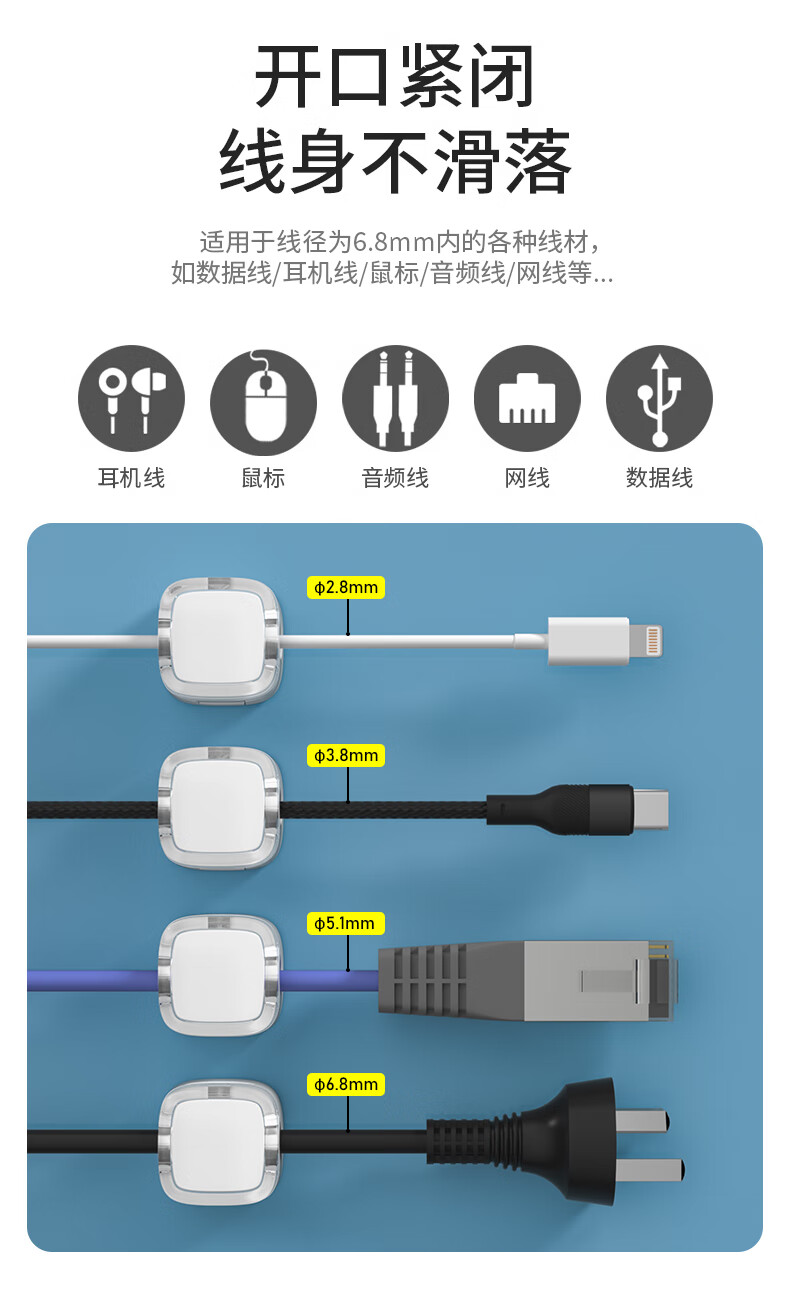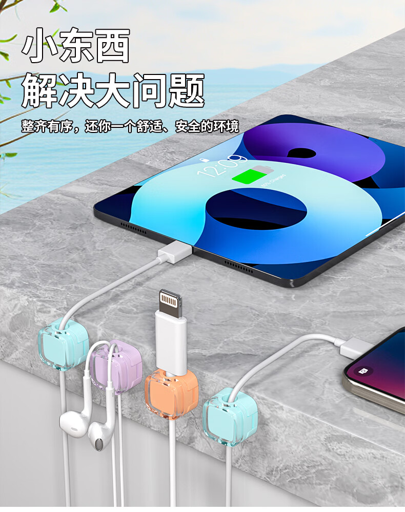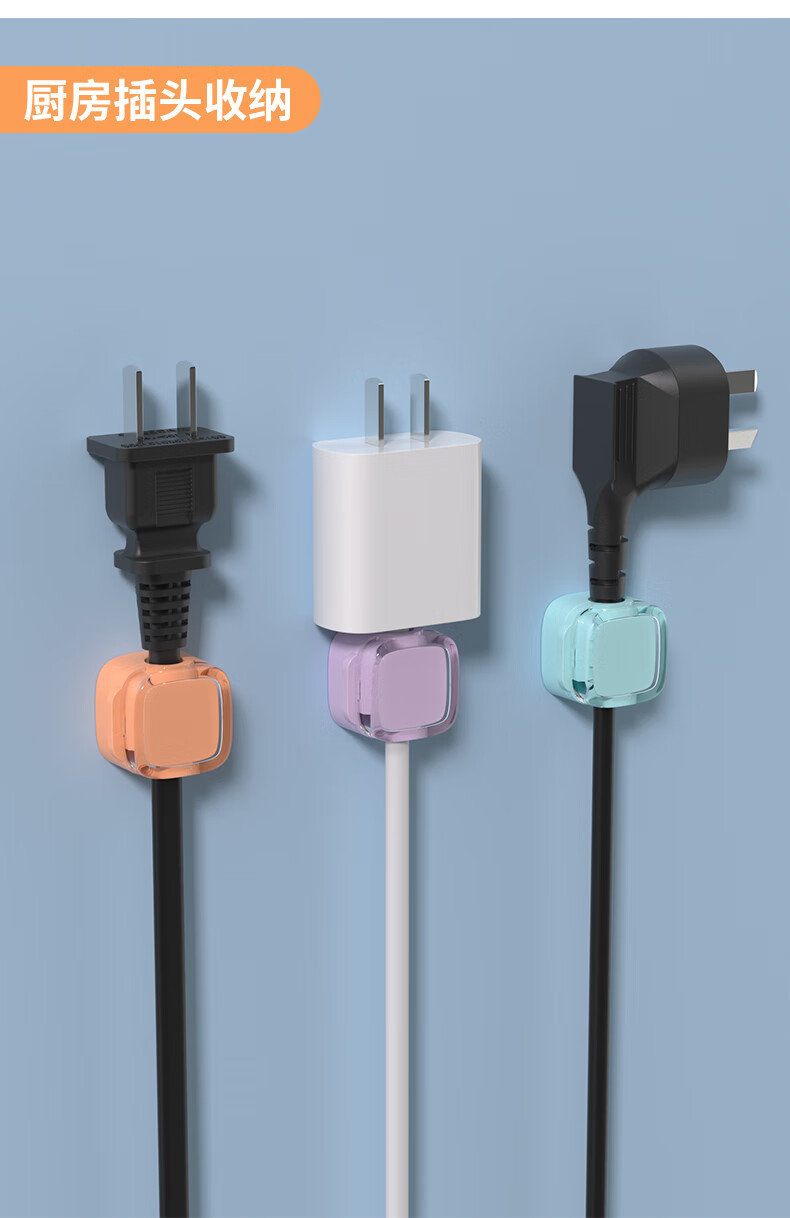 床头柜磁吸理线器数据线固定器桌面手机充电线收纳夹挂钩整理神器 透明彩色【6个装】