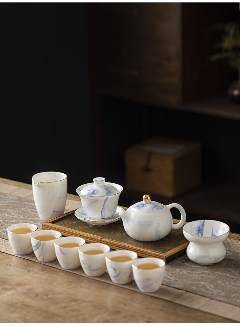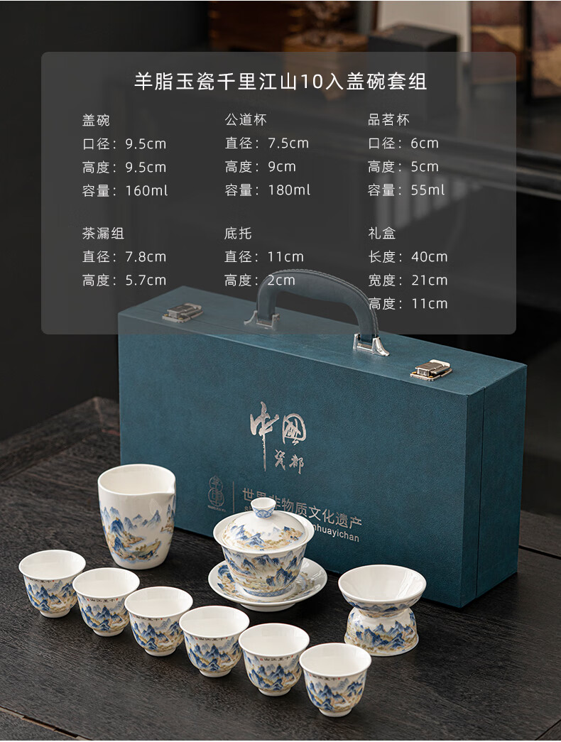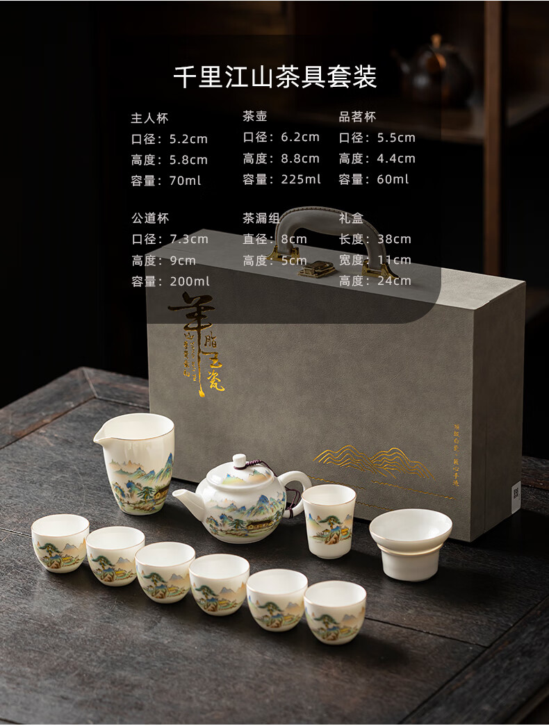 羊脂玉琉璃泡茶专用喝茶茶具套装2024新款家用办公茶杯套装 9274羊脂玉敦煌飞花---礼盒装