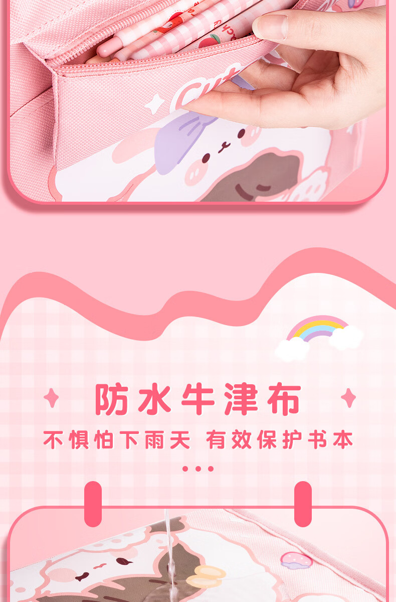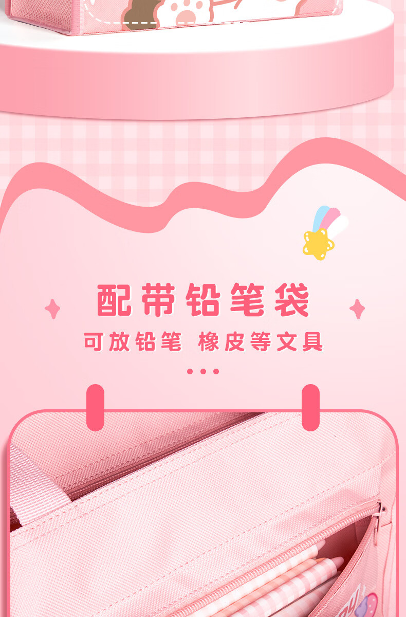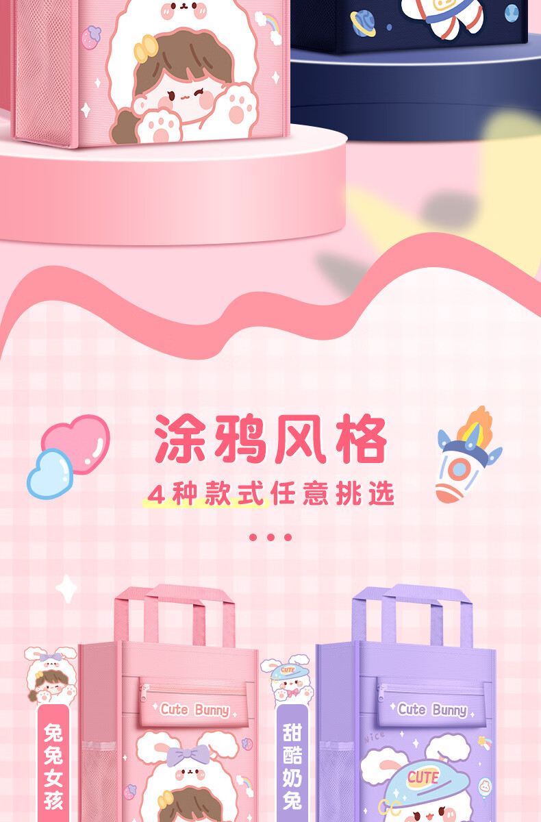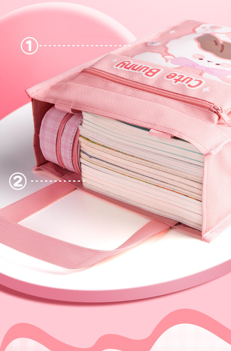 博孚卡通大容量补习袋帆布手提袋小学生拎书袋男孩女作业袋学习文 多功能补习袋【6623】粉色1个