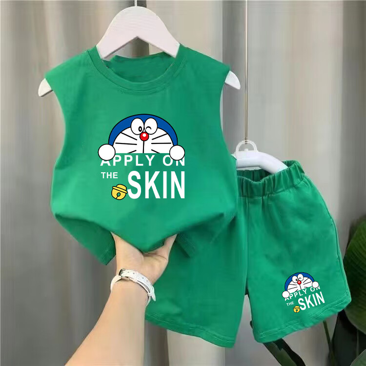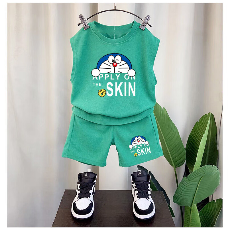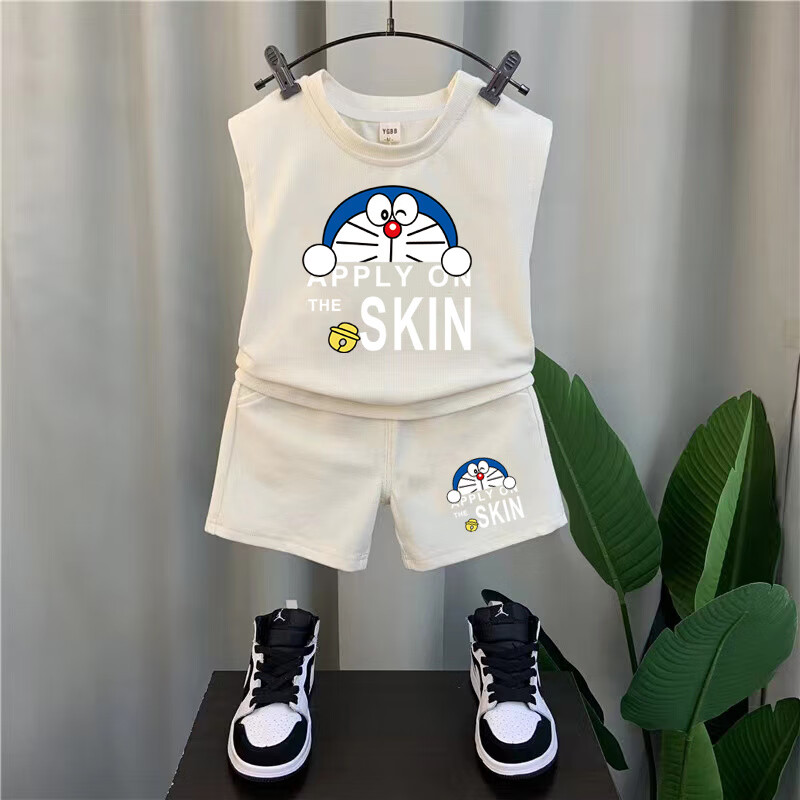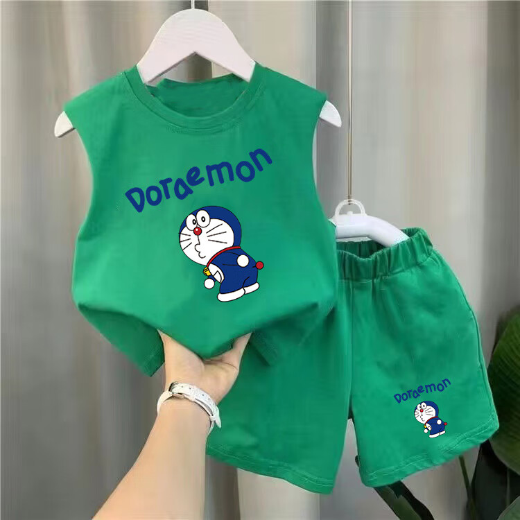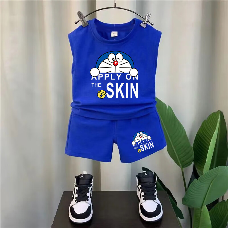 SUYOUMI kaufte 3887 Mal neue Sommerkleidung für Jungen, Westenanzug für Kinder, modisch, dominant, Sommer, ärmelloser Sommer für Kinder, Eisseidenstoff, kühl im Sommer, blau Doraemon 90 Empfehlung 80–90 cm