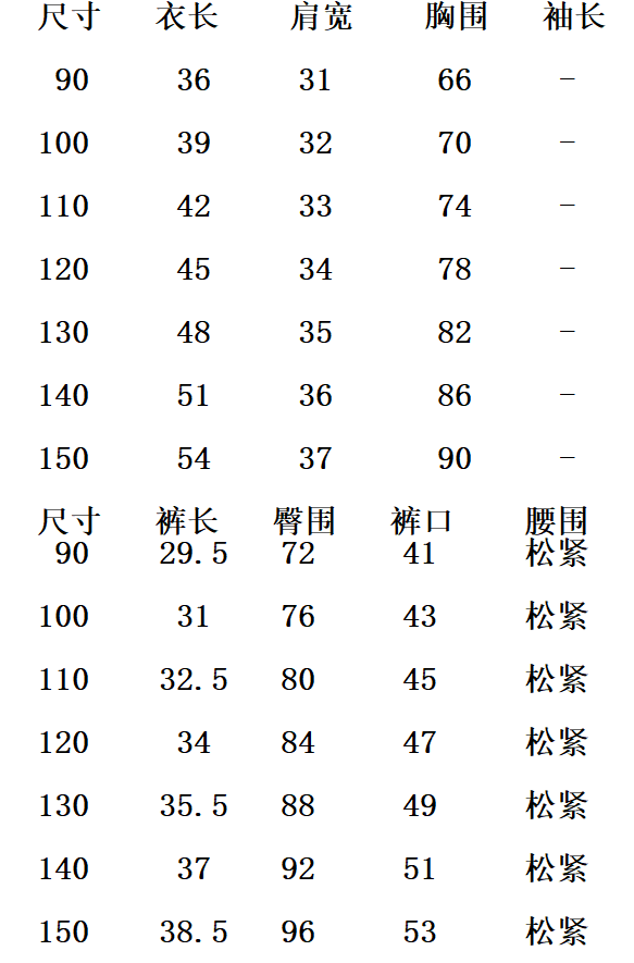 China (cm) 160-165/84-86 165-170 / 88-90 167-172 / 92-96 168-173 / 98-102 170-176 / 106-110