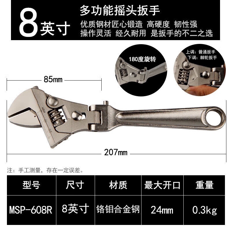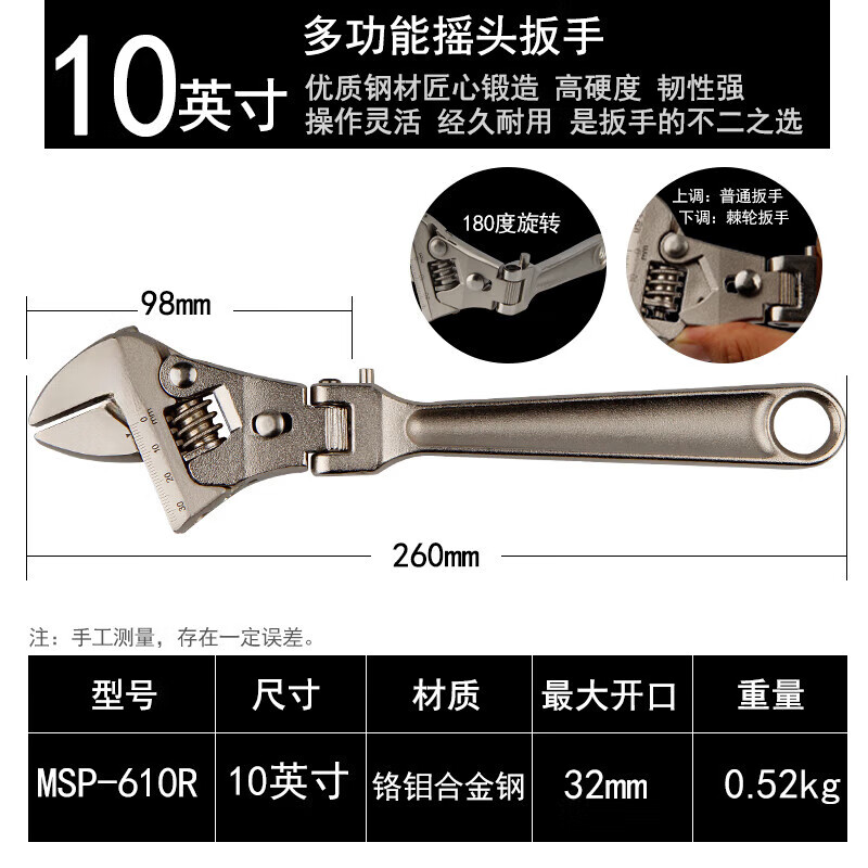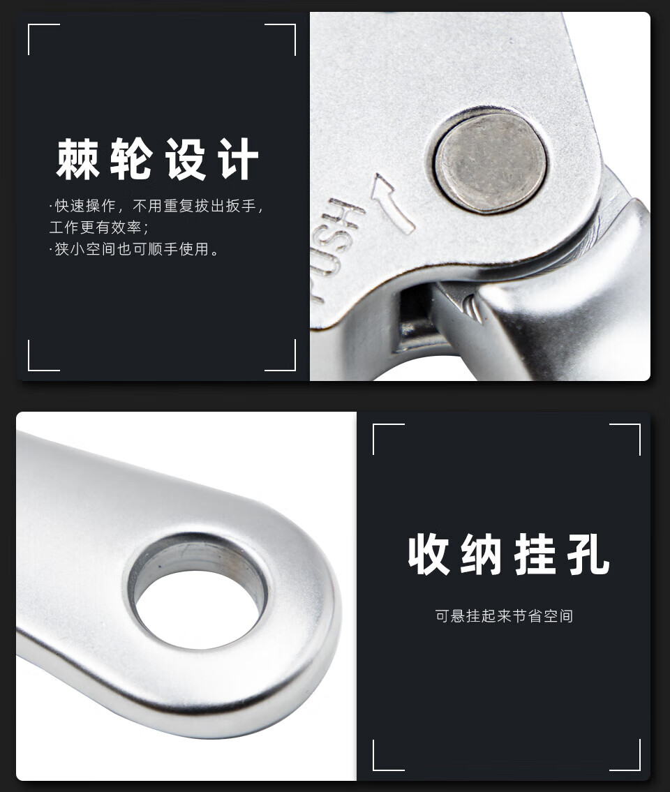 棘轮活动扳手大开口摇头扳手多角度调节折叠快速扳手 HE1517 1517MM自锁棘轮扳手