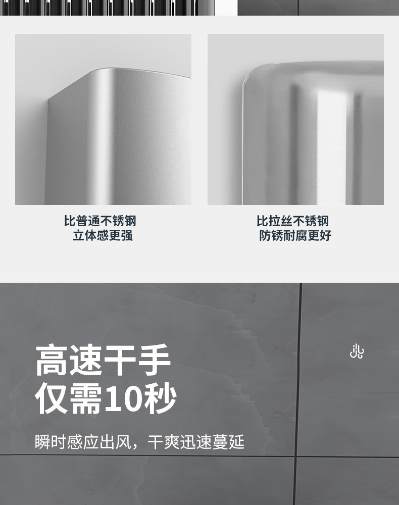 干手器全自动感应烘干机手器卫生间烘手机不锈钢商用吹手烘手器 A3892白色不锈钢【长款】