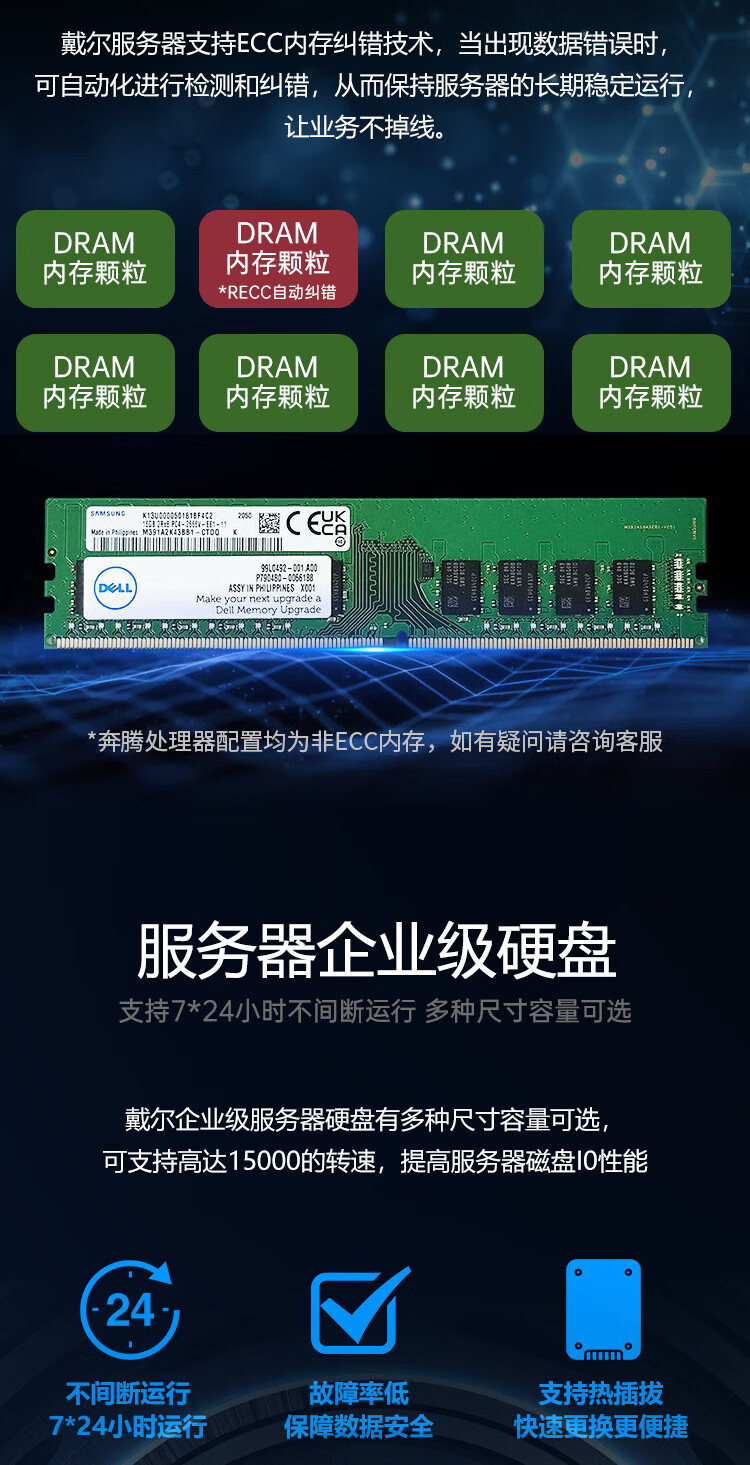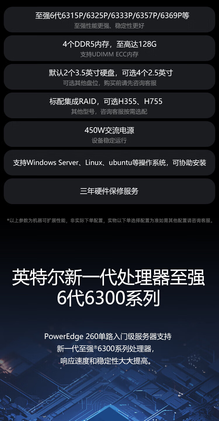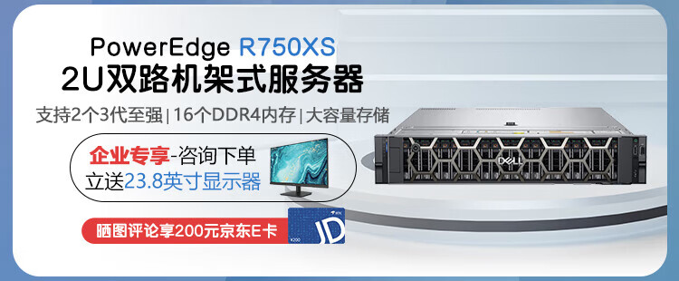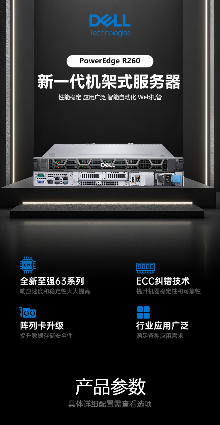 戴尔(DELL)PowerEdge R260/R360 1U机架式服务器金蝶ERP文件共享云主机服务器 R360【E-2468 8核2.6G】双电 64G内存丨2x4T企业级丨RAID1