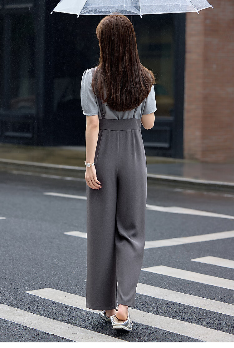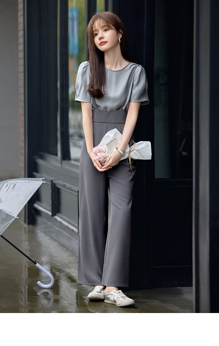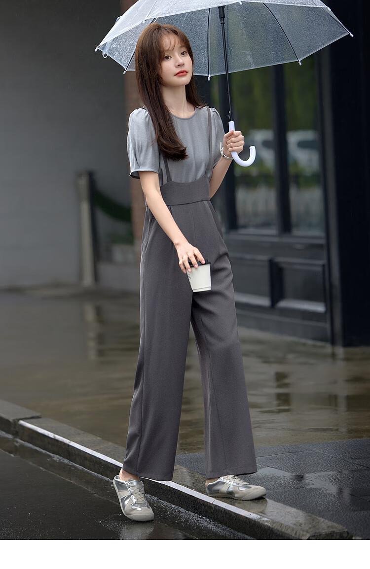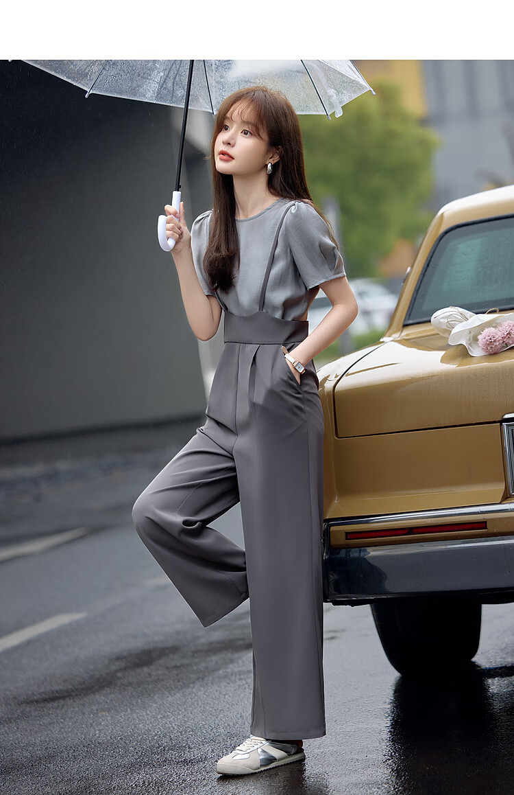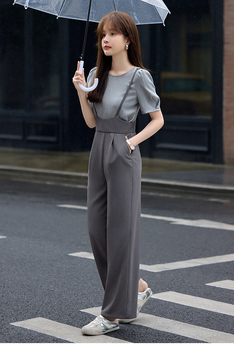 Mohan Yimei loose and slim overalls suit 2025 summer new short-sleeved tops and trousers adjustable women's suit medium gray + light gray 2XL
