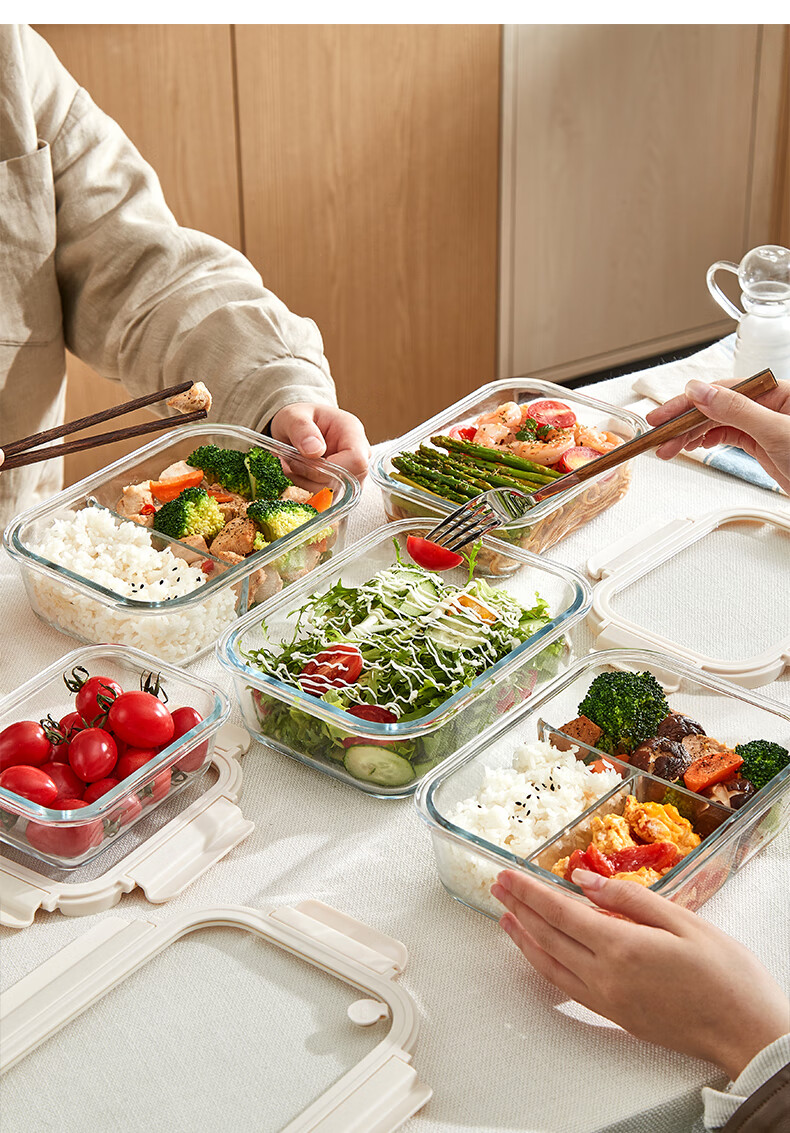 YWZR Subo glass lunch box microwave oven large capacity two-compartment office workers sealed lunch box fruit - no compartments *6630ml
