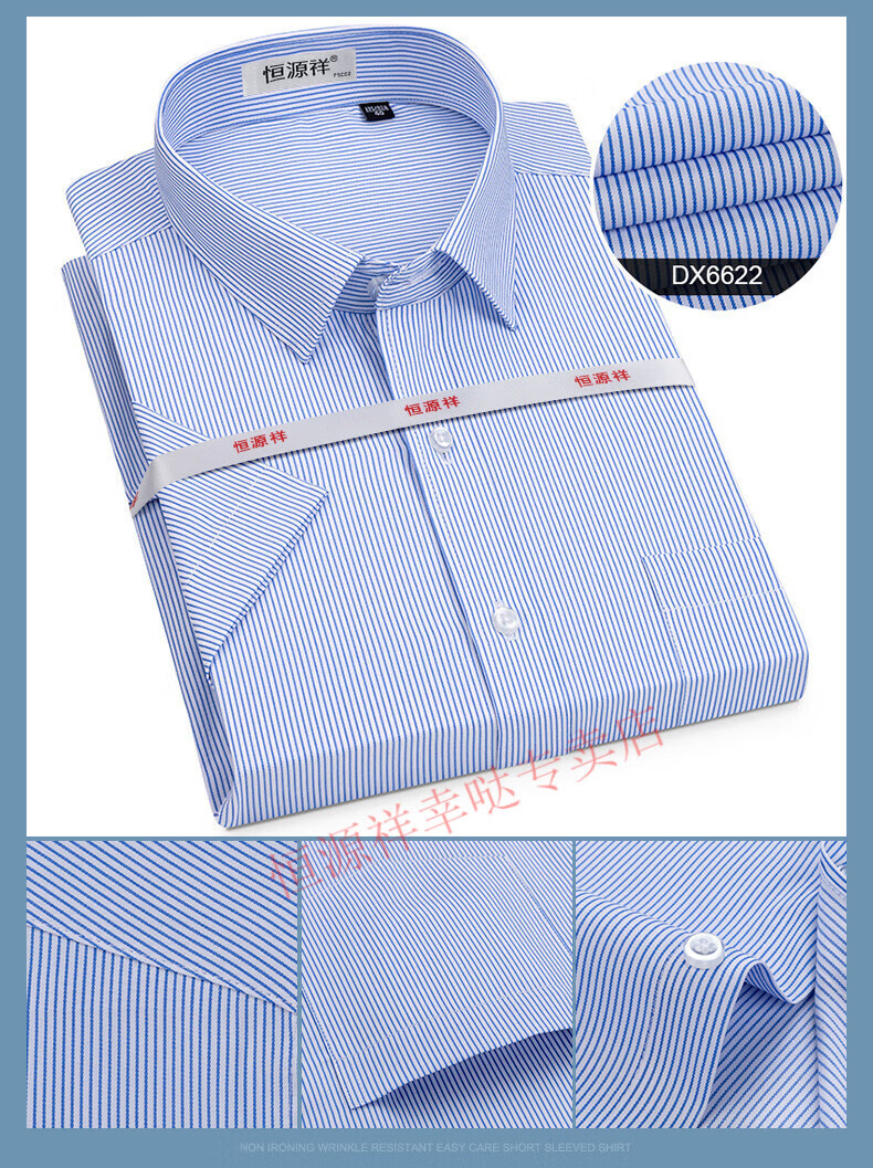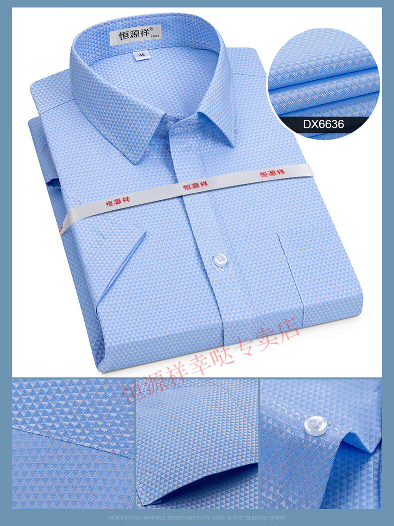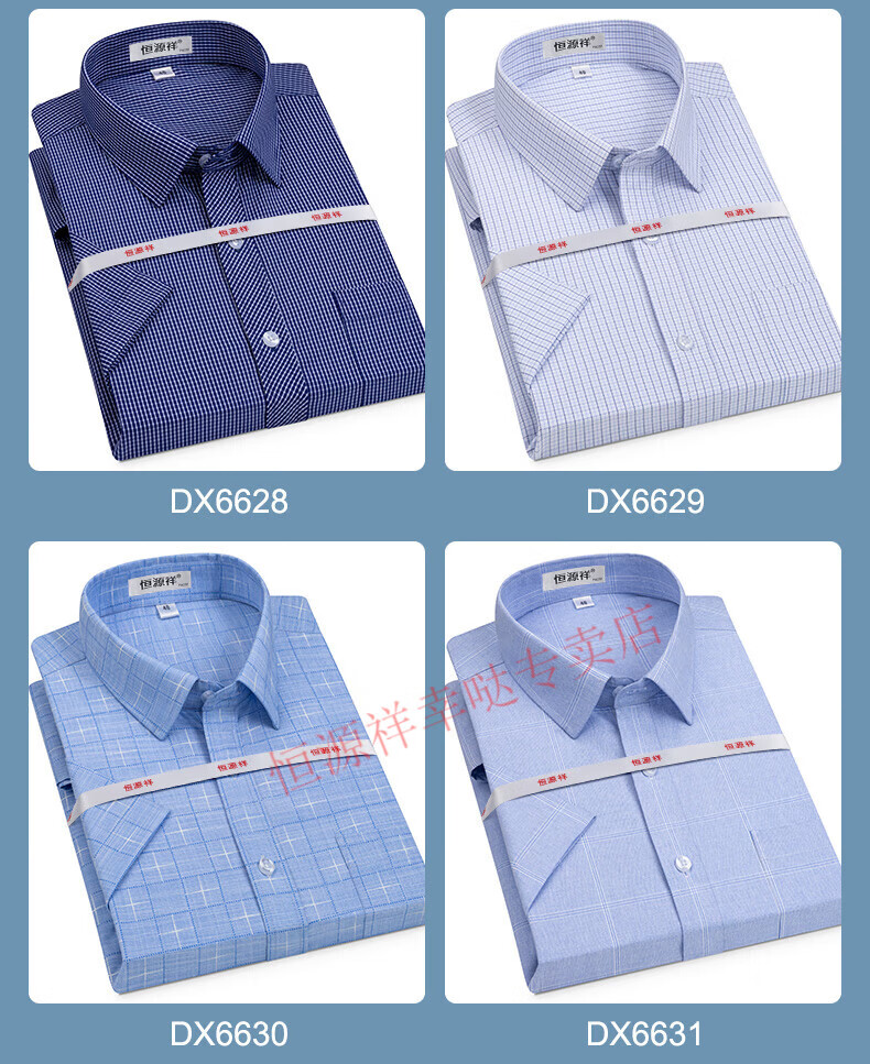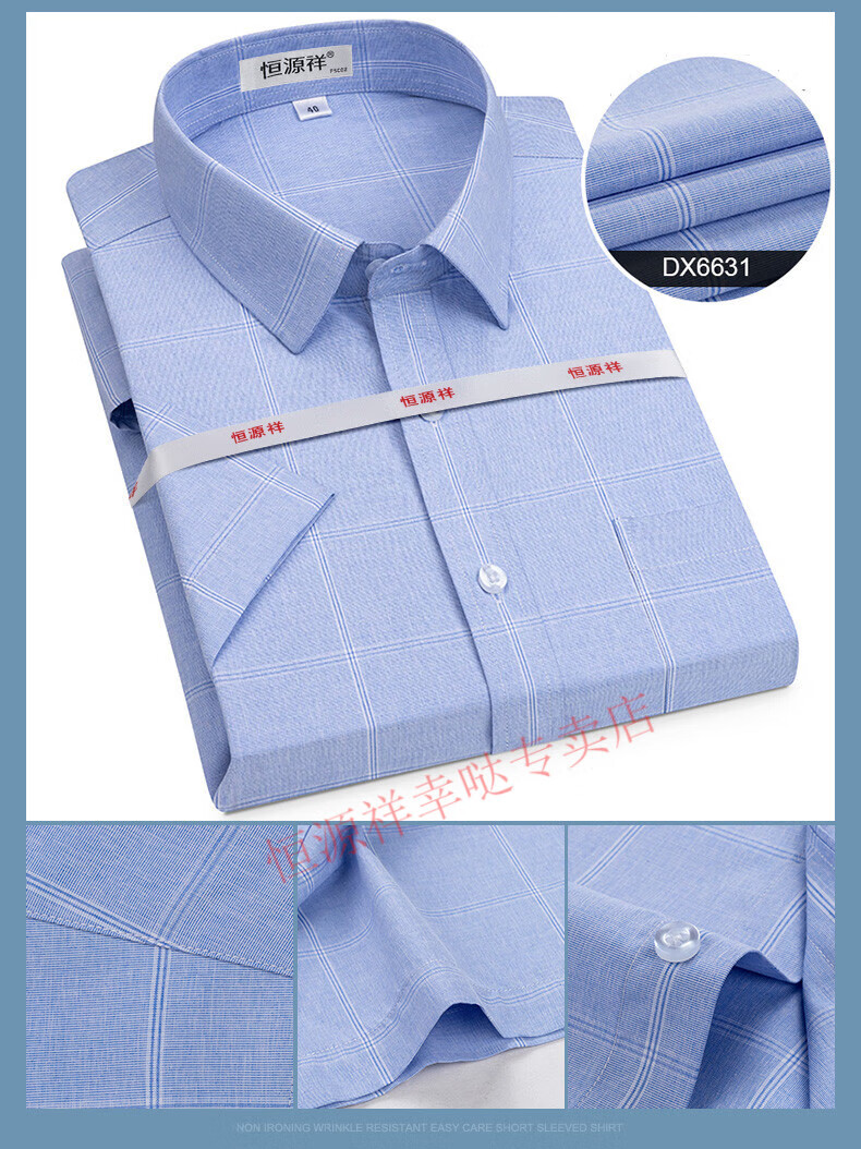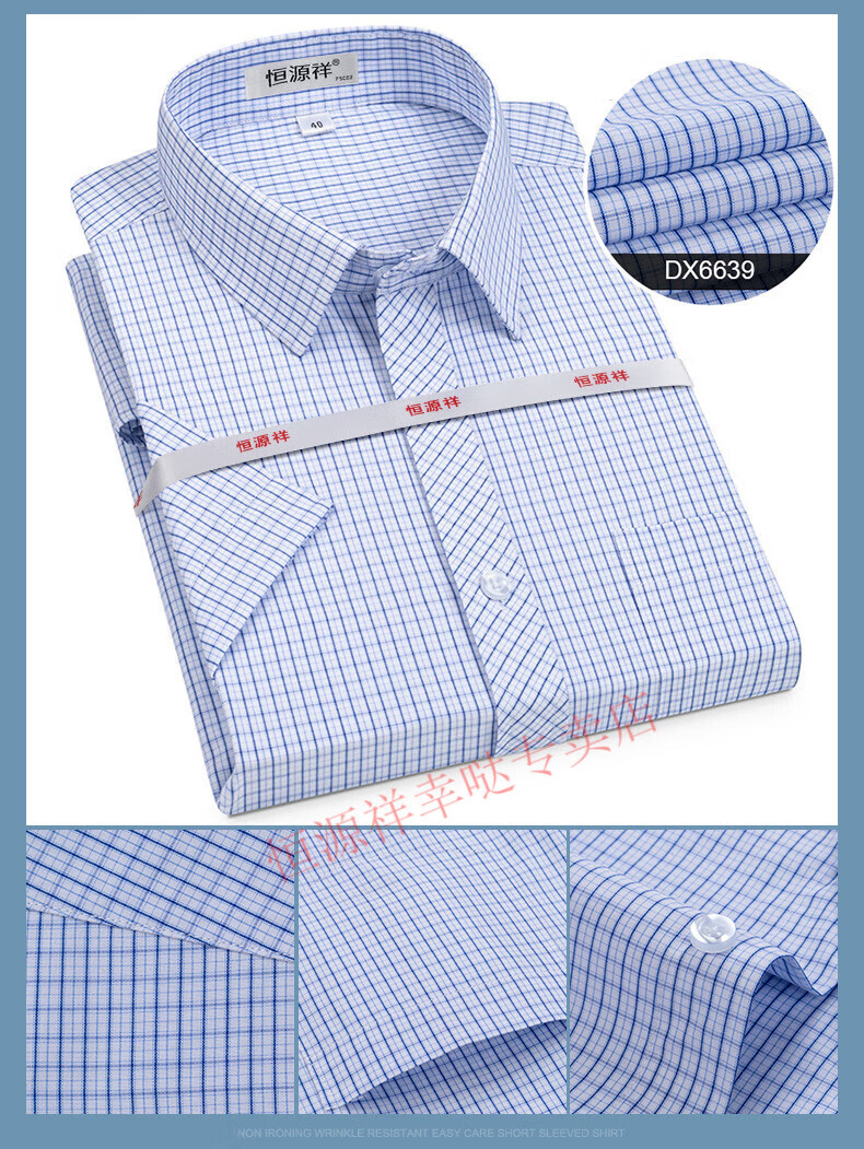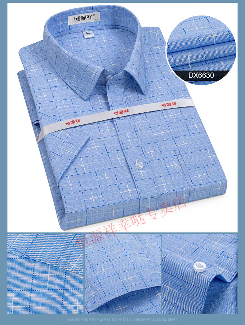 恒源祥短袖衬衫男25夏季新薄款条纹中年商务正装格子免烫休闲纯.棉衬衣 短 袖 隐格 蓝色 DX6629款 44 【建议180-195斤】