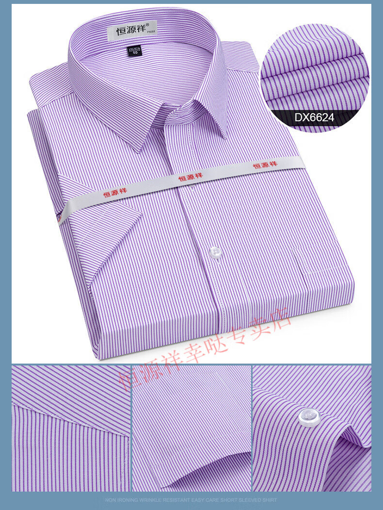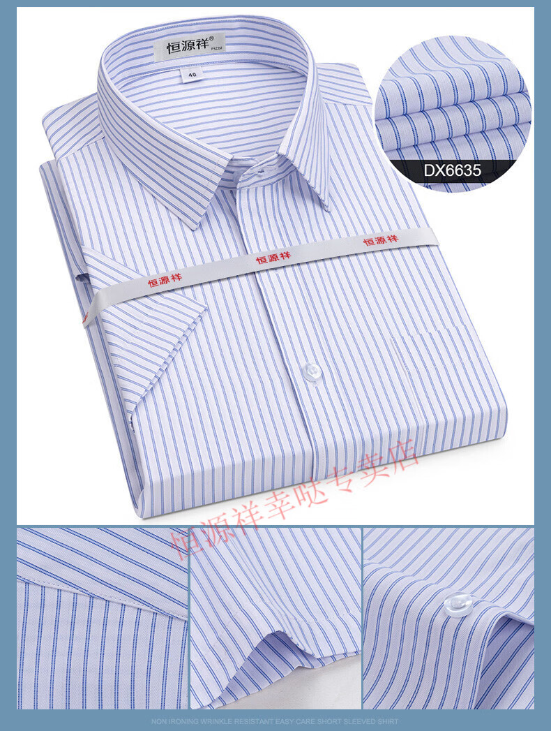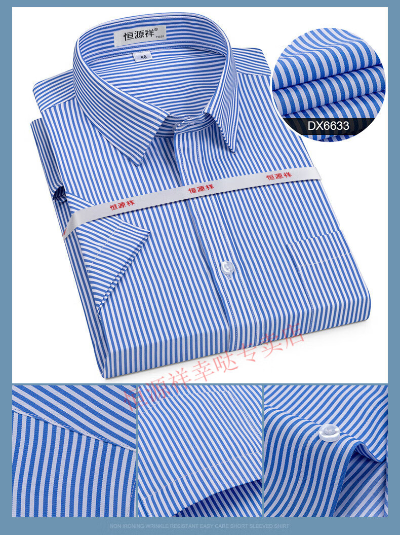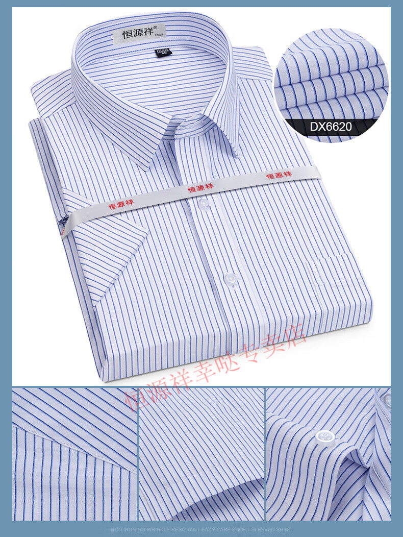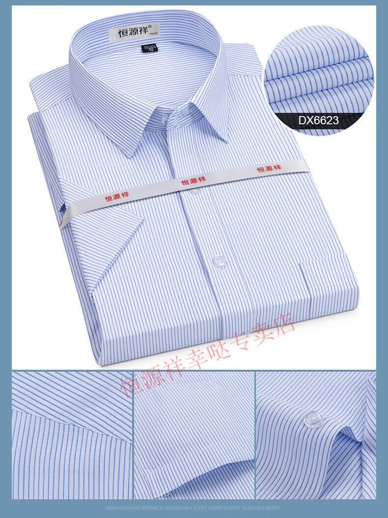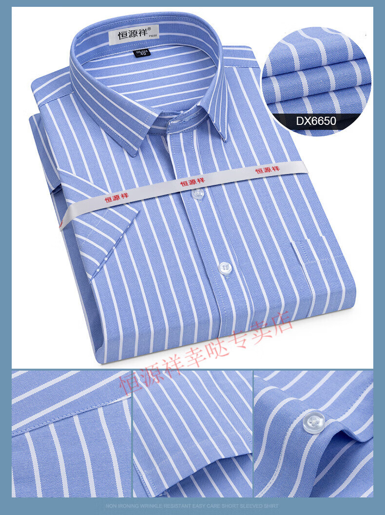 恒源祥短袖衬衫男25夏季新薄款条纹中年商务正装格子免烫休闲纯.棉衬衣 短 袖 隐格 蓝色 DX6629款 44 【建议180-195斤】