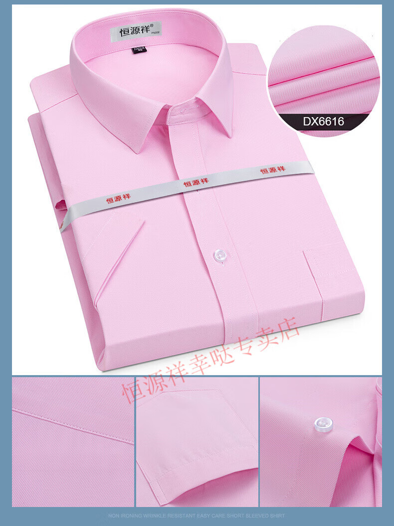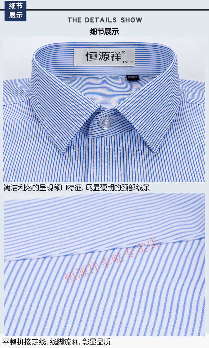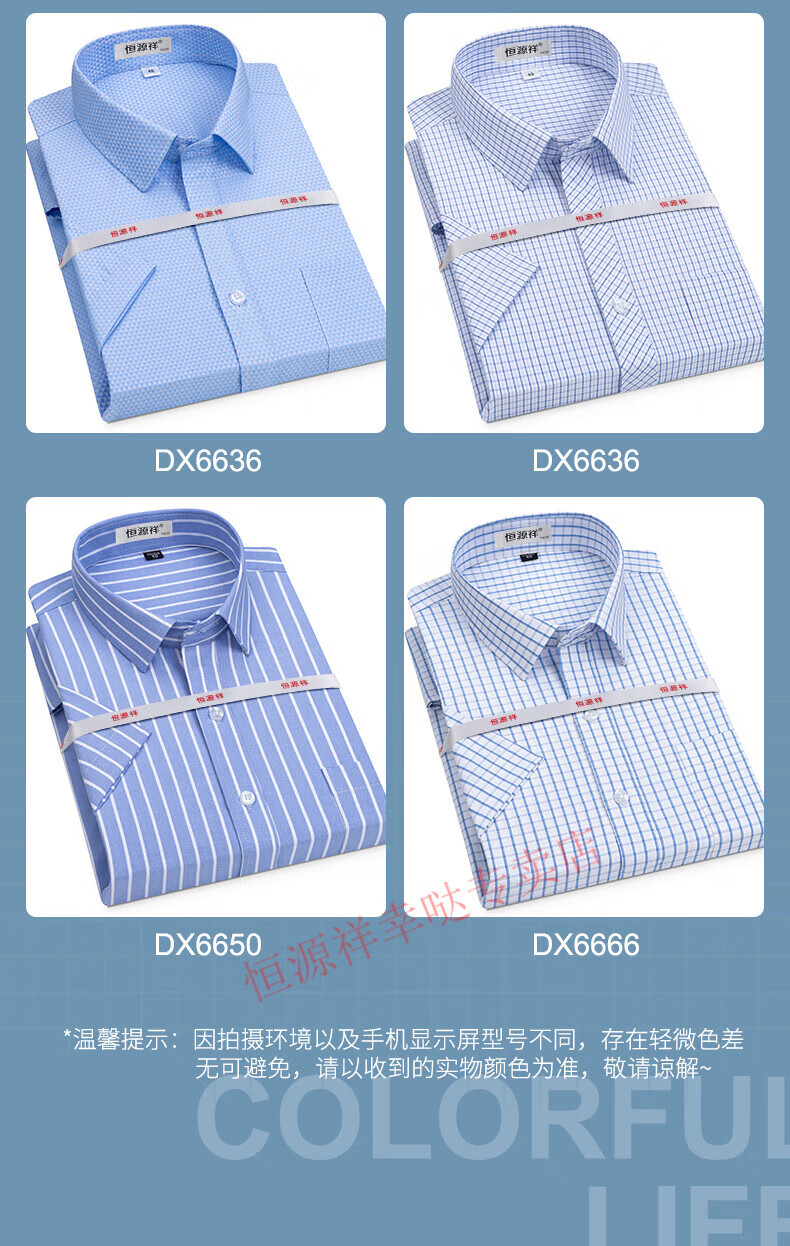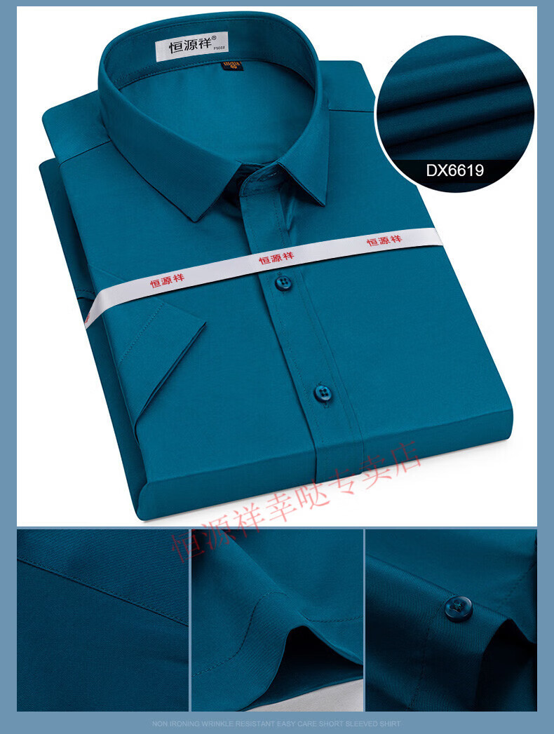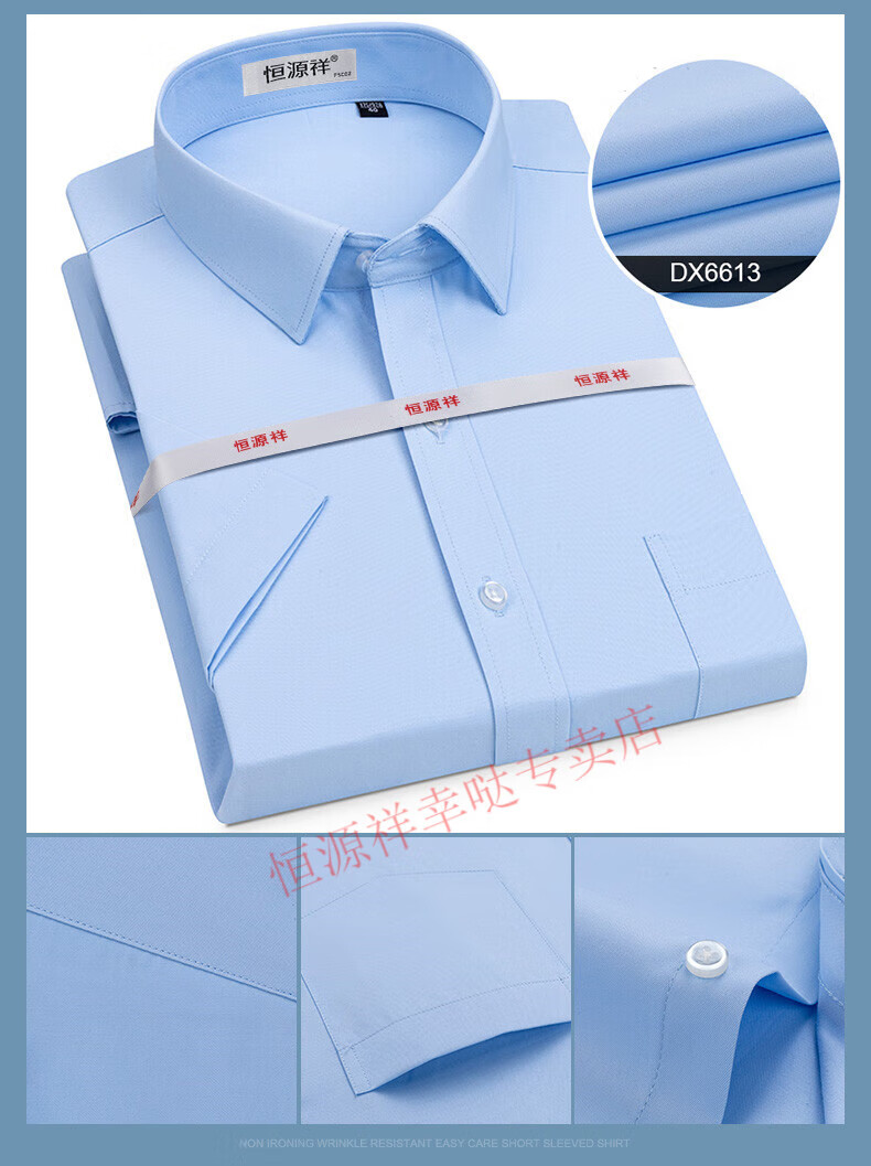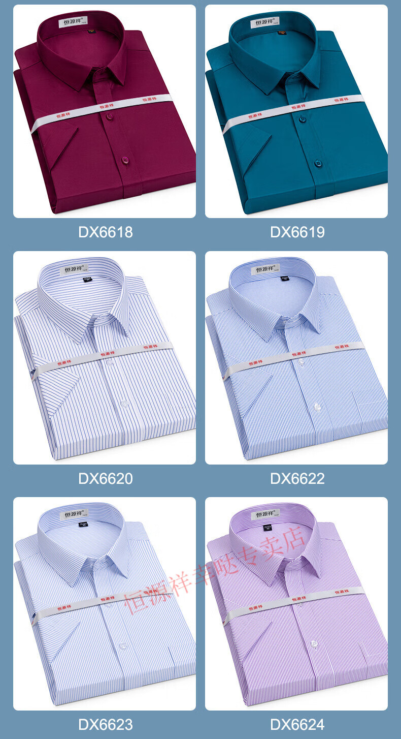 恒源祥短袖衬衫男25夏季新薄款条纹中年商务正装格子免烫休闲纯.棉衬衣 短 袖 隐格 蓝色 DX6629款 44 【建议180-195斤】