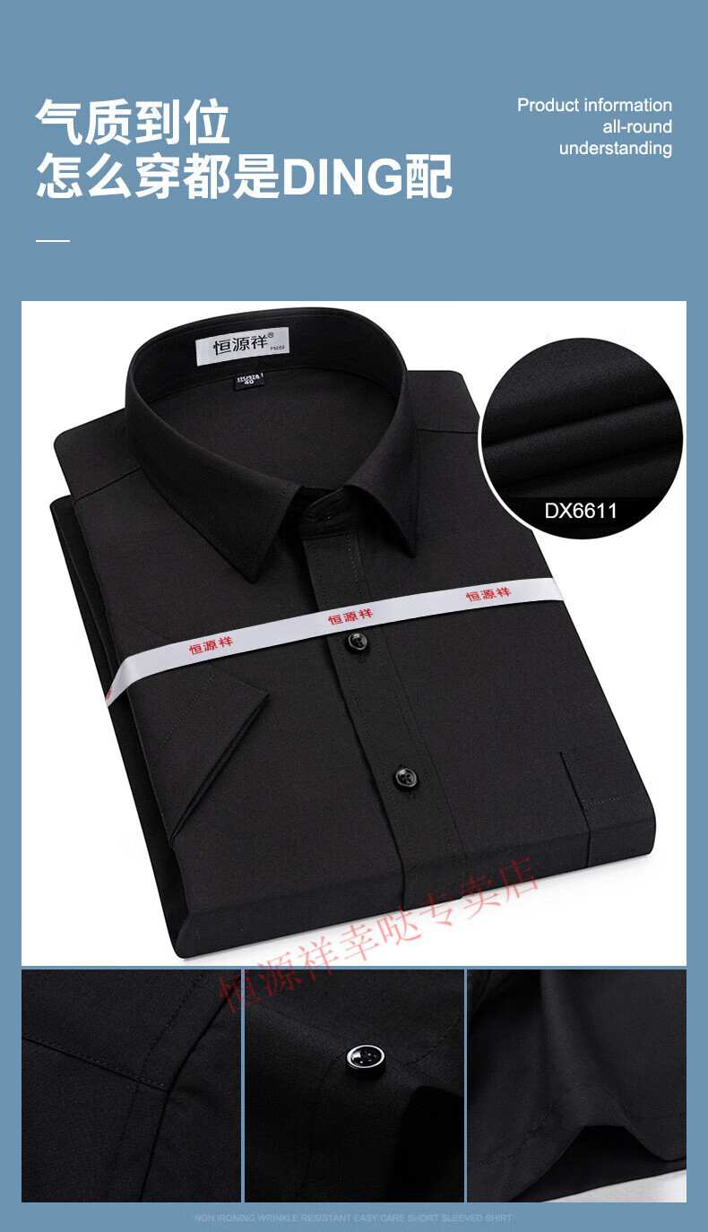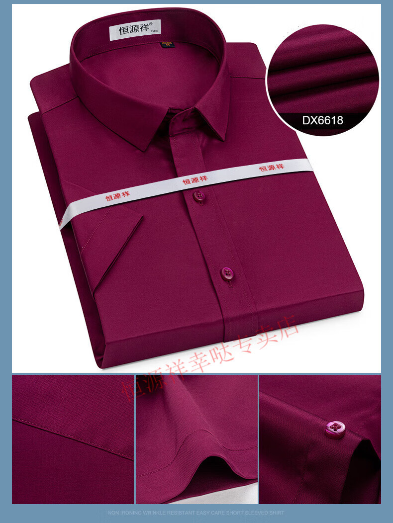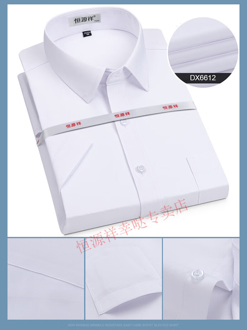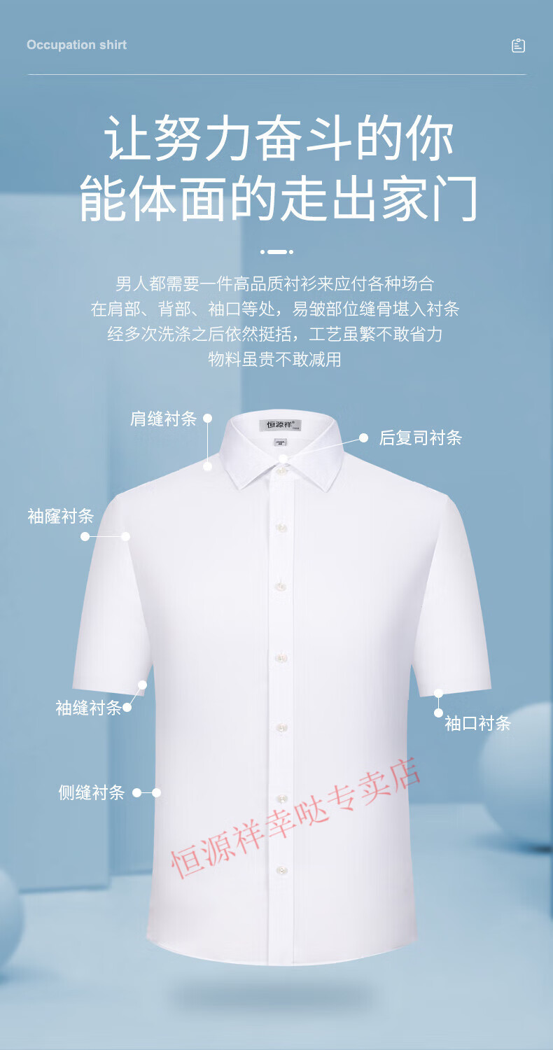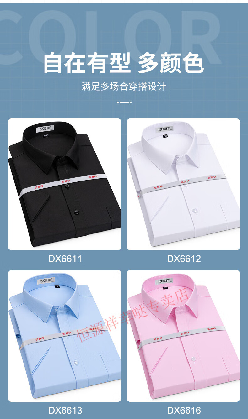 恒源祥短袖衬衫男25夏季新薄款条纹中年商务正装格子免烫休闲纯.棉衬衣 短 袖 隐格 蓝色 DX6629款 44 【建议180-195斤】