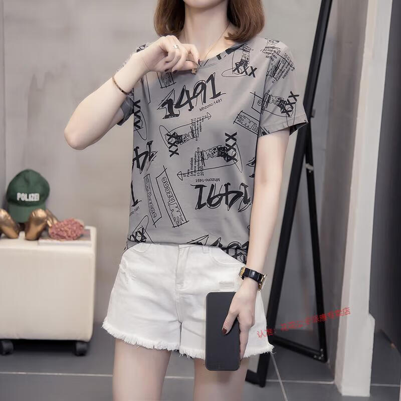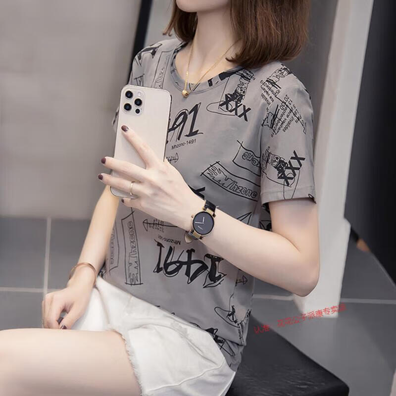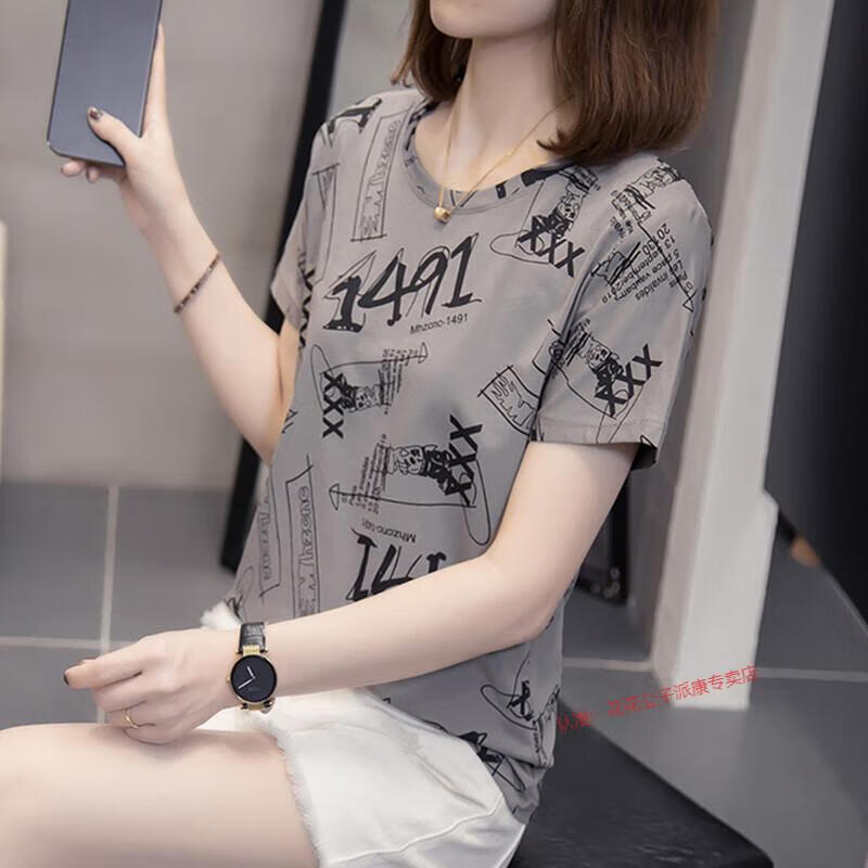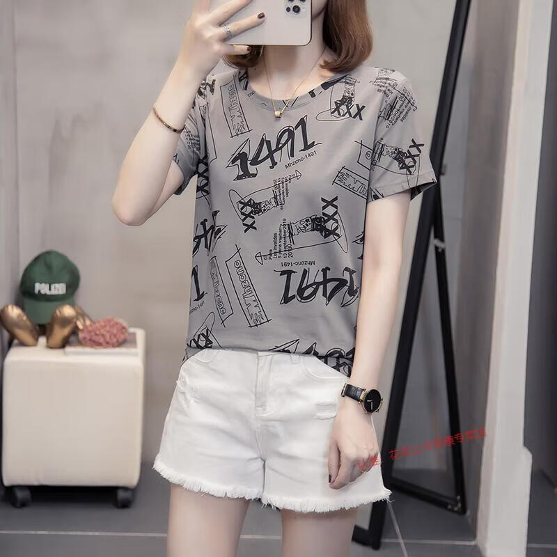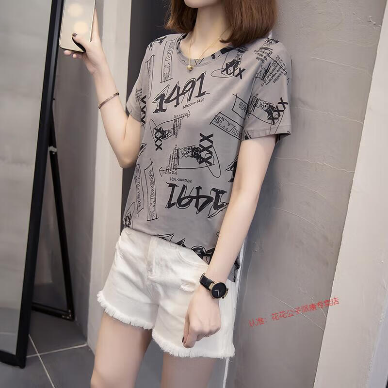 花花公子(PLAYBOY)2025夏装新款大码纯棉短袖t恤女韩版显瘦百搭休闲胖mm遮肚子上衣 6626桔色 L [90-120斤左右]