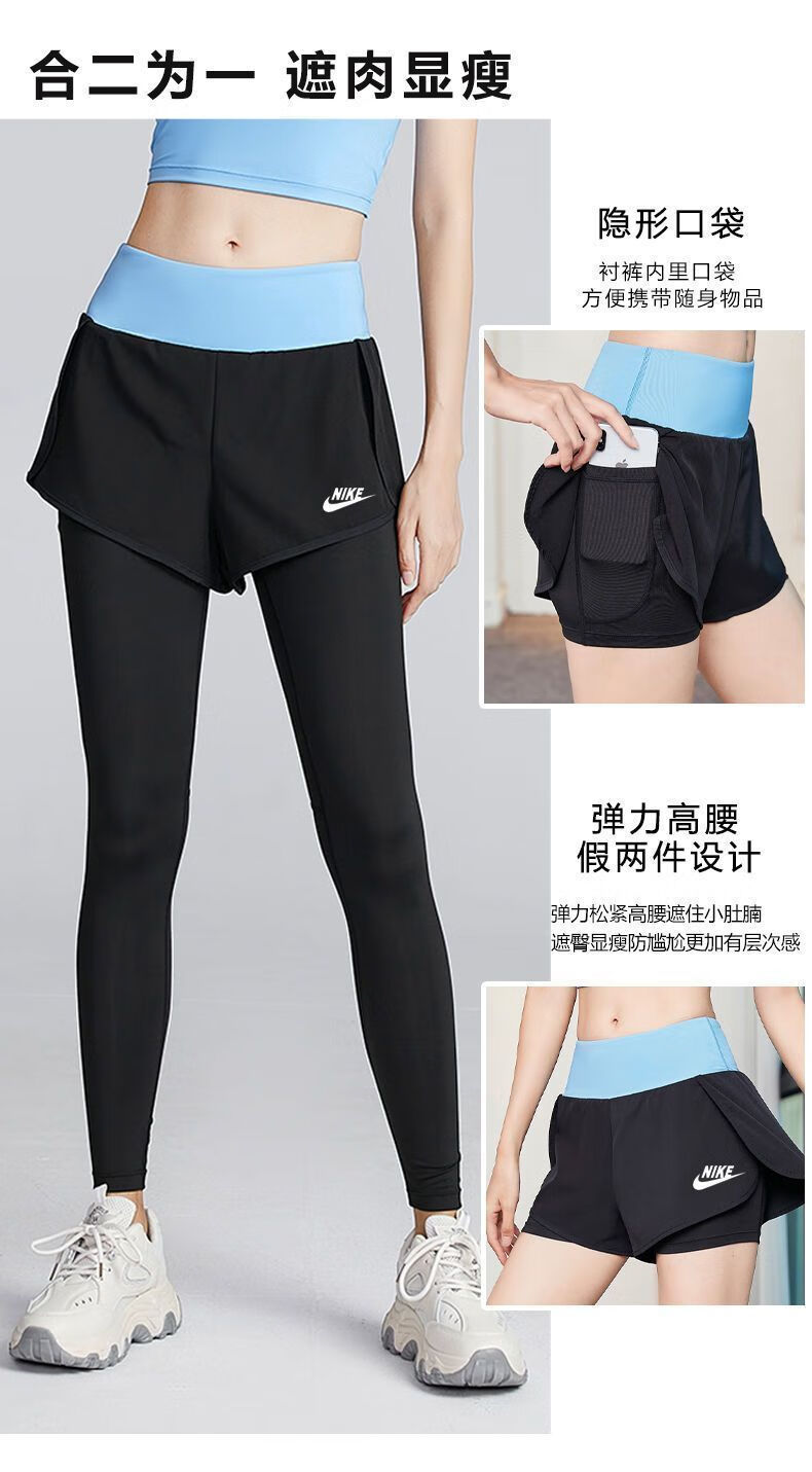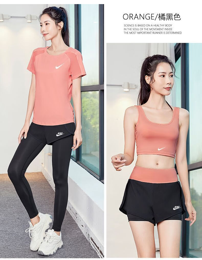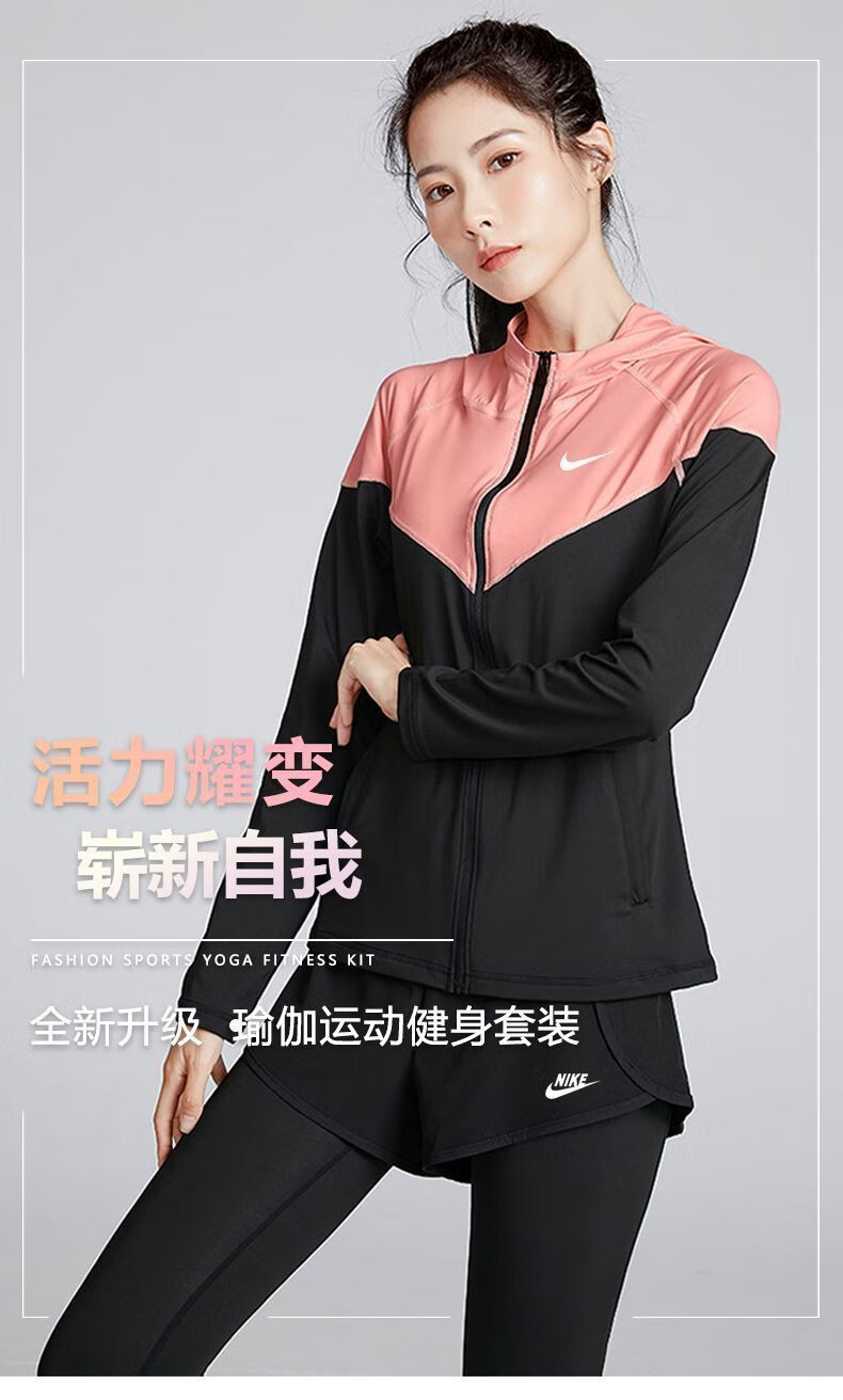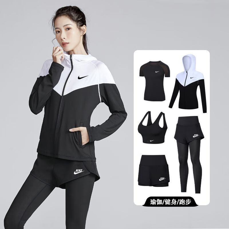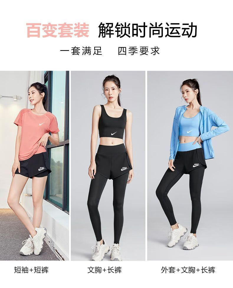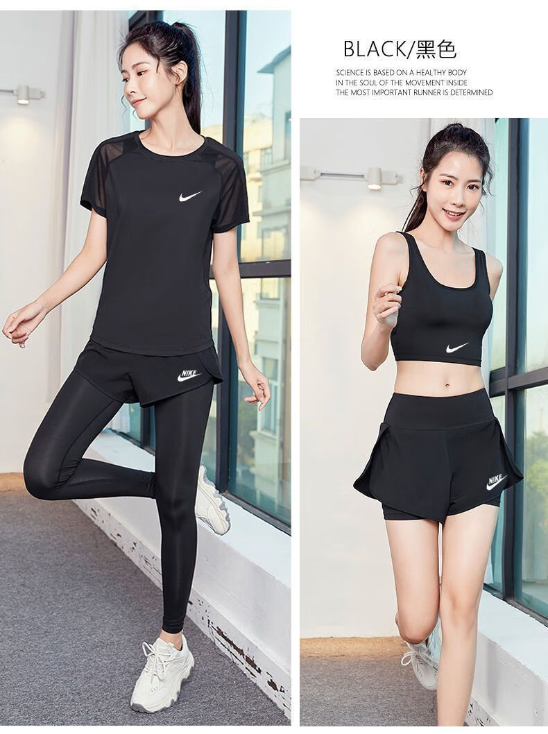 Nike (NIKE) 2025 New Yoga Wear Sports Suit Women's Slim Quick-Drying Tights Gym Sports Training Morning Running Clothing 20222 Two-piece Set Black M