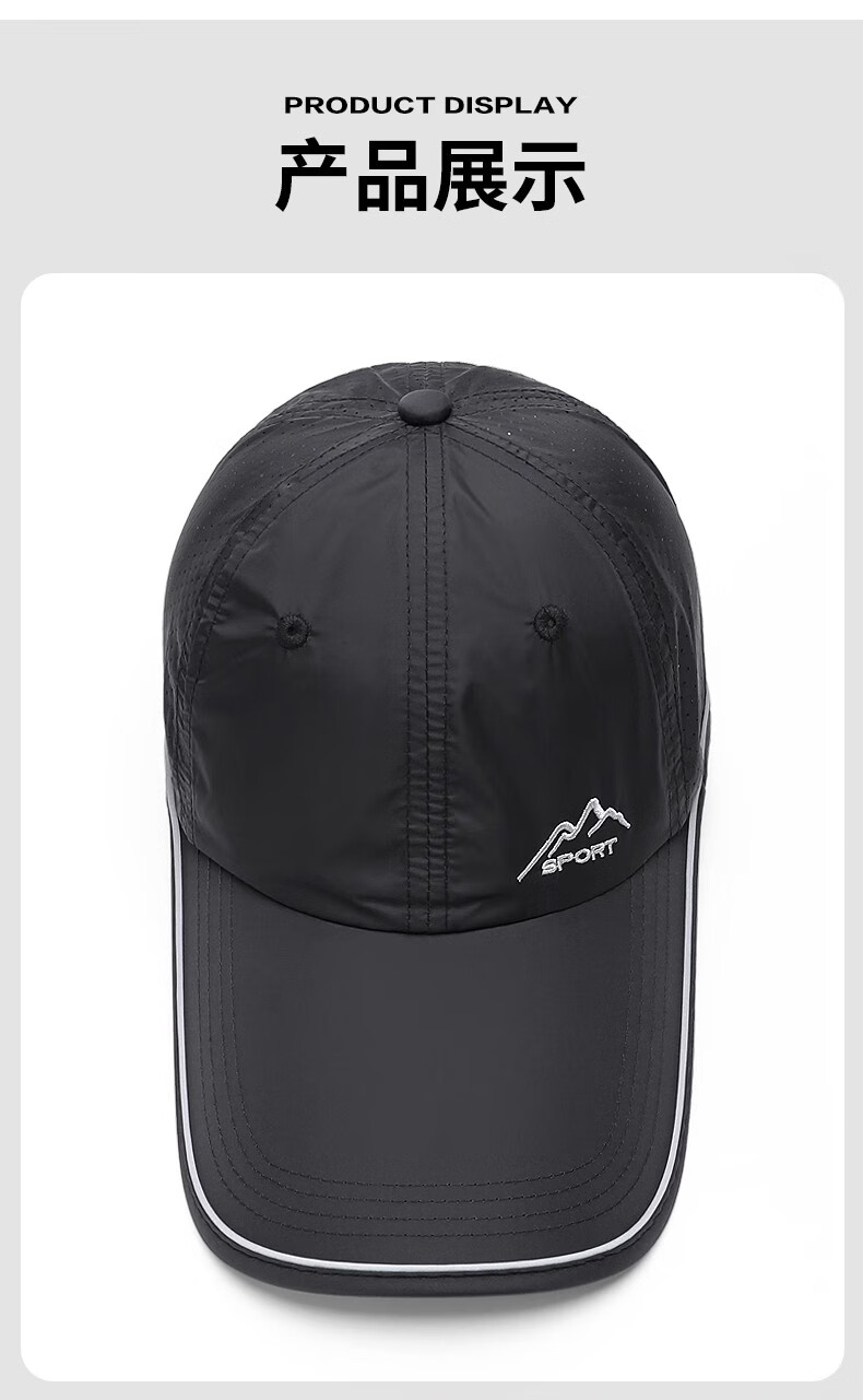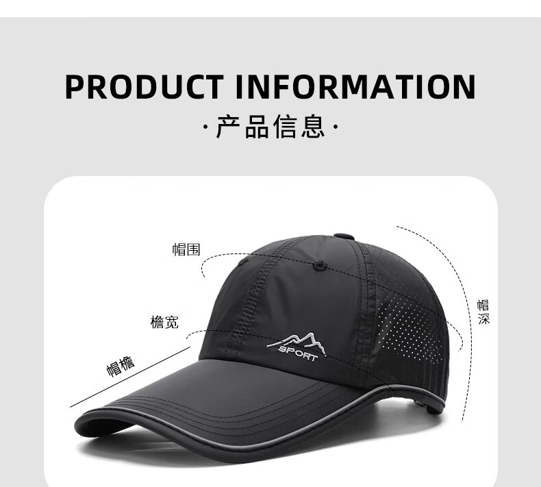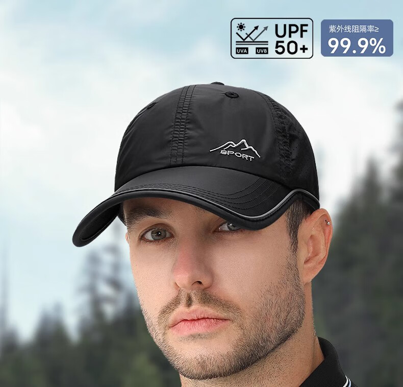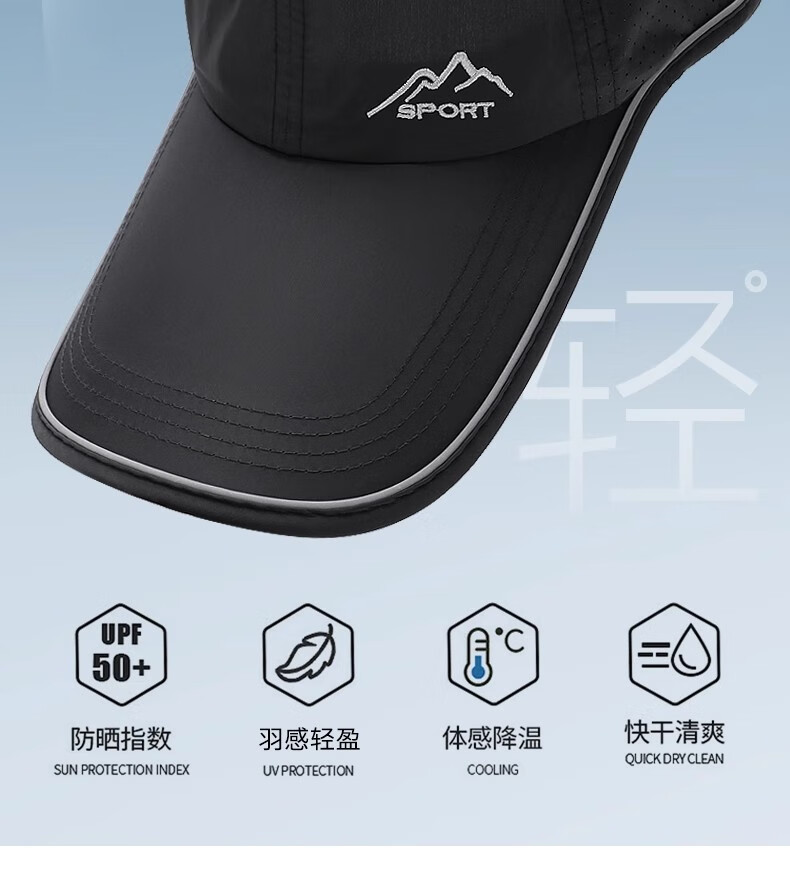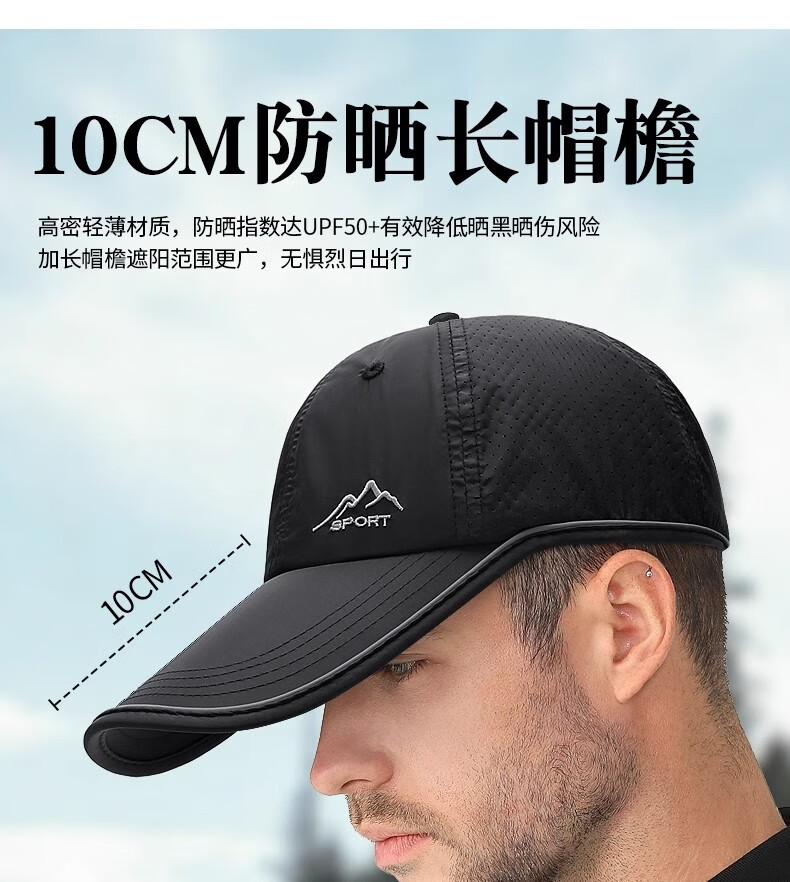 LSIAKT Herren Hut Sommer 2025 Neue Lange Krempe Schnell Trocknend Bergsteigen Atmungsaktive Mesh Hut Baseball Kappe Für Männer Schwarz M Einheitsgröße (55-60c)