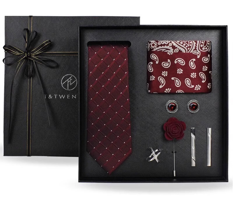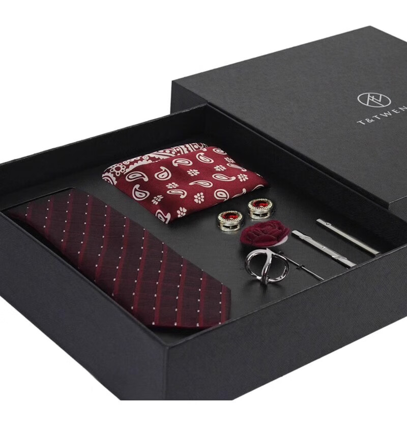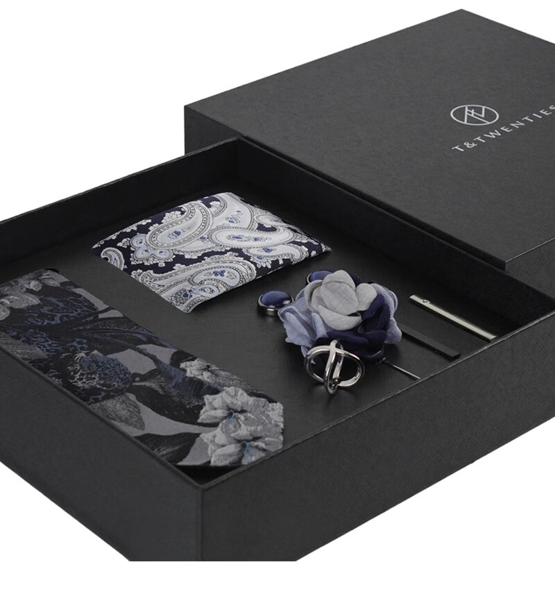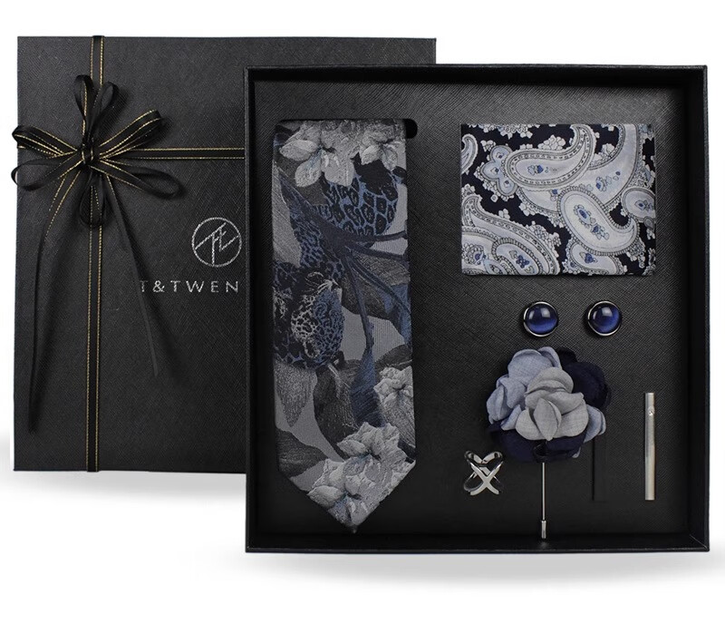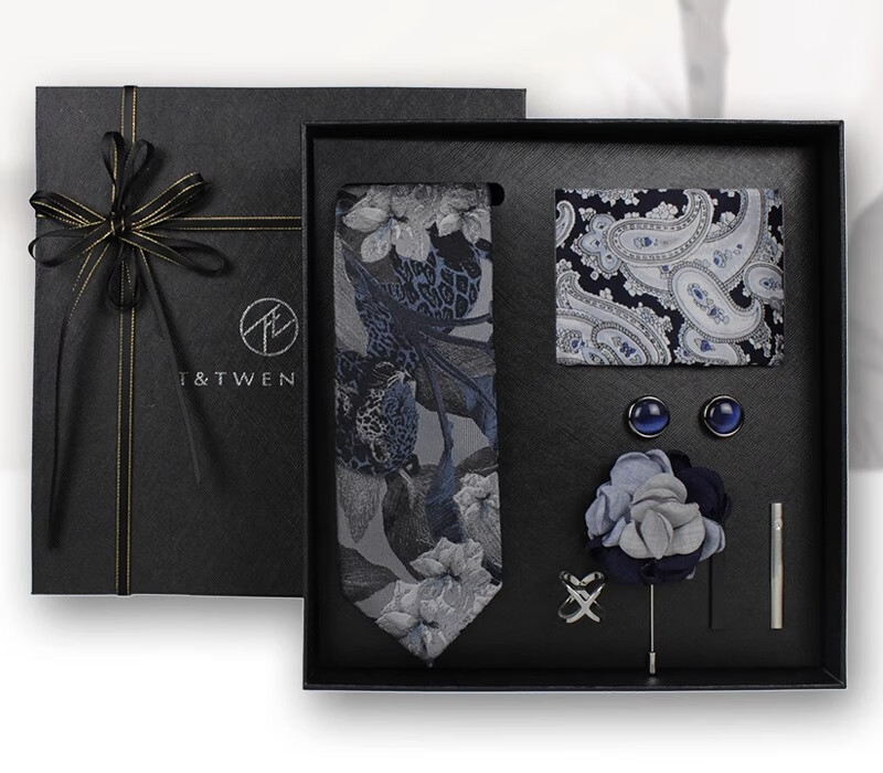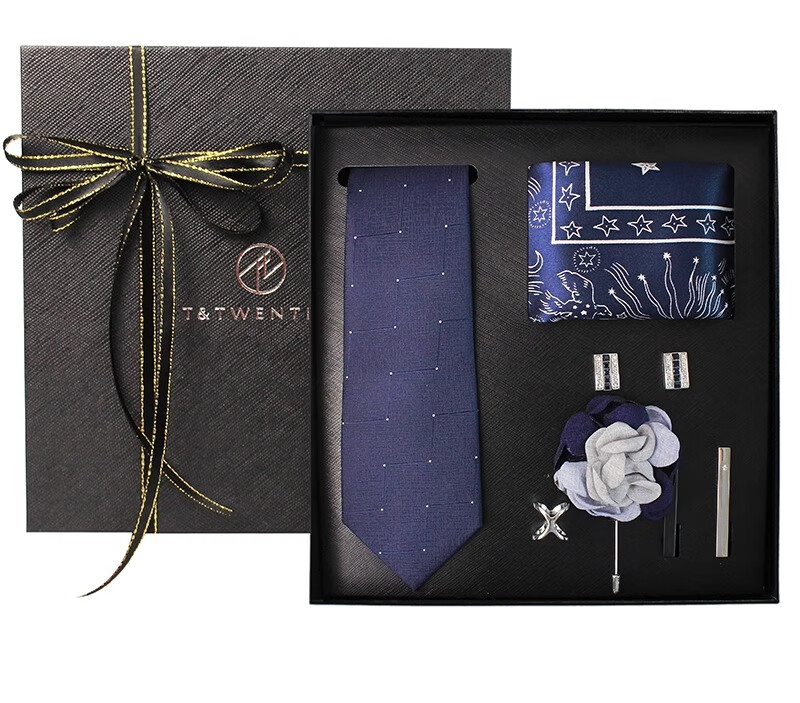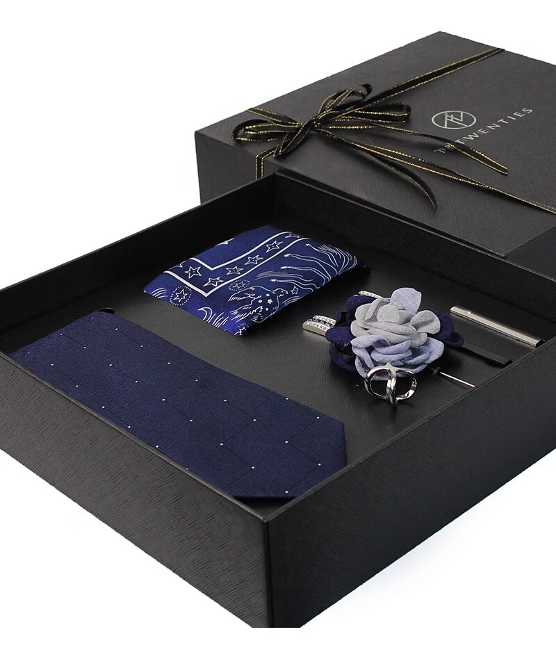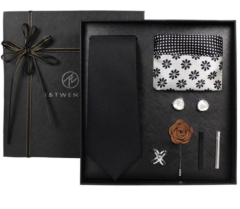 T&Twenties真丝领带桑蚕丝丝巾实用商务礼盒男士配饰套装生日520情人节礼物 魔法黑森林-七件穿搭大礼盒