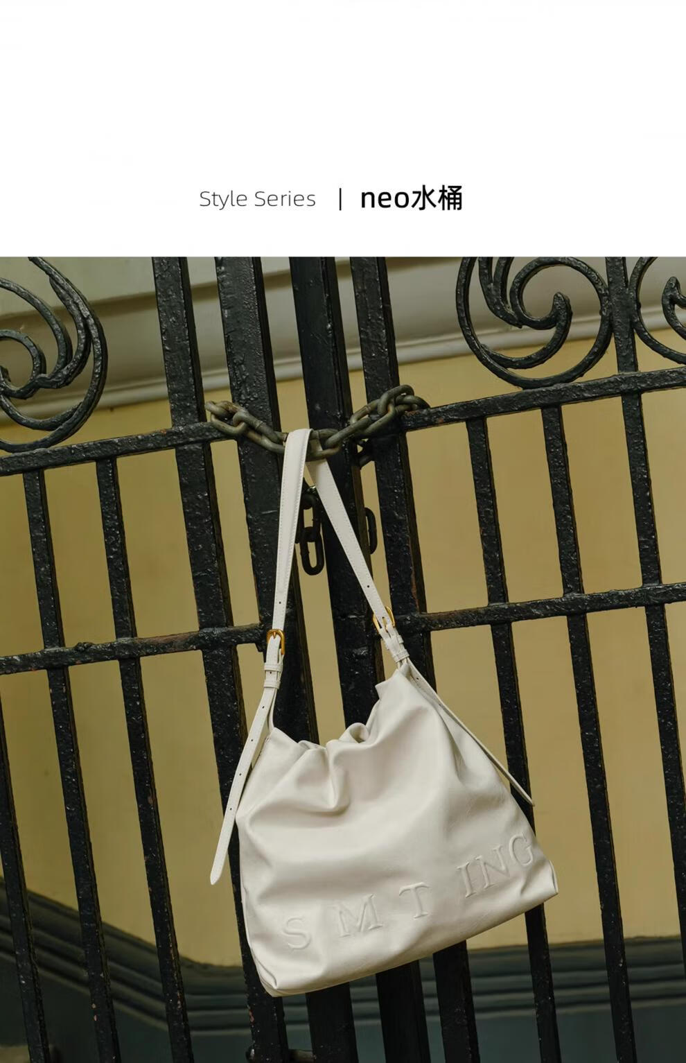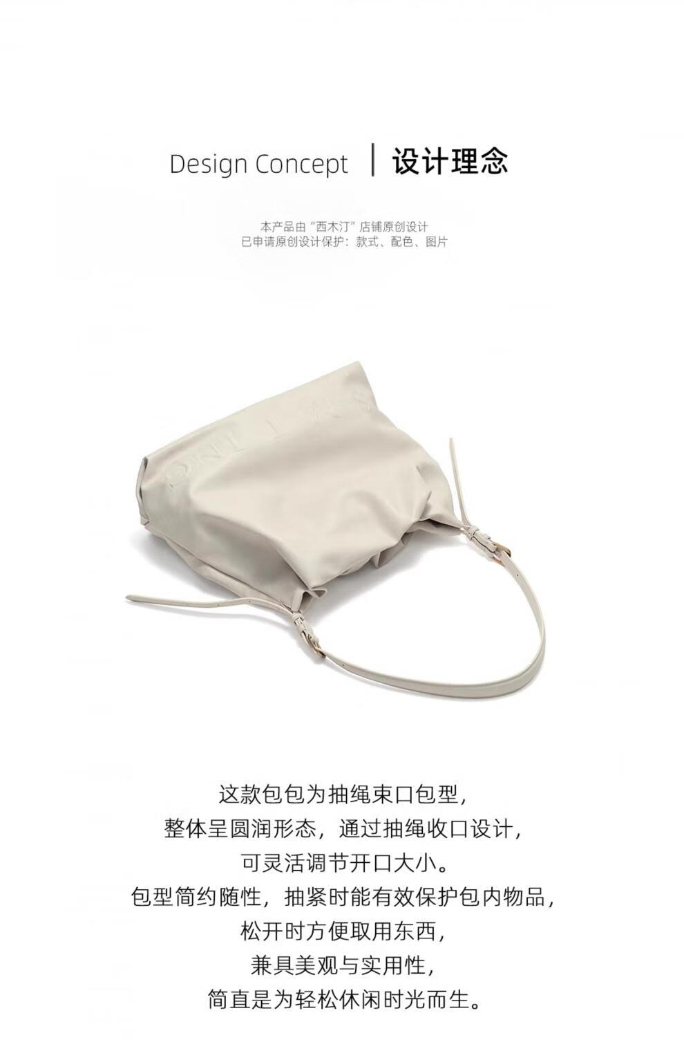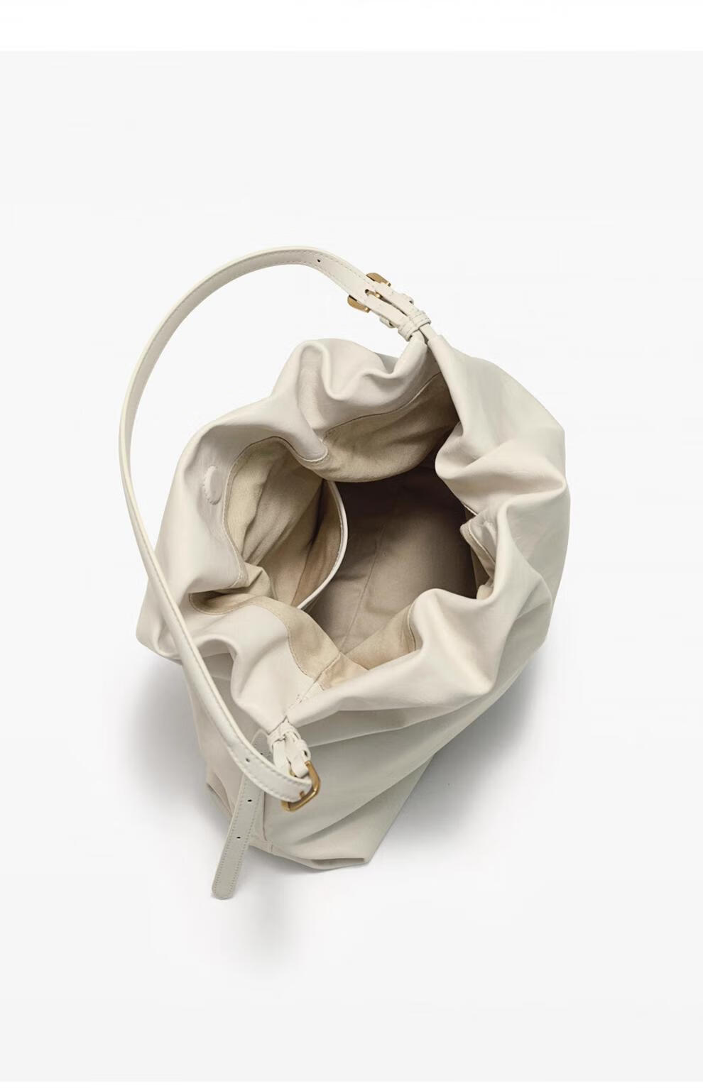 Ximuting Ximuting Chapter Sac seau blanc Nouveau sac à aisselles exquis pour femme Petit sac à bandoulière à bandoulière unique Blanc cassé_Cuir de vache