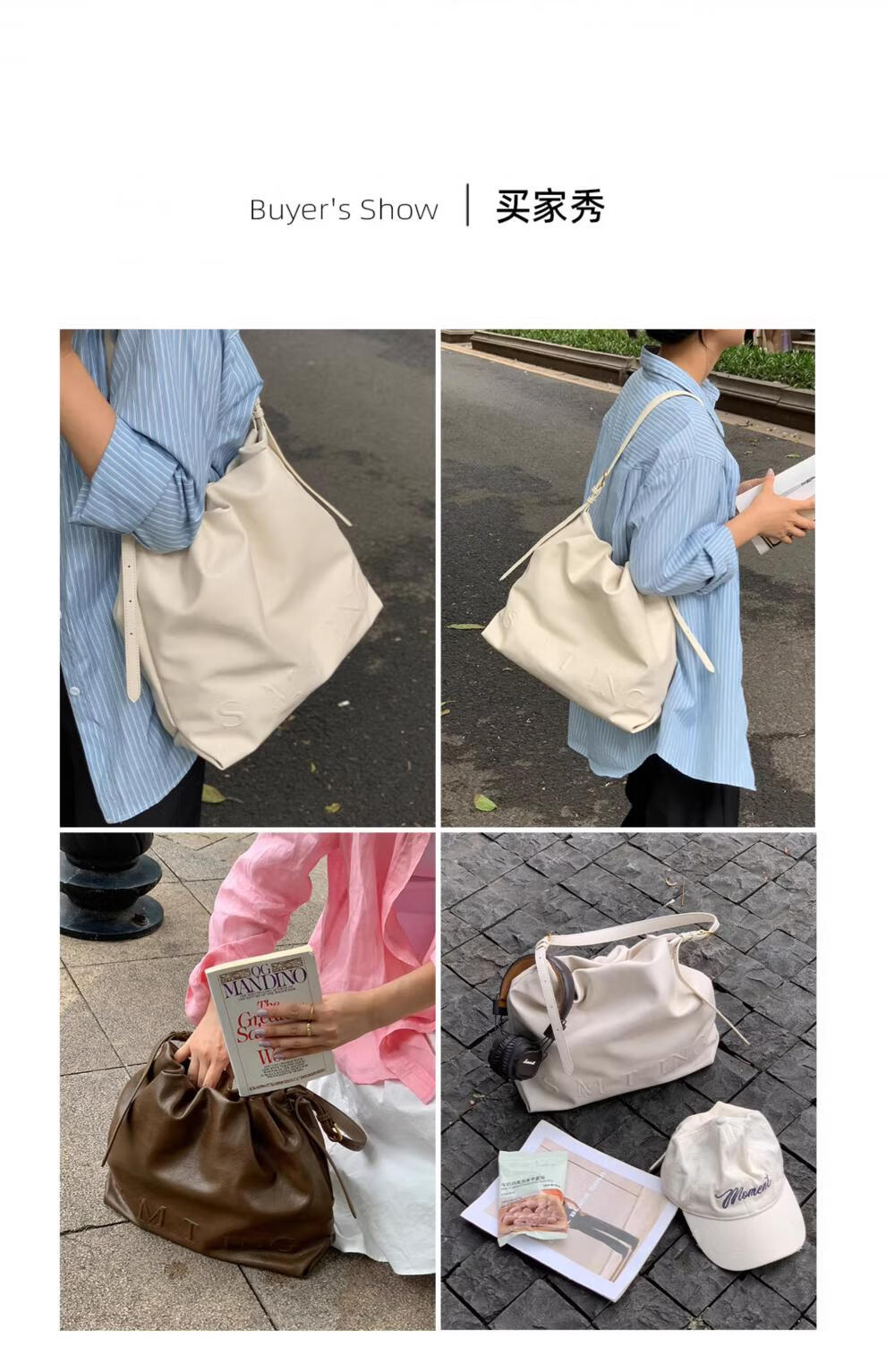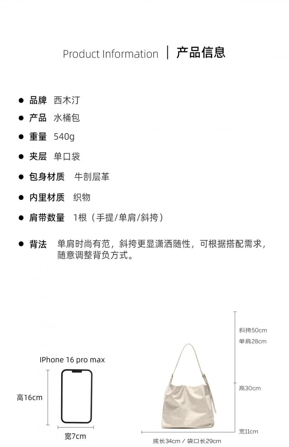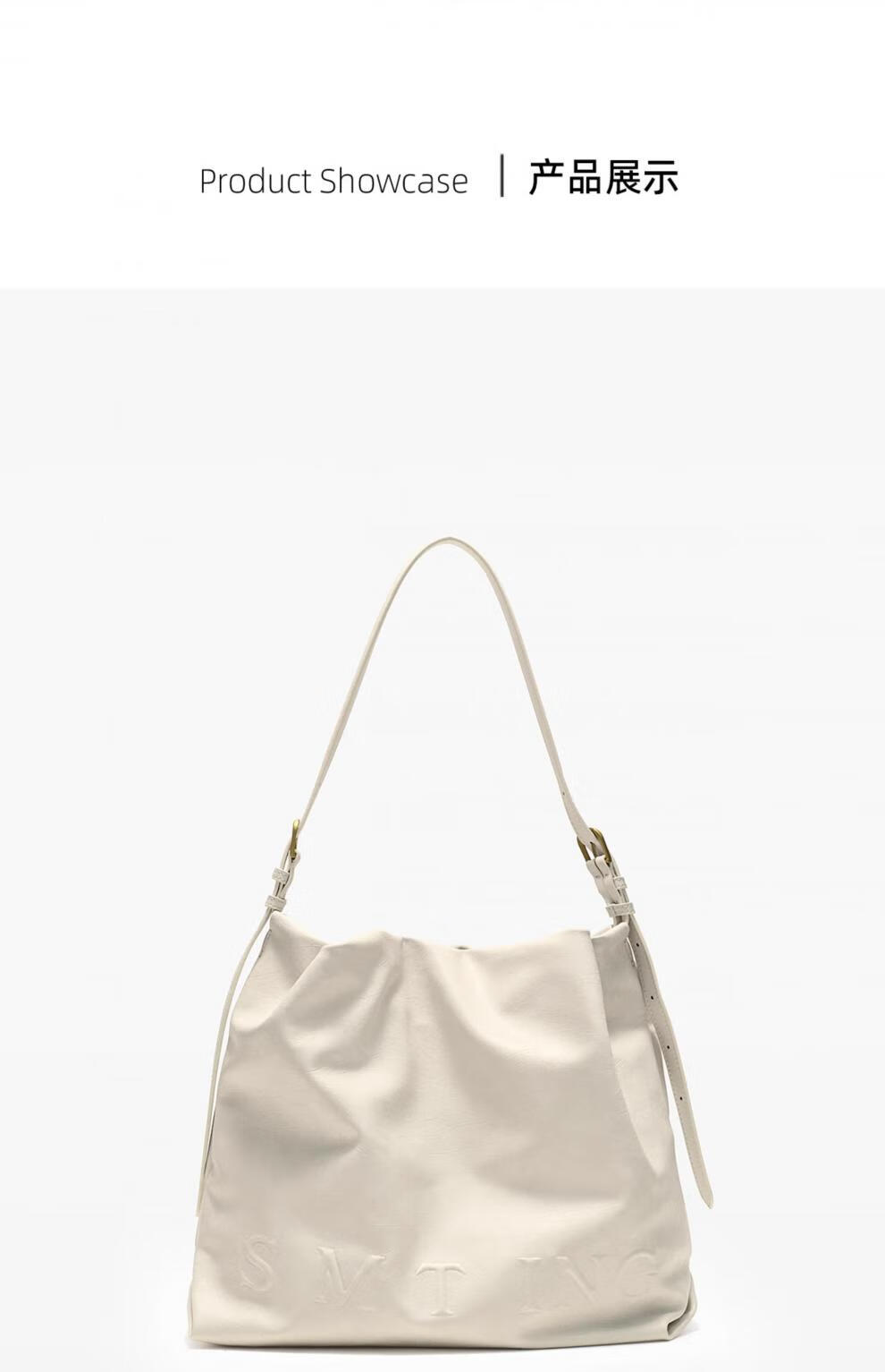 Ximuting Ximuting Chapter Sac seau blanc Nouveau sac à aisselles exquis pour femme Petit sac à bandoulière à bandoulière unique Blanc cassé_Cuir de vache