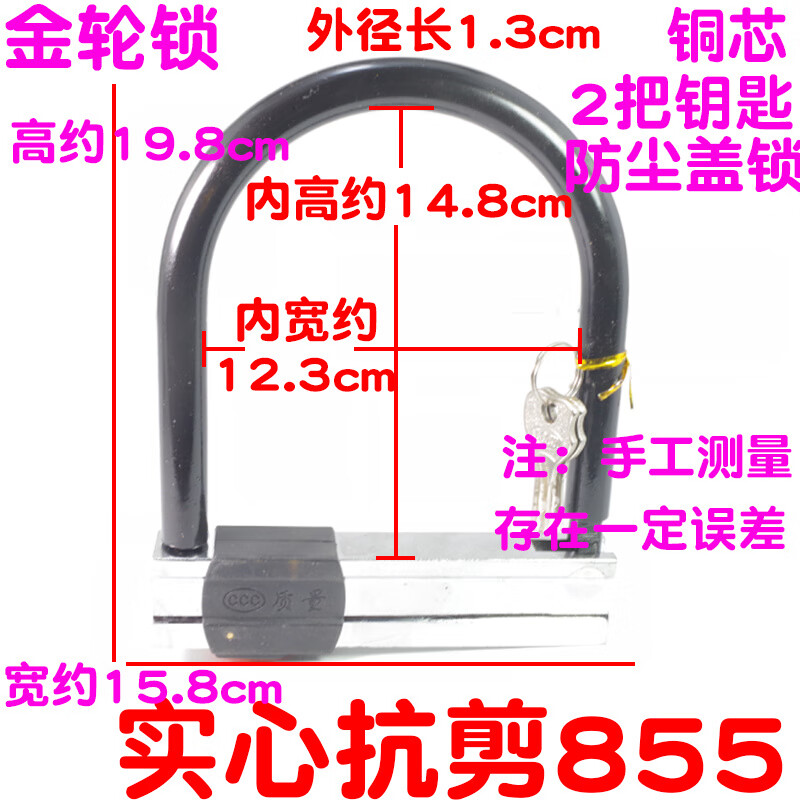 Electric car lock C-class motorcycle lock bicycle lock tricycle lock battery car U-shaped lock anti-theft lock anti-hydraulic shear solid shear-resistant 693 dust cover 2 blade keys