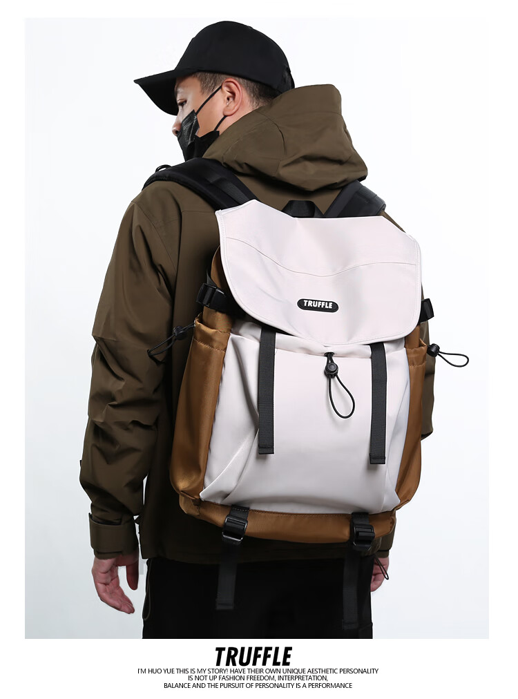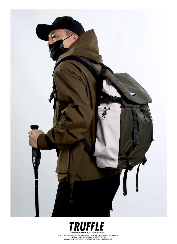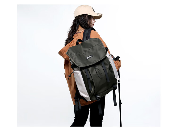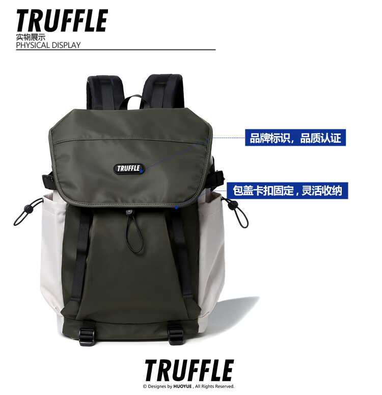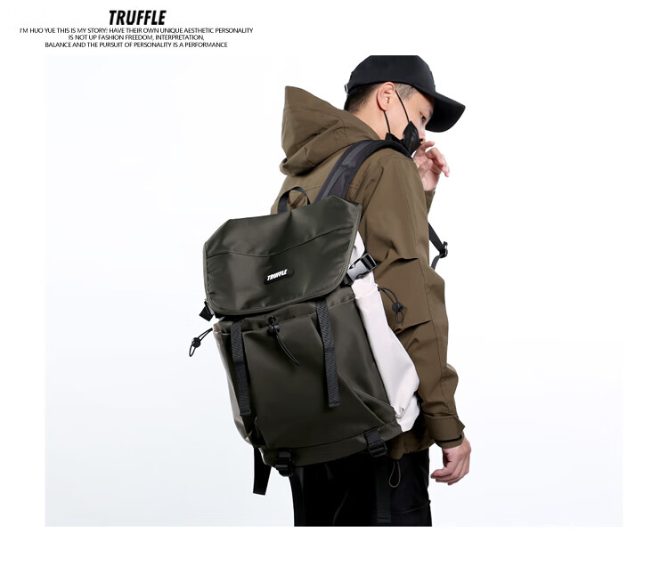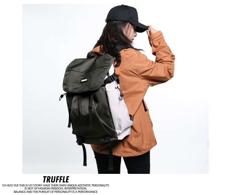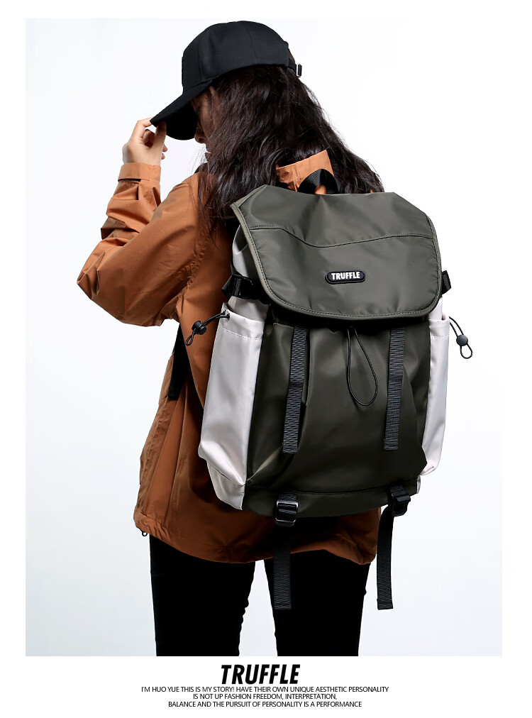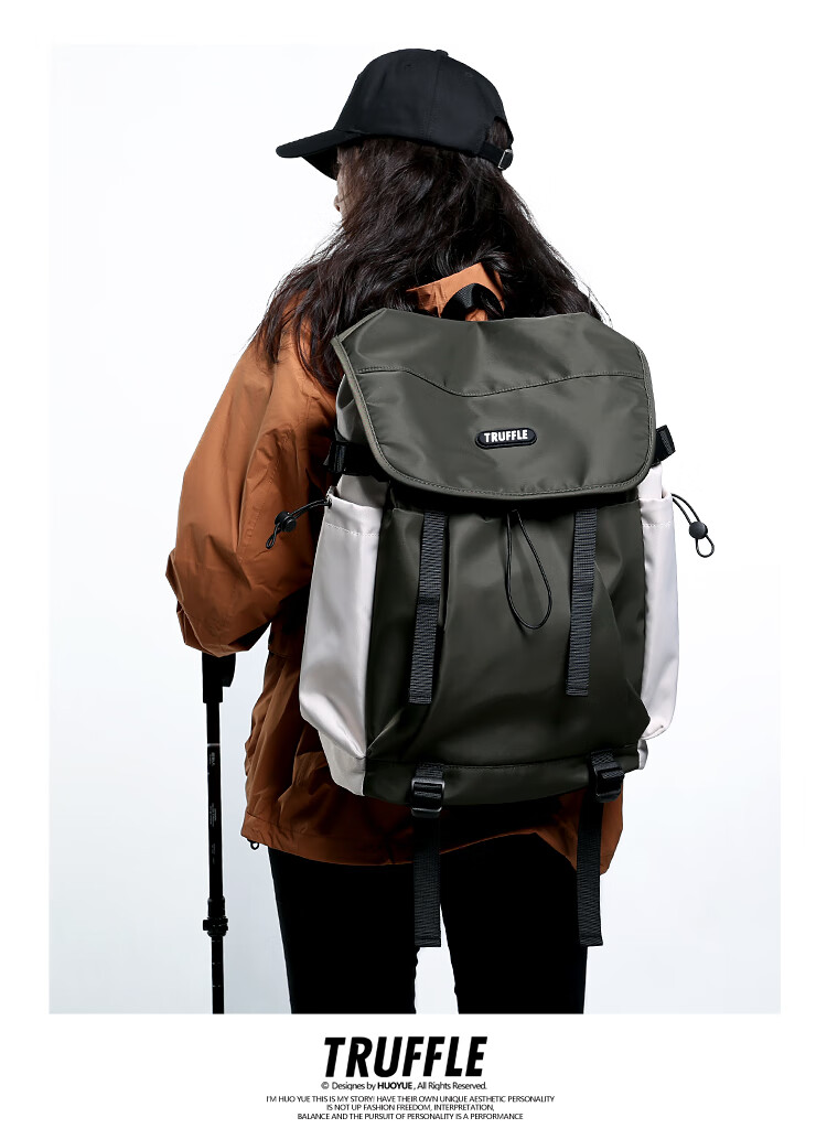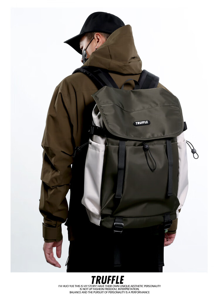 TRUFFLE casual travel backpack men's junior high school bag large capacity college student female backpack light outdoor DSG-military green with beige and gray