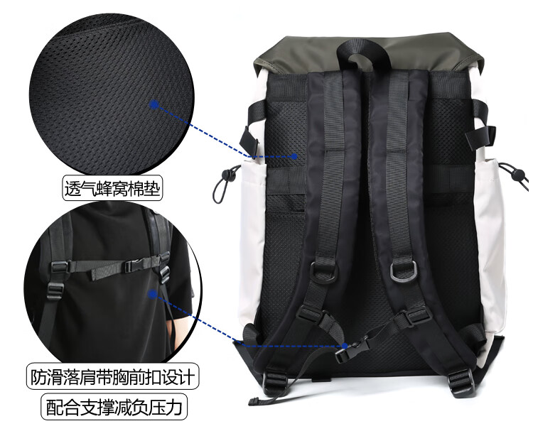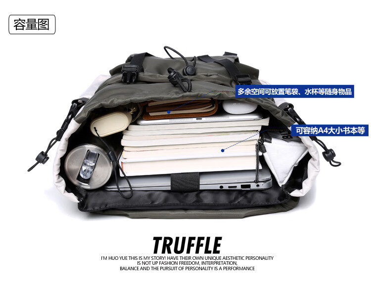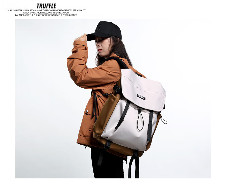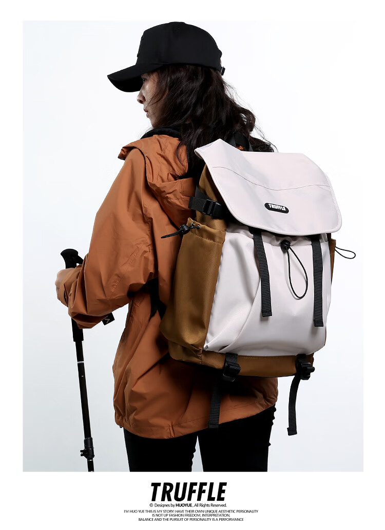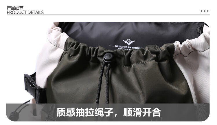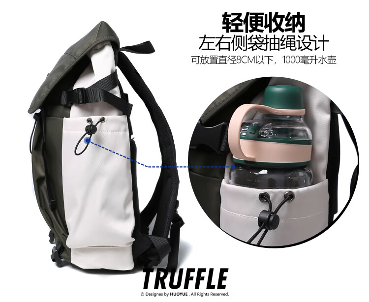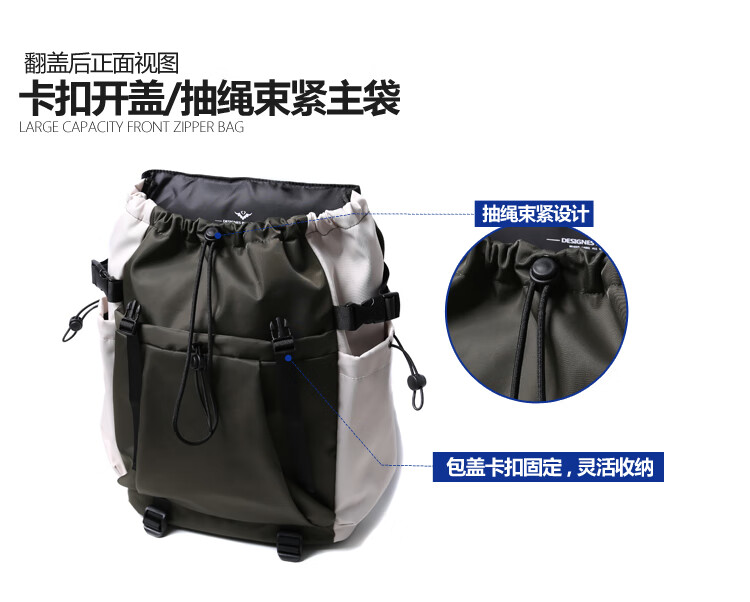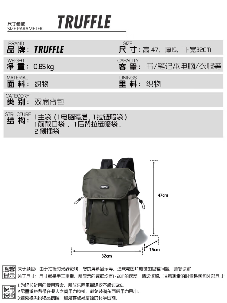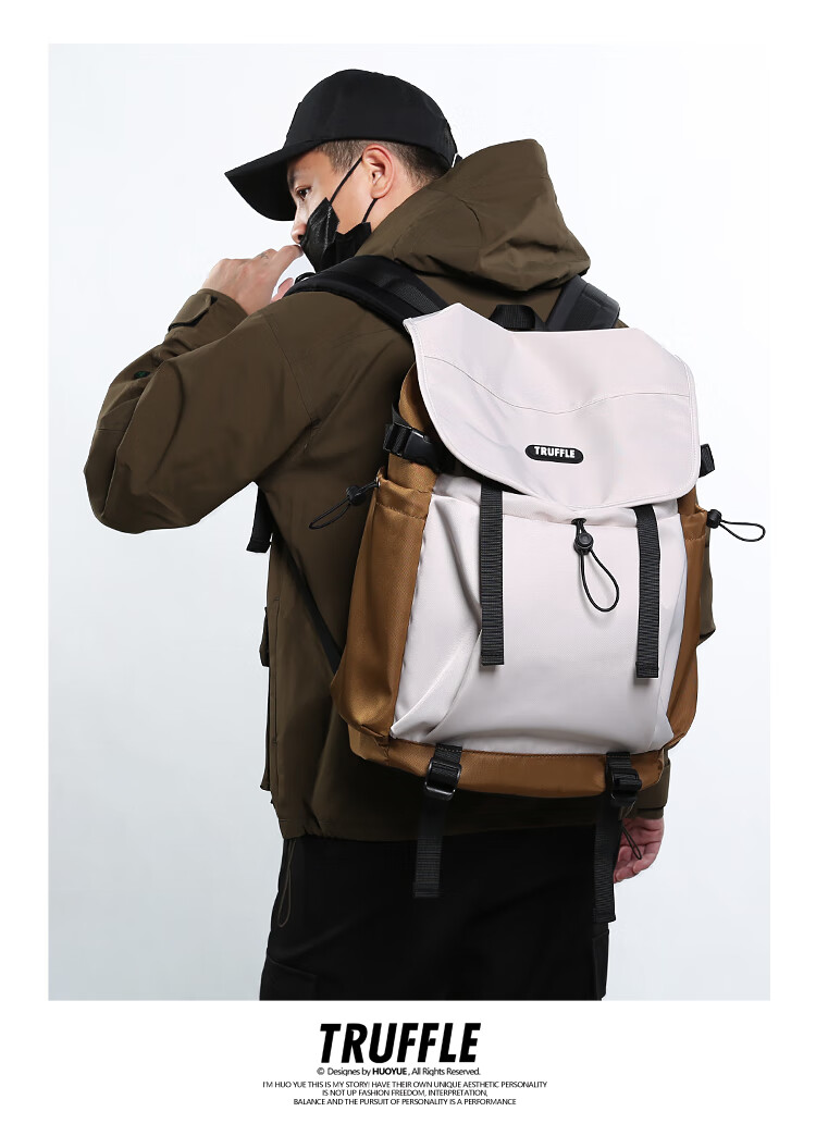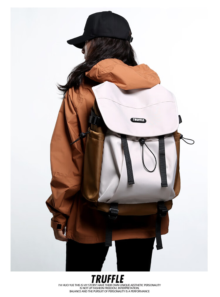 TRUFFLE casual travel backpack men's junior high school bag large capacity college student female backpack light outdoor DSG-military green with beige and gray