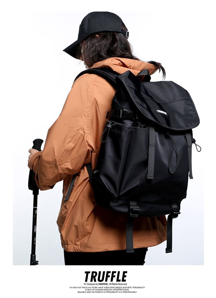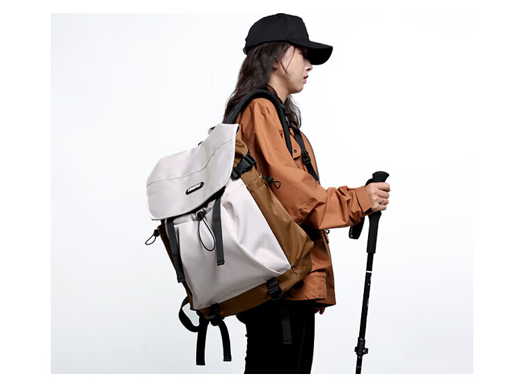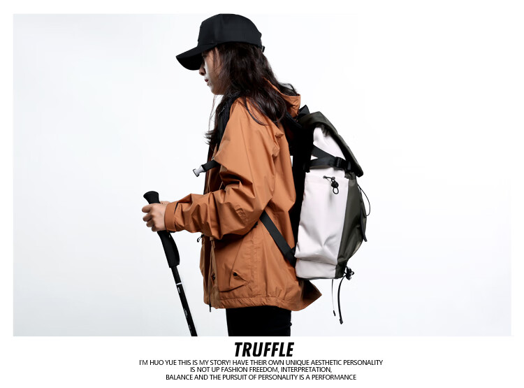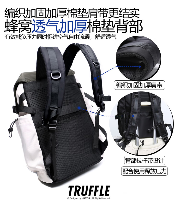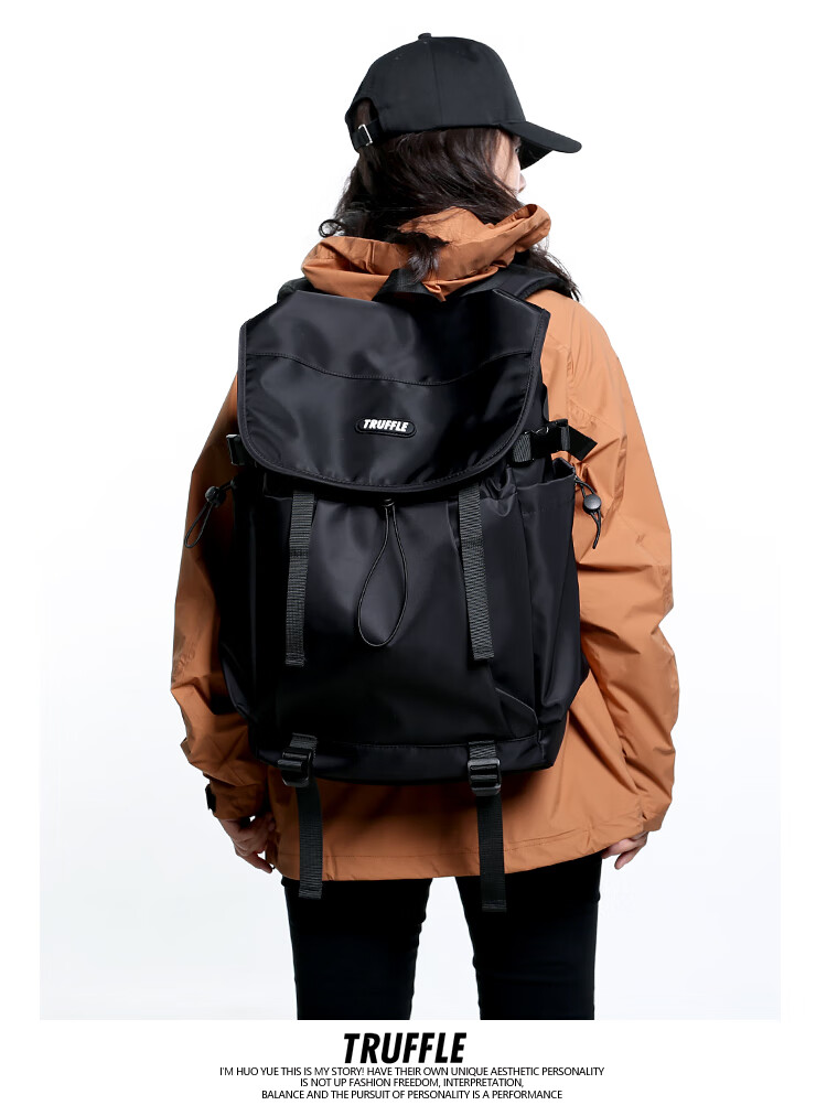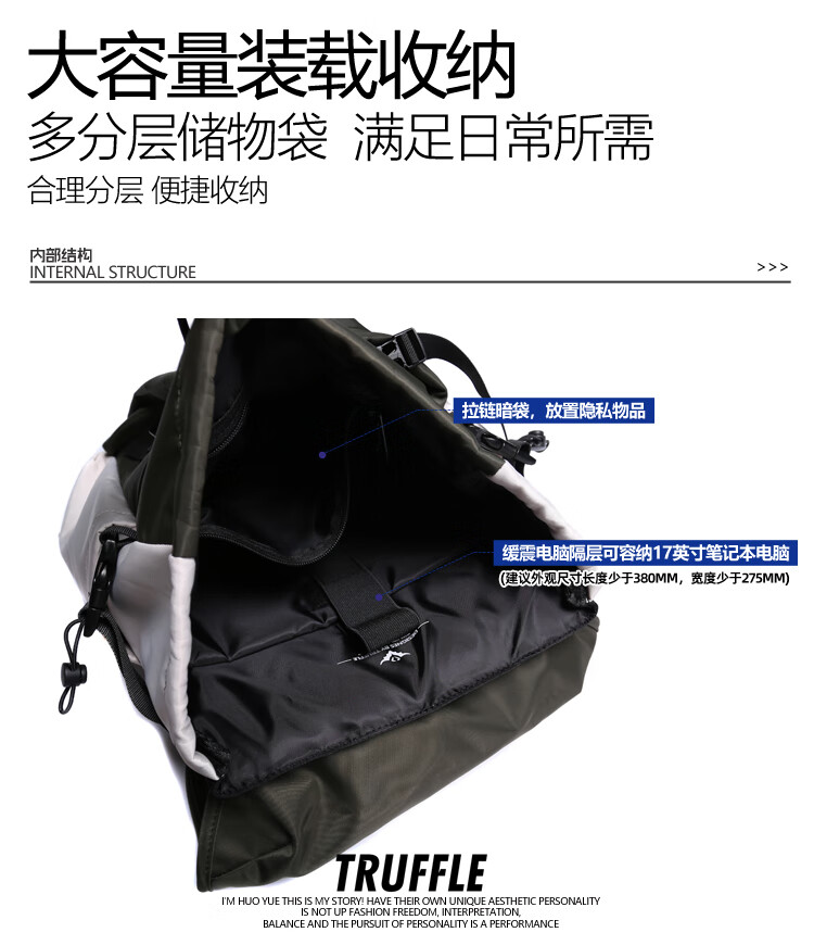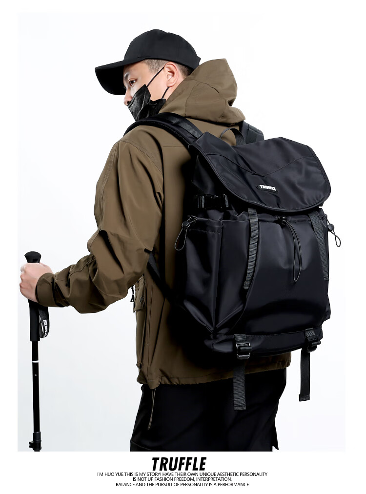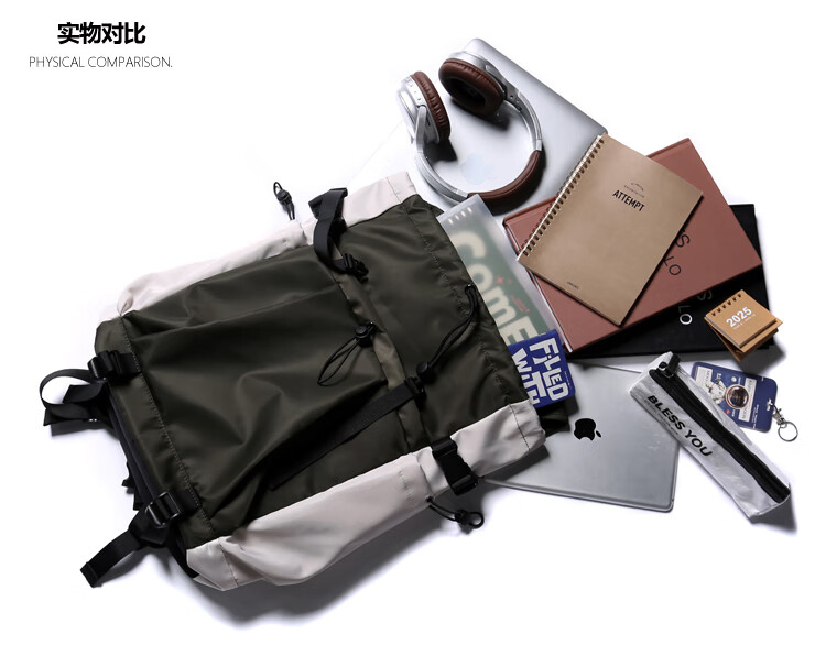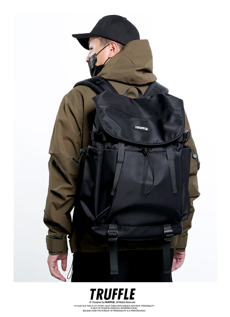 TRUFFLE casual travel backpack men's junior high school bag large capacity college student female backpack light outdoor DSG-military green with beige and gray