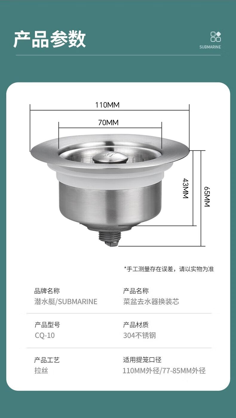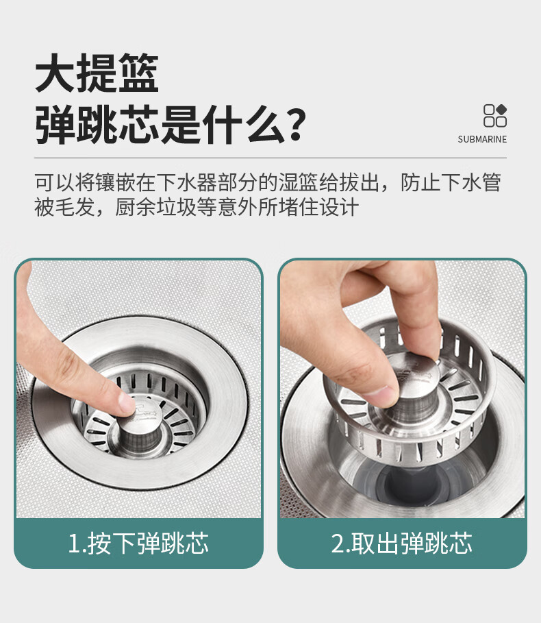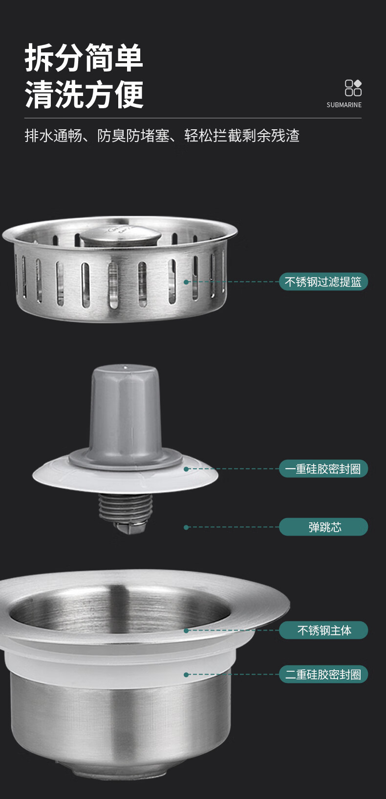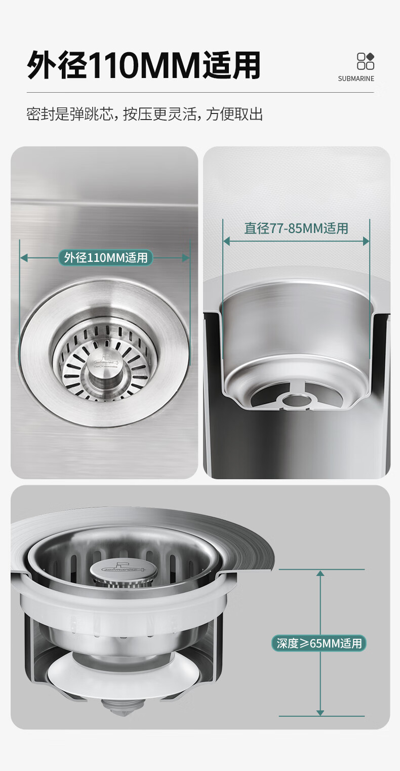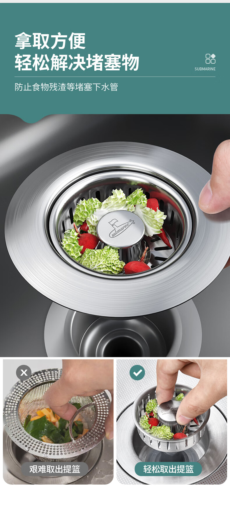 天启世纪厨房水槽过滤网弹跳芯洗菜盆下水道防堵神器 14110侧排提篮(下口径56mm)