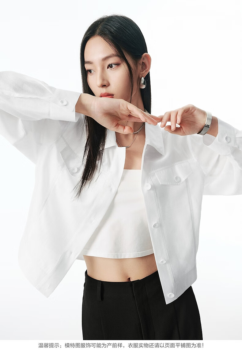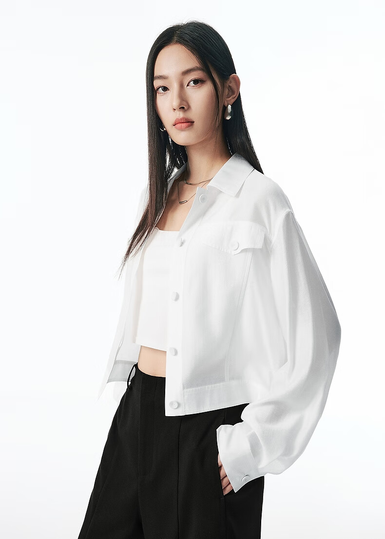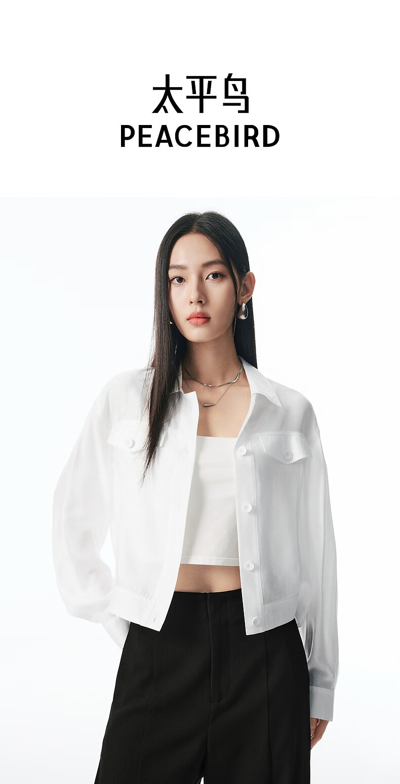 Peacebird Clear Acetate Blended Shirt Jacke Damen 2025 Neue kurze Jacke Temperament Mode Jacke Damen* Weiß S 155