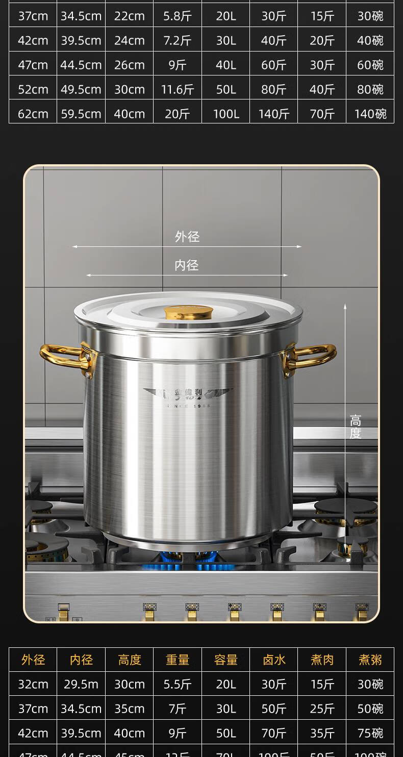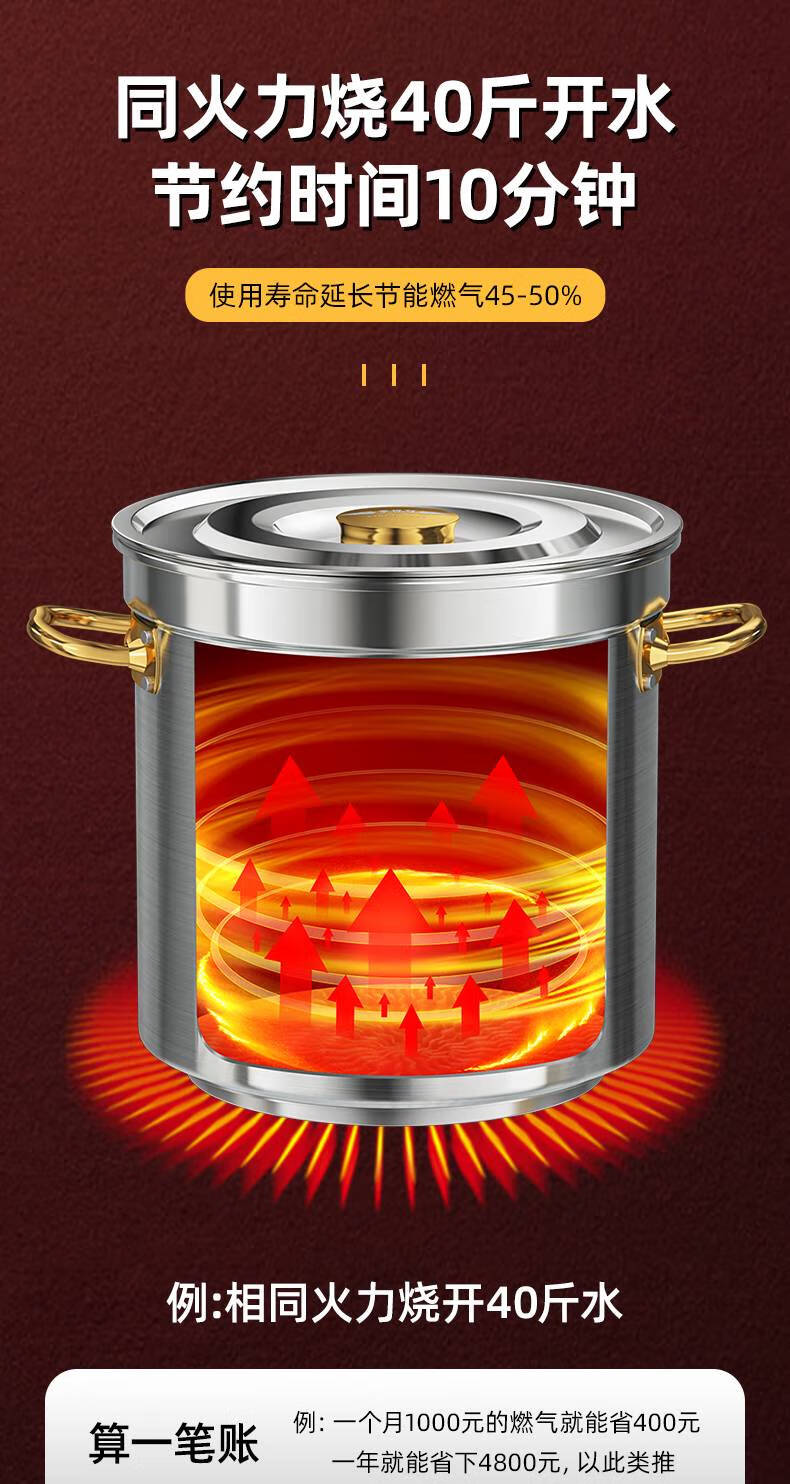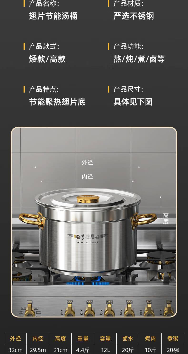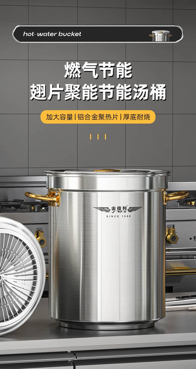CLCEY翅片节能汤桶商用燃气复合底节能大汤锅卤水锅桶聚热304不锈钢桶 节能锅3524-送防粘蒸片 0cm