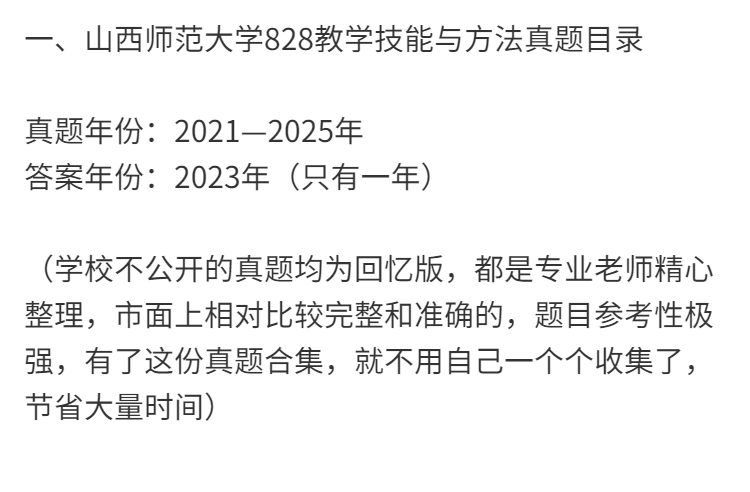 Shanxi Normal University 828 Teaching Skills and Methods Postgraduate Entrance Examination Questions 333 Comprehensive Education 2021 2025 Note: See the details page for the catalog (not available for photos) Electronic version (no express delivery)